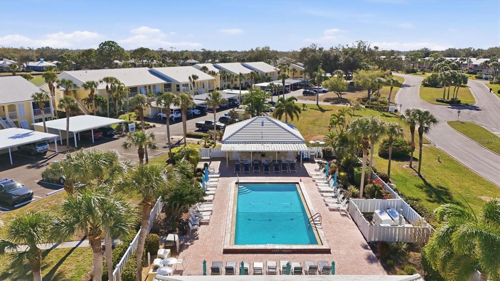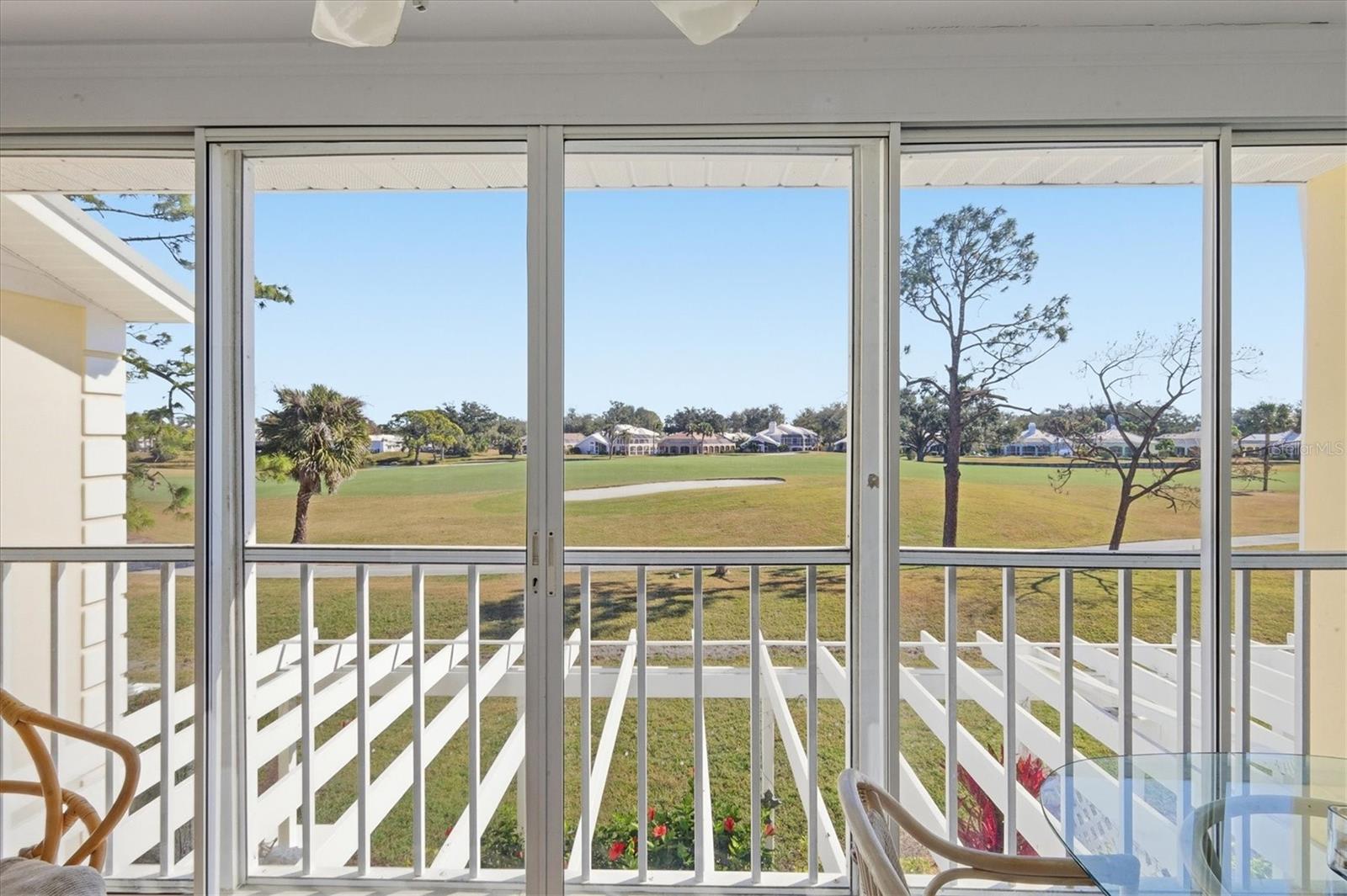 One or more photo(s) has been virtually staged. Beautifully situated in the heart of Venice’s sought-after Plantation Golf & Country Club, this second-story 2-bedroom, 2-bath residence offers 1,100 square feet of comfortable, low-maintenance living paired with serene golf course views. Step out onto the spacious screened lanai overlooking the lush fairways—an ideal spot to enjoy morning coffee or unwind in the evening while taking in the peaceful surroundings. Inside, the home features a thoughtfully updated kitchen with solid surface countertops, a new refrigerator and microwave, and updates completed approximately six years ago. Both bathrooms have also been updated, creating a clean, modern feel throughout. Additional peace of mind comes with a new roof (2025) and the convenience of a dedicated carport. Residents enjoy access to a community pool along with optional memberships to have access to Plantation’s impressive resort-style amenities, including two 18-hole championship golf courses, 13 tennis courts, 6 pickleball courts, bocce ball, a fitness center, and a junior Olympic-sized pool. Multiple on-site dining options, including a popular grill room, and a full calendar of social events coordinated by an activities director create an active, engaging lifestyle. Ideally located less than 3 miles from Wellen Park, under 5 miles from Cool Today Park, and just 15 minutes from the sugar-sand beaches of Manasota Beach. This condo offers exceptional value with no CDD fees. Whether you’re searching for a full-time residence, seasonal escape, or investment opportunity, this golf course-view condo delivers the best of Florida living.