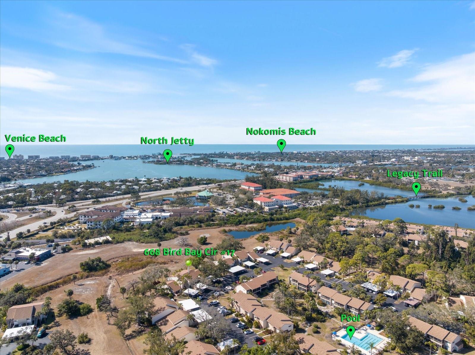 Welcome to this meticulously maintained 2-bedroom, 2-bath condominium, thoughtfully designed for comfort and everyday ease. A winding, Florida-friendly landscaped path leads from the carport to the residence, creating a warm and inviting arrival experience. Inside, vaulted ceilings allow natural light to cascade through the living space, creating an open and inviting atmosphere. The interior has been modernized, featuring a knockdown ceiling finish, all-new baseboard trim, updated outlets and switches, and solid-core interior doors with upgraded hardware throughout. The exquisitely remodeled kitchen is a true focal point, offering clear sightlines into the main living area and maximizing usable space with stainless steel appliances, granite countertops, 42” cabinetry with under-cabinet lighting, and a layout that balances style and everyday functionality. Both bathrooms have been tastefully updated, and the home includes an enclosed lanai for flexible year-round use. An office nook provides a convenient work or hobby space, while the private storage shed with workbench and washer/dryer adds valuable utility. This well-kept condo delivers a balanced combination of updates, natural light, and practical features—ready to support a relaxed Florida lifestyle. Near the Bird Bay Phase I pool, this home offers easy access to the community’s sought-after amenities. Bird Bay Village is known for its lush landscaping and resort-style setting, with amenities that include a junior Olympic-size pool, tennis and pickleball courts, bocce ball, a fully equipped fitness center, a scenic boardwalk along Roberts Bay, and a clubhouse with a full kitchen designed for gatherings and activities. The location offers exceptional convenience, just minutes from Venice Beach, Historic Downtown Venice, and the scenic trails of the Legacy Trail. Whether you’re considering a seasonal residence or a long-term home, this beautifully updated condo delivers a balance of comfort, accessibility, and community—capturing the relaxed appeal of Florida’s Gulf Coast lifestyle. Schedule your private showing today and come see why it’s a great day in Paradise.