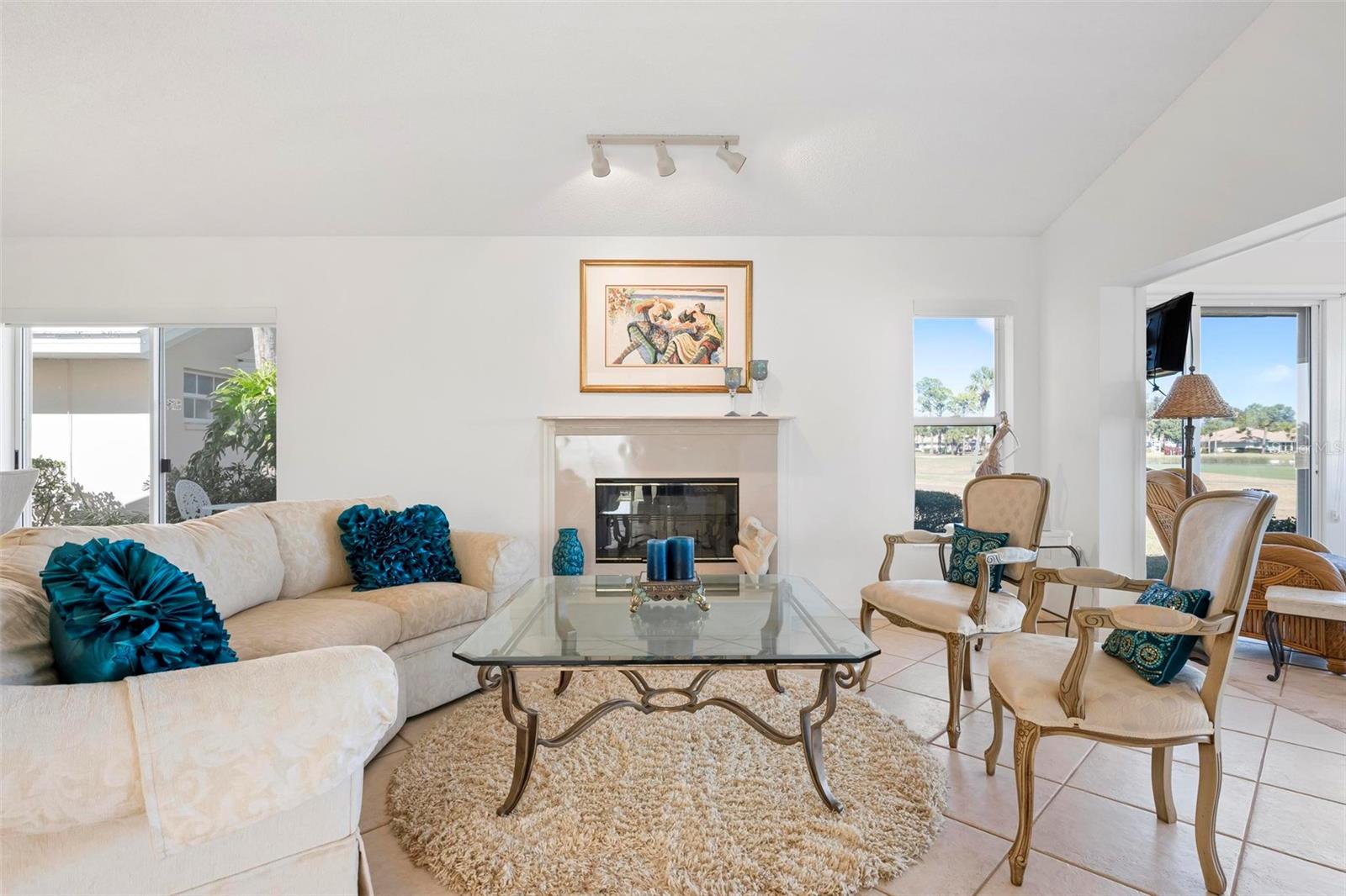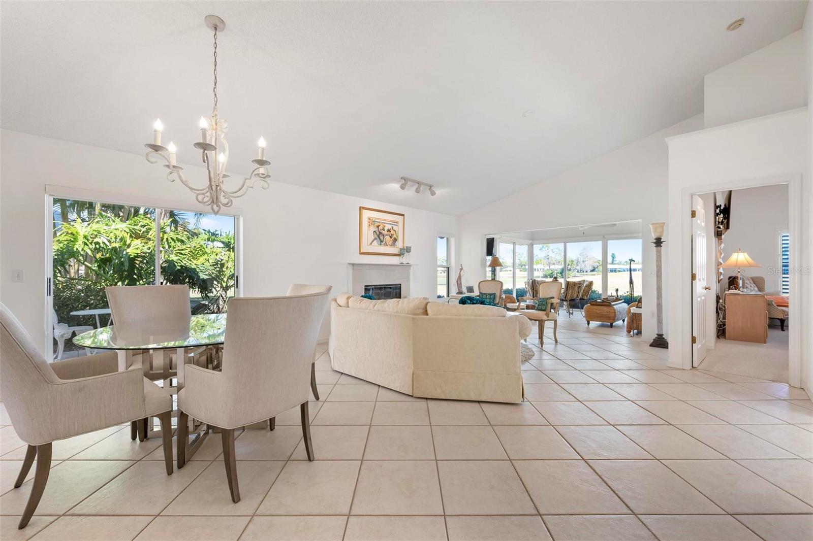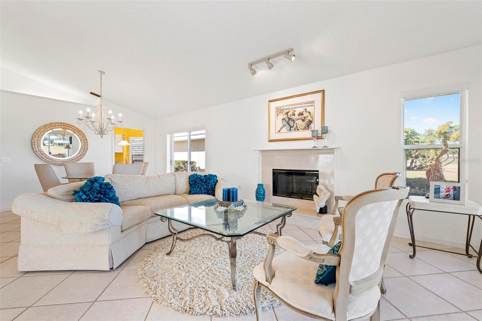 This freestanding villa offers a perfect blend of comfort, style, and serene golf course living. Featuring two bedrooms, two baths, and a dedicated study, the thoughtfully designed floor plan is enhanced by vaulted ceilings that create an open, airy feel throughout. The glass enclosed, screened lanai provides a peaceful retreat with picturesque views of the 11th hole and pond, ideal for morning coffee or evening relaxation. Also enjoy the side porch off the dining room. Meticulously maintained, the home includes a new water heater and new AC system for peace of mind. The living area has a cozy fireplace for those rare chilly days in winter. The 2 car garage boasts epoxy floors, built-in storage cabinets, and a utility sink, offering both functionality and a clean, finished look. With its pristine condition, thoughtful upgrades, and tranquil golf course setting, this villa is a rare opportunity for low-maintenance living with exceptional views. The community has its own pool and clubhouse.