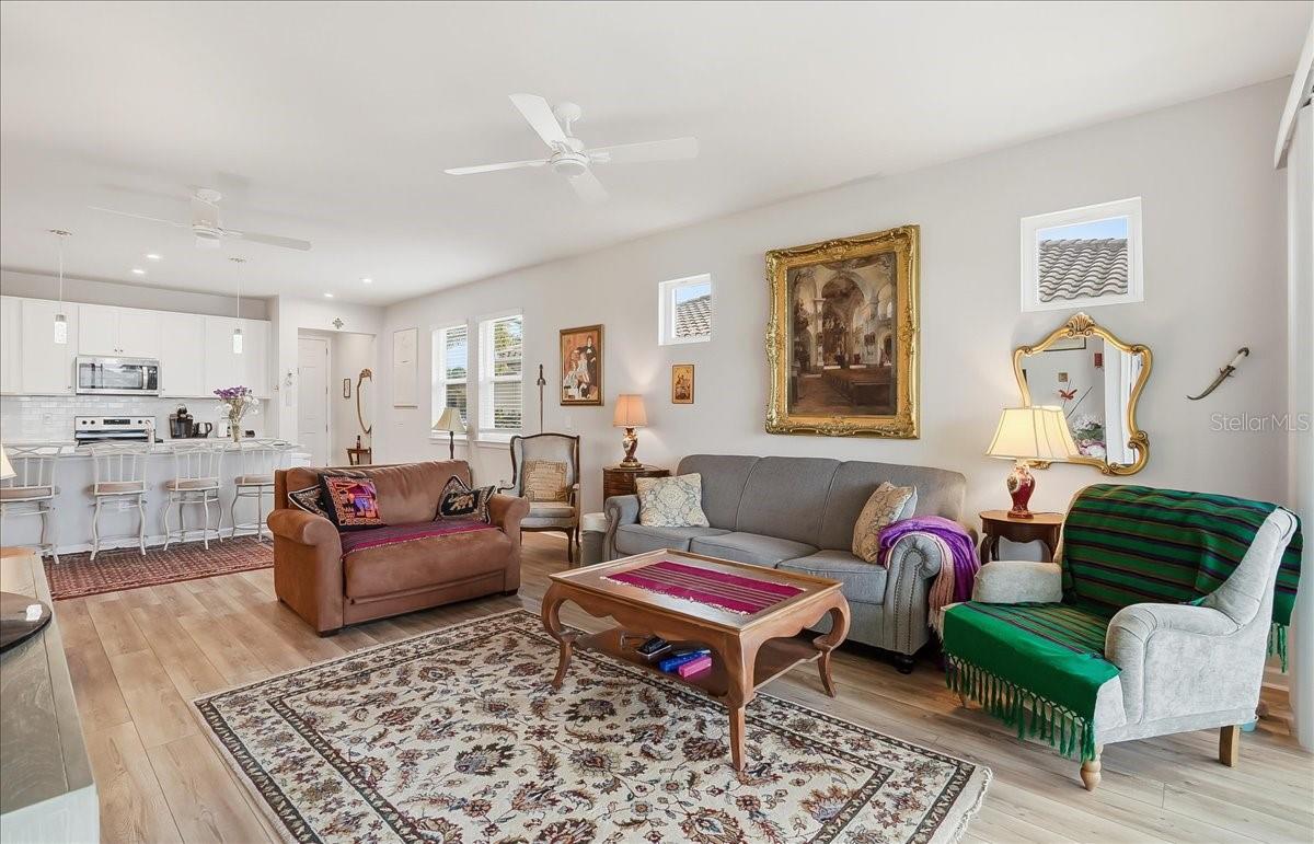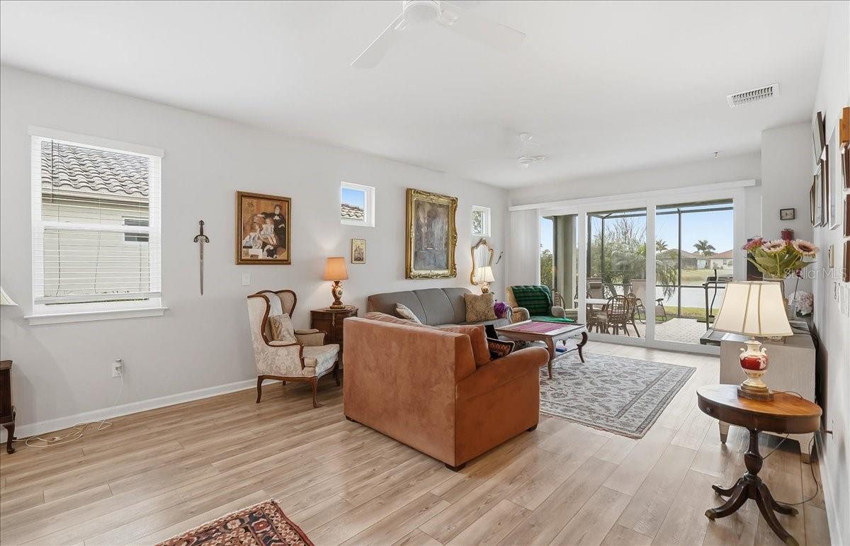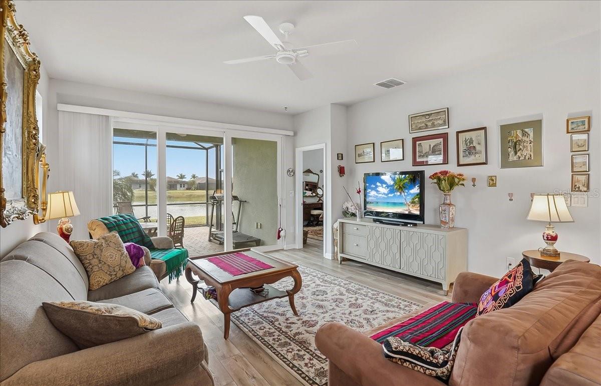 This Villa has it all! This stunning 2 bedroom, 2 bathroom Oceana model is perfectly situated on a premium water lot in the highly sought-after Renaissance at West Villages. Enjoy peace of mind with hurricane impact windows and an extended screened lanai cage, ideal for relaxing and enjoying tranquil water and fountain views. Inside, the home features luxury vinyl plank flooring, adding a modern, elegant look and easy maintenance throughout the main living areas. The open floor plan is light, bright, and perfect for entertaining or enjoying the Florida lifestyle. The 2-car garage with epoxy flooring provides a clean, finished look and extra durability—perfect for storage, hobbies, or showcasing vehicles. Renaissance at West Villages offers beautiful surroundings, resort-style amenities, and a convenient location near shopping, dining, and Gulf Coast beaches. This waterfront villa is a rare opportunity—don’t miss it!