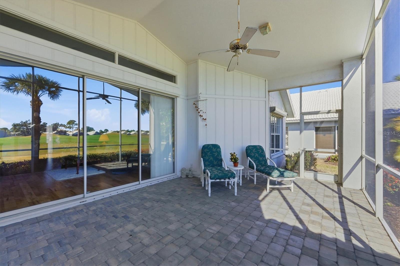 One or more photo(s) has been virtually staged. Lovely 2 bedrooms, 2 baths, 2 car garage single family villa home in Waterford. Open and light with cathedral ceilings in greatroom/living room and out to screened lanai with newer paver brick floors and screen. Home is a split bedroom floor plan with master bedroom, walk in closet, large ensuite bathroom, large vanity, corner shower, water closet all getting beautiful sunshine light from overhead skylight! Bedroom 2 is open and light with views of golf course, but still gives privacy. Bath 2 serves nicely just steps away in hallway that closes off for privacy and adjacent to laundry room. Dining room is nicely accommodating just out of kitchen area/great room. Kitchen is nicely appointed with multiple cabinets, granite counters along with breakfast room and views or landscaping and street! A 2 car garage serves this home well with added cabinetry automatic garage door opener out to concrete driveway. Located in Waterford, a highly sought after community within minutes to Historical Downtown Venice and beaches on the Gulf of Mexico and Intracoastal Waterway! Waterford is complinented with updated community clubhouse, junior olympic sized heated pool, spa, Hartru Tennis courts with viewing deck, grills and picnic area, new pickle ball court/basketball, state of the arts gym inside clubhouse with newer kitchen and meeting rooms, library and on site management. Golf is seperate, not included but reasonable There are no CDD fees here!!