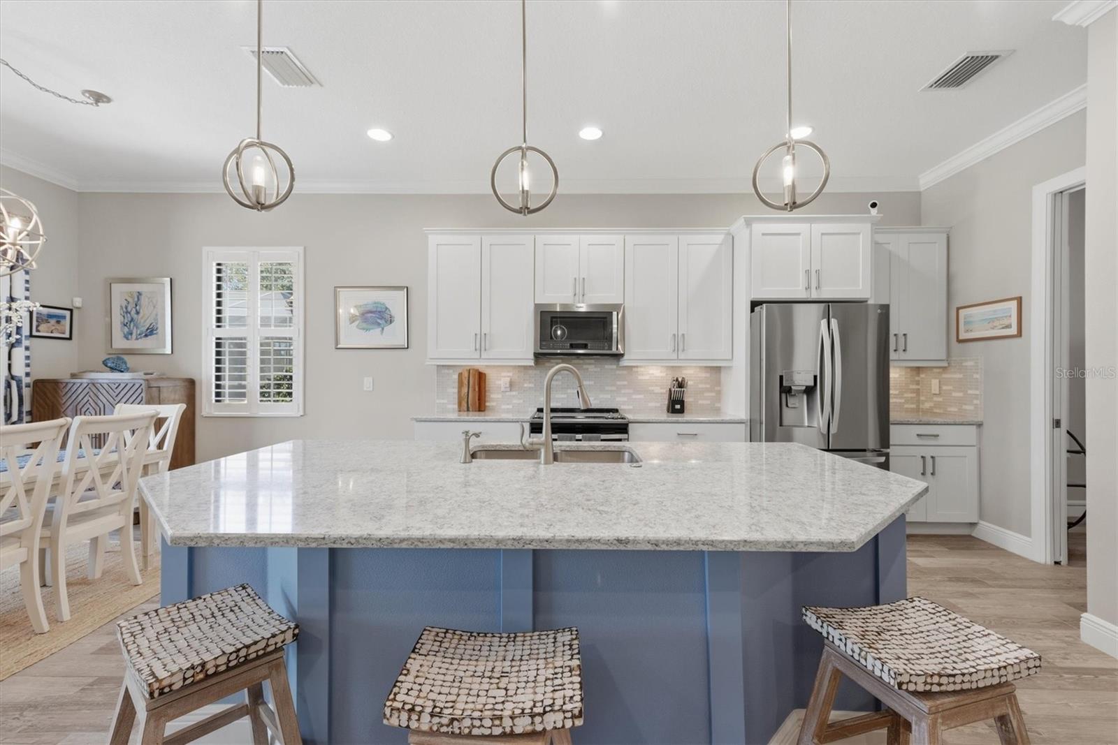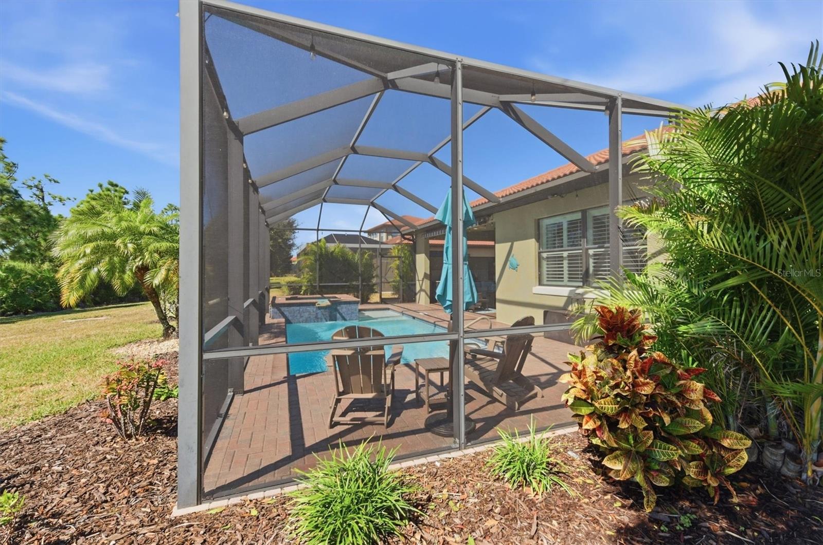 Discover the epitome of Florida living in this stunning 3-bedroom, 2-bathroom home at 10399 Medjool Drive, nestled within the prestigious Sarasota National community. Boasting the well-designed Florencia floor plan by renowned WCI builders, this residence features elegant quartz counters in the stylish kitchen and bathrooms, complemented by designer lighting and ceiling fans throughout. Enjoy planked tile flooring in the main living areas, trey ceilings in the great room, office/den, and primary bedroom, along with glass French doors in the office/den for a touch of sophistication. The home is adorned with 8-foot tall doors, crown molding, plantation shutters, and unique feature walls in the great room and each bedroom. Step outside to your private oasis, where four sliders create a seamless wall of glass overlooking a beautiful heated saltwater pool and spa. Savor the best of both worlds with serene preserve and water views, enhanced by motorized retractable awnings and a fully equipped outdoor kitchen—perfect for entertaining or relaxing in style. As a resident of Sarasota National, you’ll have access to world-class amenities, including a 30,000-square-foot clubhouse with elegant dining at the Palm Club Restaurant and poolside fare at the Tiki Bar. Stay active in the 7,000-square-foot fitness facility, unwind at the fabulous resort-style pool with dedicated lap lanes, or enjoy bocce, tennis, and pickleball courts. All this is surrounded by 1,300 acres of pristine preserves, lakes, and conservation land, with miles of sidewalks inviting you to embrace the ultimate Florida lifestyle. Don’t miss this opportunity to call it home.