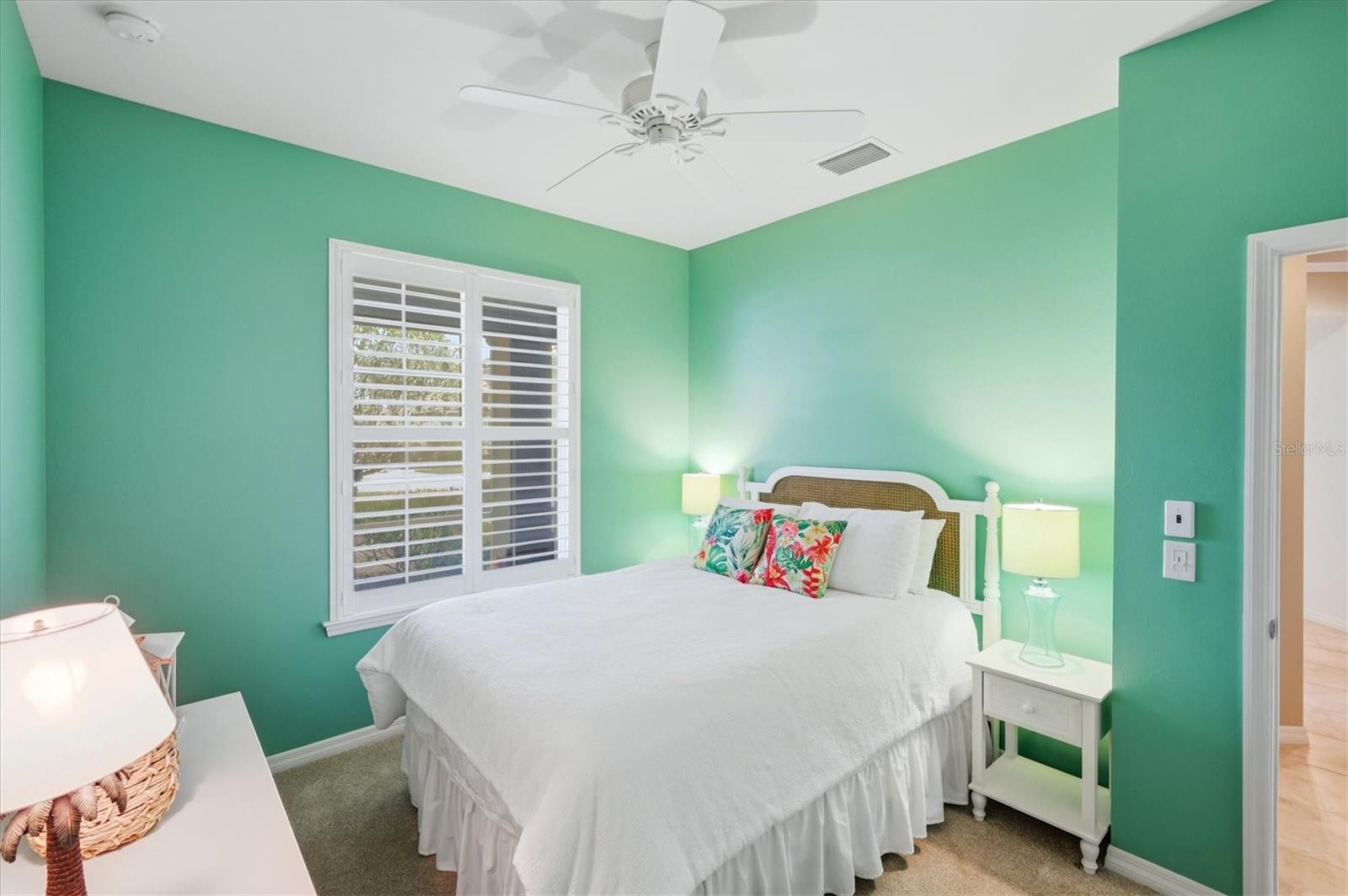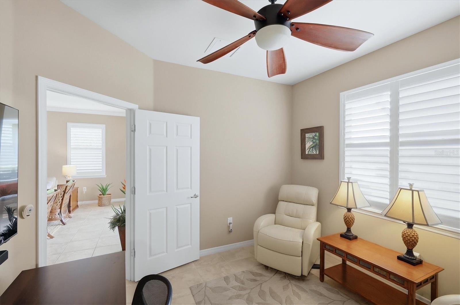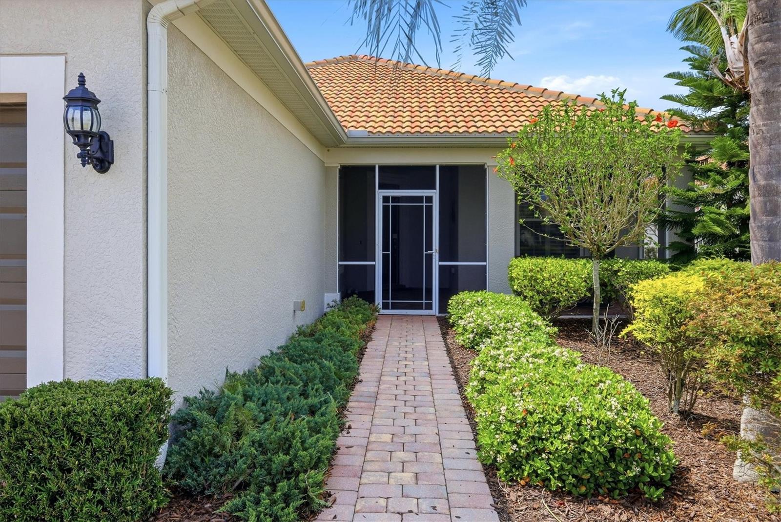 DON'T WAIT TO SEE THIS ONE! GORGEOUS LAKE VIEWS AND SPECTACULAR SUNSETS! This 2BD/2BA/DEN/2CG will not disappoint. Extremely spacious living area with crown molding accents, plantation shutters on windows, built ins for TV and shelves, and sliding doors to lanai. Windows on the South side make this a bright and cheery room. Step out onto the pavered and EXTENDED lanai. Sit, relax, and watch the beautiful SUNSETS and admire the TROPICAL LANDSCAPING. Entertain to the fullest with the huge lanai, lake views, and sunny exposure. Back inside- tile flooring throughout main areas with carpet in the 2 bedrooms. Large pass through window to kitchen. Kitchen has been updated with BEAUTIFUL QUARTZ counters and STAINLESS STEEL appliances. EXTRA RECESSED LIGHTS. Island in the center great for food prep, casual dining, and a place for friends to sit and chat. Separate nook space for breakfast or more formal affairs. SEPARATE DEN can be closed off with solid door when needed. Master bedroom with en suite bath that offers dual sinks and walk in shower with bench seat and dual head rain shower fixture. Same UNIQUE QUARTZ COUNTERS as kitchen. Walk in closet. Guest bedroom at other end of home for privacy. Guest bath updated with same QUARTZ counters and updated fixtures as master. Laundry room has folding counter space, storage cabinets, and updated washer/dryer. Need a little break from the sun? Sit on the screened in front porch. Home has been lovingly decorated with neutral paint and colorful accents. TURNKEY FURNISHING ARE NEGOTIABLE. Islandwalk is a Premier resort style community offering 2 Clubhouses with swimming pools/spa and fitness centers, 12 lighted pickleball courts,8 Har Tru tennis courts, bocce ball, Dog Park and 2 activities directors coordinating tons of activities/social events. Designed w/ the outdoors in mind- walking paths and bridges flow throughout the community amidst the tropical landscape. Located minutes to Manasota Beach, Venice Beach, shopping, and Venice Downtown with its quaint shops, restaurants, and theatres. Plus just around the corner from the Atlanta Braves stadium and spring training camp, the NEW WELLEN PARK designed community with tons of restaurants, shops, and activities, The 80 acre Grand Lake with numerous outdoor water activities and walking trails. Back gate is now open for easy access to enjoy all the activity choices outside of Islandwalk. RUN, RUN, RUN, DON'T WALK. Don't miss out- this is the new upcoming PLACE TO BE!!! Start living your Florida Lifestyle Today!!