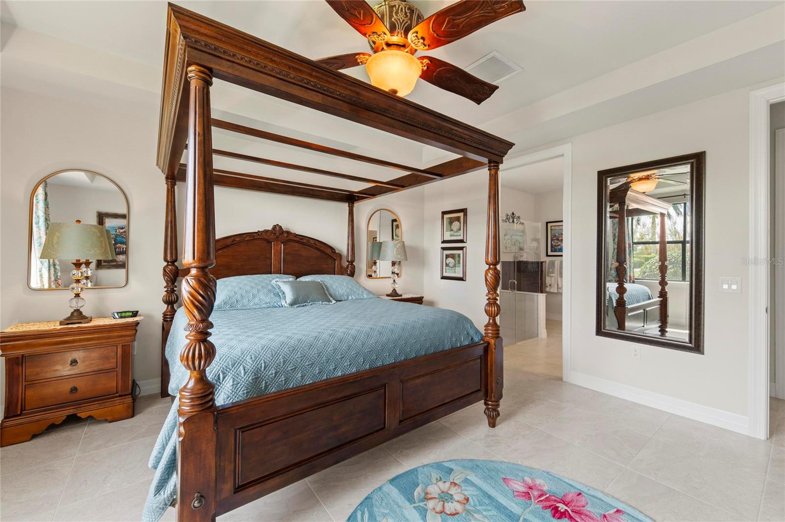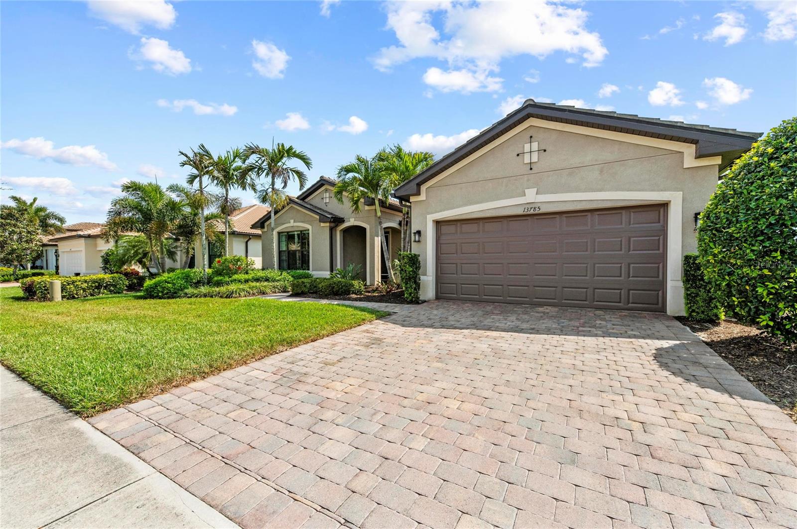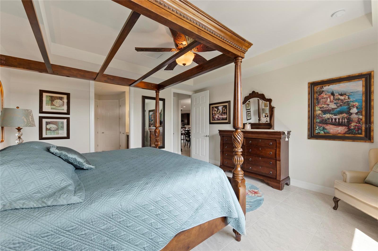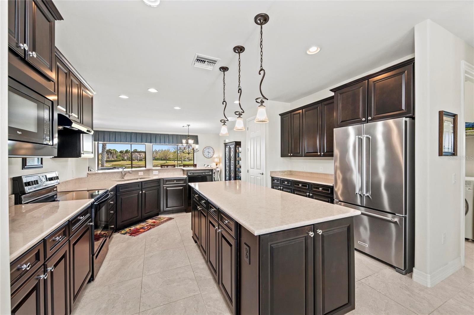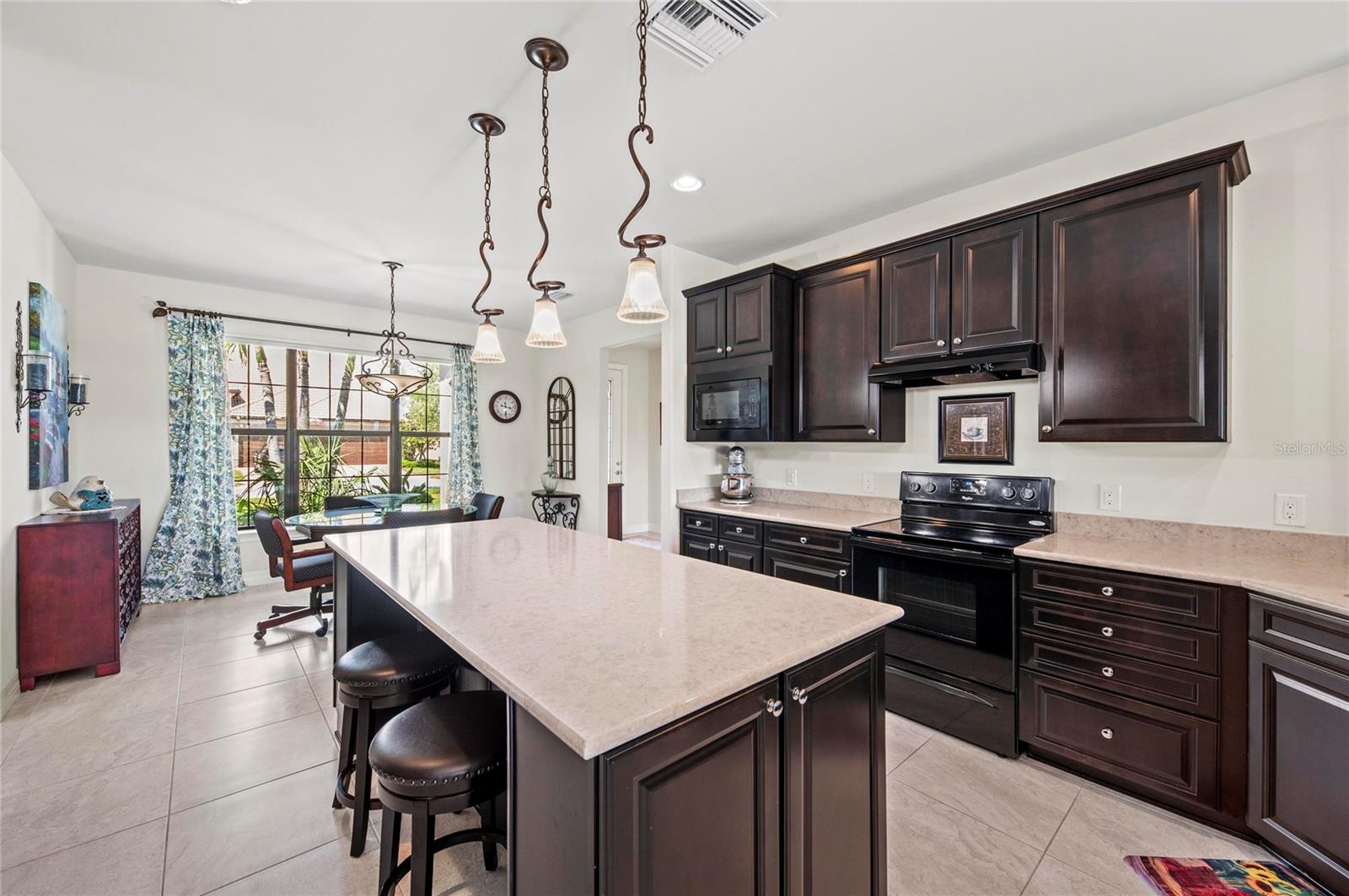 This rare Tangerly Oak model offers an exceptional opportunity to own a thoughtfully upgraded and lightly lived-in home that truly stands apart. With 2,757 square feet of living space - larger than the typical one-story Pinnacle model—this residence delivers both added space and enhanced functionality. Unlike most Pinnacle layouts, this home features four generously sized bedrooms, including a desirable second bedroom with its own private en suite bath and a large walk-in closet, perfect for guests or multi generational living. From the moment you enter, you’ll notice upscale design elements throughout, including 8-foot interior doors, higher baseboards, and tile flooring that flows seamlessly throughout the entire home. The spacious eat-in kitchen is designed for both everyday living and entertaining, offering abundant cabinetry, ample storage, and plenty of room to gather. A true highlight of the home is the one-of-a-kind wall of four sliding glass doors spanning over 15 feet, opening completely to the extended lanai for seamless indoor-outdoor living. The oversized corner lot provides exceptional privacy along with expansive, long water views, all with a sought-after southern exposure that fills the home with natural light—especially during the winter months. Step outside to your own private retreat, featuring a premium Hot Spring Prism seven-person hot tub installed in 2020. Designed for a full-body hydrotherapy experience, it includes 73 jets powered by three pumps, a deeply relaxing lounger seat, a powerful footwell jet, a freshwater salt system, multi color lighting, and a backlit waterfall for added ambiance—all offering luxury without the maintenance of a full pool. Set on an expansive 9,788 square foot executive homesite, the property also benefits from a large berm that enhances privacy and tranquility. Additional features include hurricane impact glass windows and doors throughout, including the quadruple sliders, a four-foot extended garage, and a large laundry room with plenty of space for storage and functionality. Lovingly maintained by its original owners and used only seasonally for approximately two months per year, this home has never been rented and remains in exceptional condition. Ideally located just a short walk from the impressive 14,000 square foot Resort Center, 11,000 square foot Event Center, multiple pools, and an array of world-class amenities, this home offers the perfect blend of luxury, comfort, and convenience.