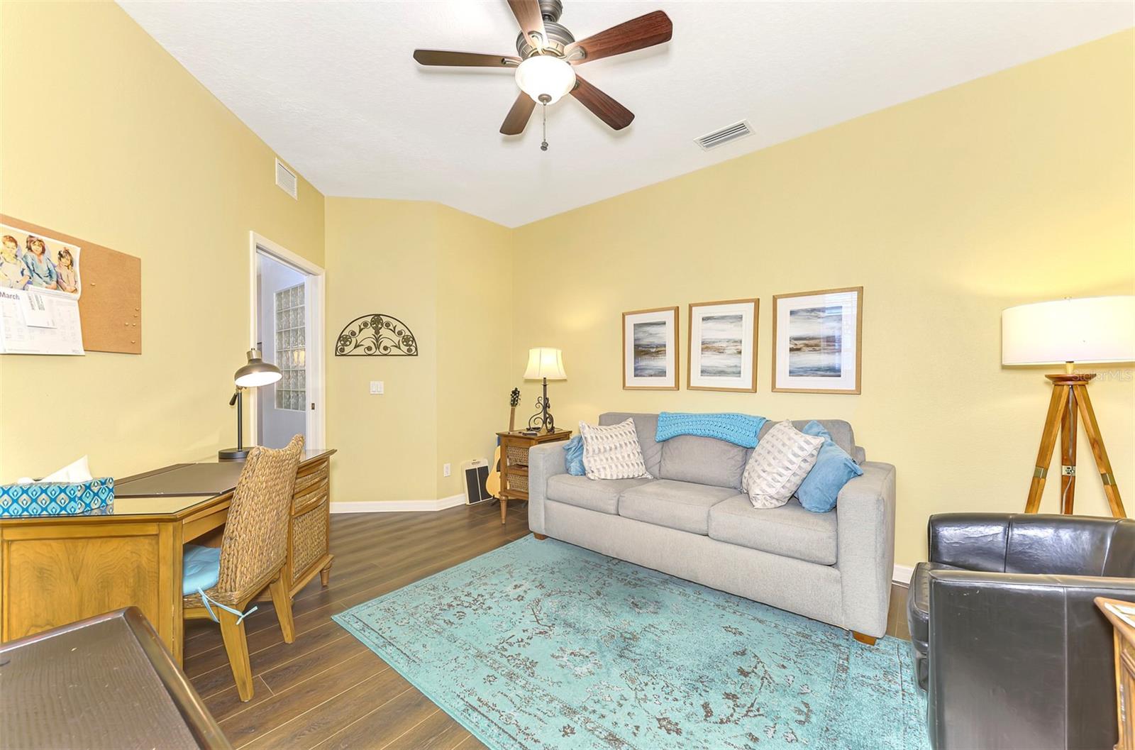 Nestled within the desirable Stratford on the Green enclave of Plantation in Venice, this impeccably maintained 2-bedroom, 2-bath villa with a versatile den offers a move-in-ready lifestyle that’s becoming harder to find. Thoughtfully updated and meticulously cared for, the home features a beautifully renovated kitchen and baths, along with updated flooring throughout creating a clean, modern feel that is both stylish and functional. What truly sets this villa apart is the ease of living. Outfitted with Storm Smart hurricane shutters that lock in the center and a Storm Smart roll-down screen on the lanai, storm preparation becomes simple—just lock and go. A brand-new roof (2024) and regularly maintained HVAC add another layer of confidence, showing this home has been proactively maintained in all the right ways. Step outside and enjoy your own private retreat. The oversized lanai with clear-view screening offers a peaceful space to relax or entertain, while the screened front porch invites in the coastal breeze. The community pool is just a short stroll away, making it easy to enjoy resort-style living without the upkeep. This villa is part of a condo-style association designed for true low-maintenance living. Fees include insurance on the structure (from drywall out), wind coverage, roof reserves, exterior painting, lawn care, pest control, termite prevention, pool maintenance, and full community management—along with water, trash, and cable/internet services. Simply put, everything is handled for you. Located within the sought-after Plantation community, residents have the option to join the Plantation Golf & Country Club while enjoying close proximity to Wellen Park, CoolToday Park (home of the Atlanta Braves Spring Training), and the stunning Gulf Coast beaches. If you’ve been searching for a home that combines thoughtful updates, smart storm protection, and truly maintenance-free living—this is Coastal Living, reimagined.