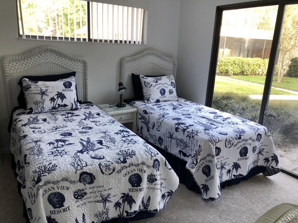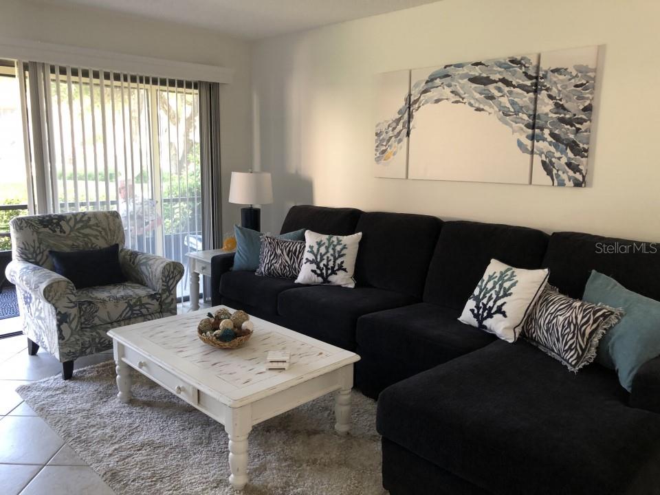 Best location in Bird Bay Village Phase I featuring highly demanded 1st floor, 2 bedrooms, 2 full bathrooms, fully furnished. Separate bathrooms for each bedroom and 2 closets in master bedroom. Second bedroom can be converted to twin beds with all bedding provided. Mere steps to pool, end unit providing plenty of sunlight, inside washer/dryer. Newly decorated, new carpet, new closet organizers in all 3 closets, new water heater, new electrical panel & new ceiling in kitchen. New window treatments in all rooms & shades on lanai. Enjoy community tennis courts, pickleball courts, basketball courts, exercise room, & activities center. Bike trail adjacent to property. Less than 5 minutes to beaches & downtown Venice. Don't miss this great opportunity