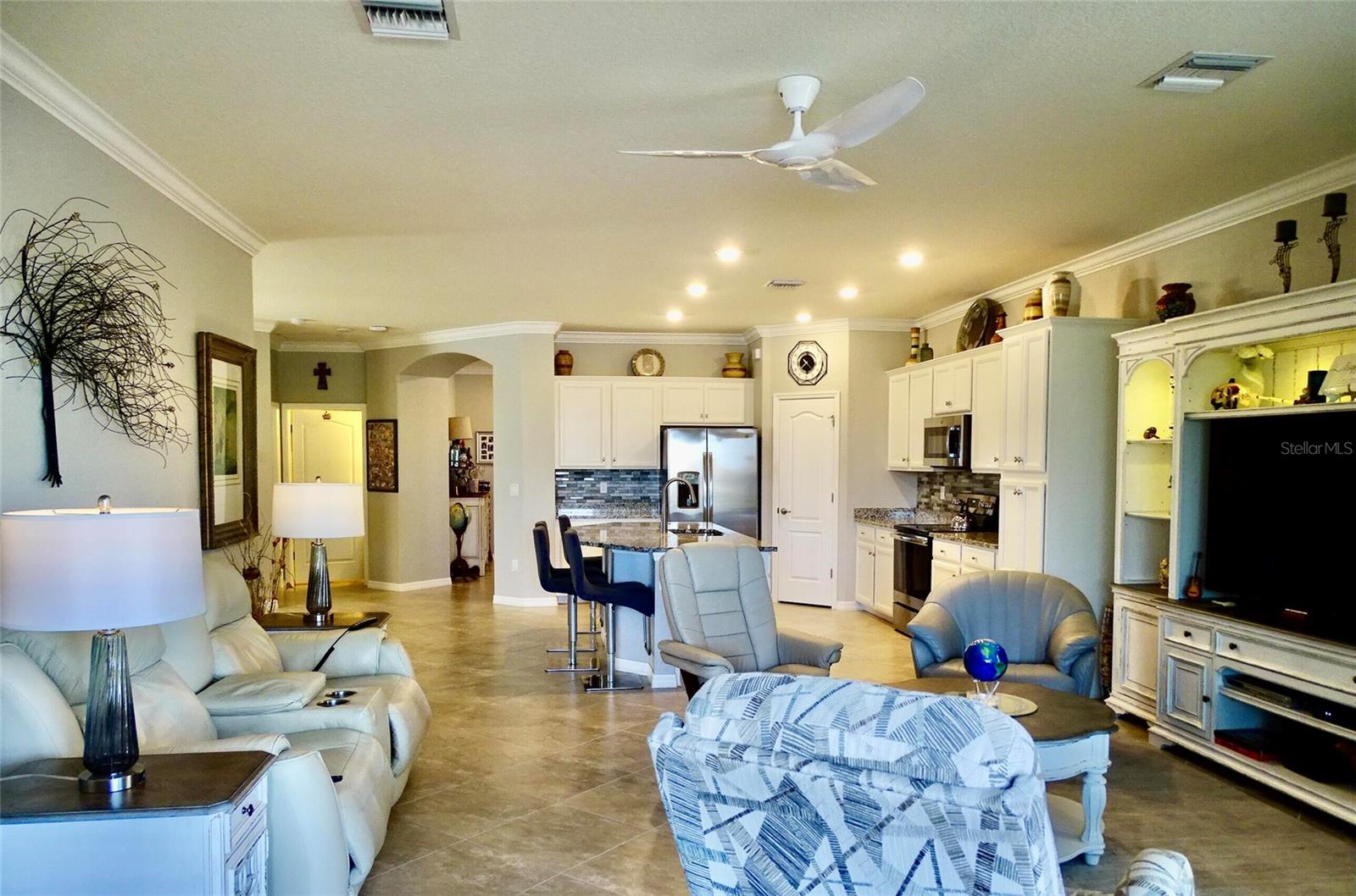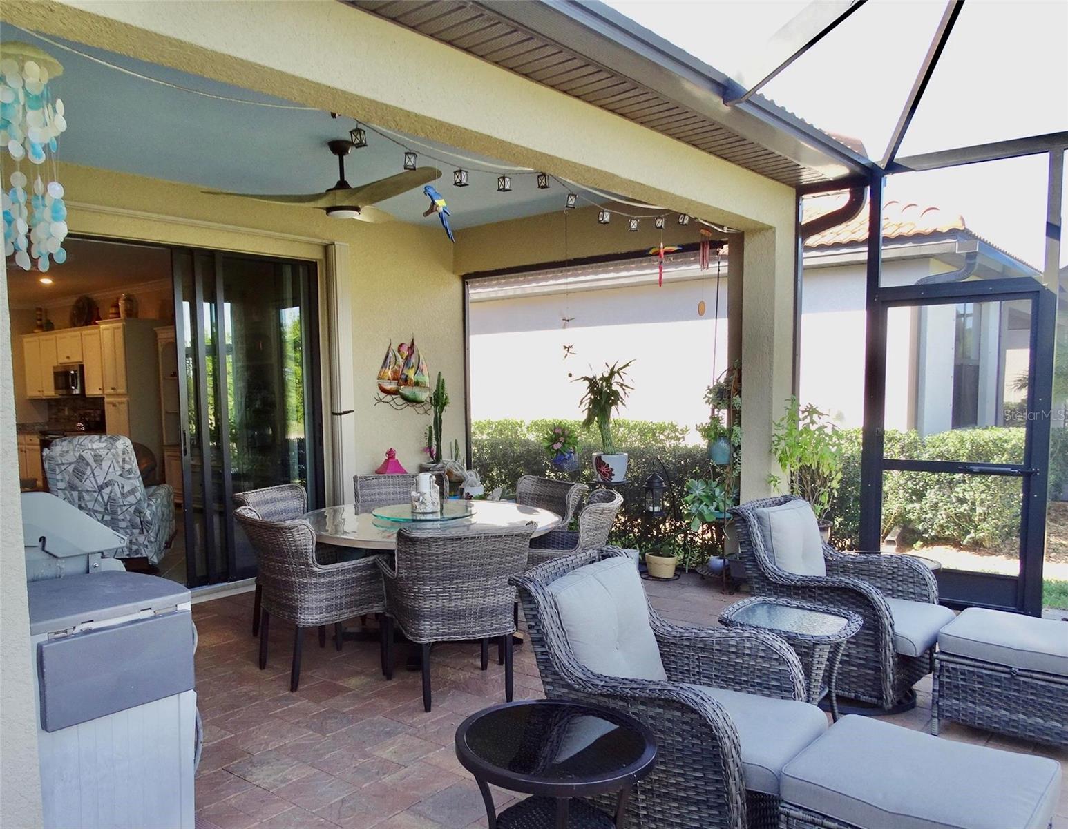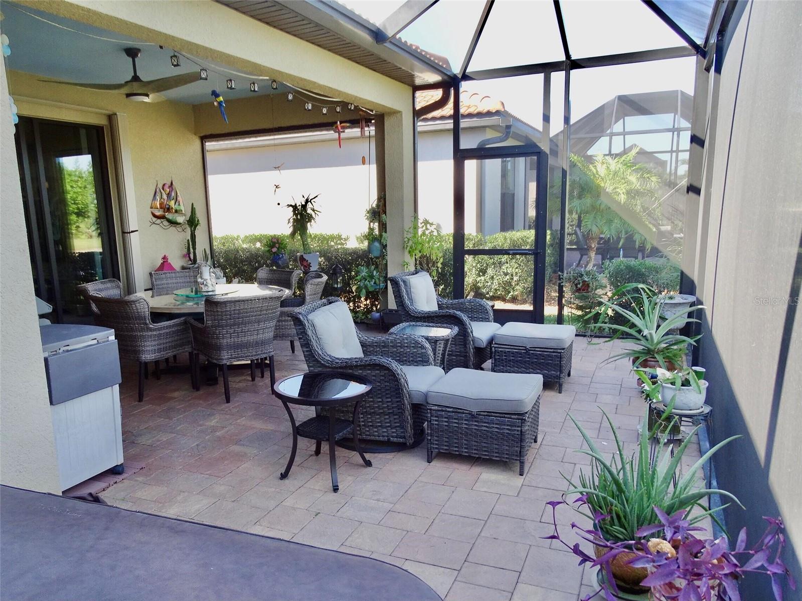 Come see this 7 year old home with a spacious open floor plan and an expansive preserve/waterfront view. This home offers 2 Bedrooms, 2 Baths, a Flexroom, and full Diningroom. The 30' extended lanai and the screened front porch add even more tranquil space to this already open floor plan. The $60k added value upgrades include Hurricane Accordion Shutters, Impact glass designer front door, a 30' Extended Lanai with new screens and premium pavers, 220v dedicated Hot Springs Spa hot tub, luxury vinyl master bedroom flooring, expanded driveway, gutters and baffles, an added kitchen pantry, beautiful glass backsplash, garage storage racks, attic stairway with attic flooring, dedicated electric outlet in garage, upgraded ceiling fans, timers, a smart home too. What you will love about this home is the location - nestled in Sarasota National, an Audubon International Certified Signature Sanctuary gated community with 1,300 acres of preserves and lakes. From this waterfront view, you will witness bird migrations, eagles, osprey, turtles, hawks, alligators, otters, sandhill cranes, bobcats, panthers and much more! If you are looking for amenities, look no further as Sarasota National offers resort style living! Exercise at the fitness center and lap pool, play pickleball, bocce or tennis, swim in the pool, relax in the hot tub and under an umbrella, participate with others in the game rooms, dine and drink at the tiki-bar, outdoor or indoor full-service dining room during themed nights and Prime-Rib night. The dog park has recently been upgraded, there’s a playground for the family, an event lawn, organized weekly themed events, music nights, trivia, bingo, and year-round fun, all ready to fill your leisure time. The coffee lounge is another place to relax and grab a book. The Hurricane accordion shutters and a beautiful hurricane impact front door will ease your mind of any worries - 15 minutes and ready! This Estate home is also maintenance grounds free - no worries about irrigation timers, hedges and trees to be trimmed, mulch to be placed in the garden, mowing, lawn treatments….you can be away a week or months without stressing about your home - a well-deserved carefree lifestyle! Basic cable is included too! The granite counter kitchen offers plenty of space offering a larger working kitchen area with the new pantry added. The light and airy open space floor plan makes it comfortable to entertain both inside and out. Very few homes are currently for sale in this lower HOA area that does not require the golf resort fees.