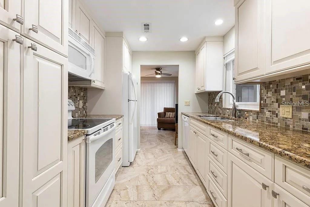 Step into this rare 4th-floor, 2-bedroom, 2-bath corner condo and be captivated by its unobstructed, direct views of the Gulf of Mexico. This pristine, renovated, and inspected residence is in a highly sought-after Gulf-front complex on the North end of Venice Island. Enjoy the private beachfront recreation area featuring a heated pool, lounge chairs, and tables with over 170’ of beachfront. Elegant Living Spaces with Stunning Views front and back at tree top level and sunlight from this end unit’s windows. Custom, fully renovated walk-through kitchen features soft-close wood cabinets, granite countertops, and a pantry for ample storage. The open Dining/ living room offers the perfect spot to enjoy spectacular Gulf views and sunsets. The bright, airy sunroom, with sliding glass doors, dual windows, and large custom storage, is ideal for a home office, den, or extra guest space. The spacious living room and owner’s bedroom boast breathtaking sunset views of the Gulf. The owner’s suite includes a walk-in closet and a fully renovated bathroom with glass doors, granite, and beautiful tile. The guest bedroom offers similar comforts, with an adjacent walk-in closet and a fully renovated tiled bathroom for convenience and privacy. Amenities and features of this condo are high-impact windows and sliders, an entirely replaced electrical system in the building, AC in 2023, a conveniently located assigned carport, bike racks, a carwash area, ample guest parking, laundry across from the unit, and exterior storage on each floor. Enjoy the convenience of being steps away from the elevator and benefiting from one of the lowest condo fees on Venice Island. Exclusive Gulf-Front Lifestyle, you'll share ownership of over an acre of Gulf-front land, complete with gated entry, a heated pool, and a private beach surrounded by tropical palm trees. Relax or entertain in the expansive outdoor living area or walk directly to the private beach to enjoy the soothing Gulf waters. An unparalleled Location: Just three blocks from the Public beach pavilion for music, yoga, and other activities. Walkable to downtown Venice, offering easy access to boutique shopping, dining, live theater, concerts, and recreational courts for tennis, pickleball, and basketball. Freedom Boat Club is also a block away, and kayak and public boat launches. Don’t miss this opportunity—schedule your showing today!
