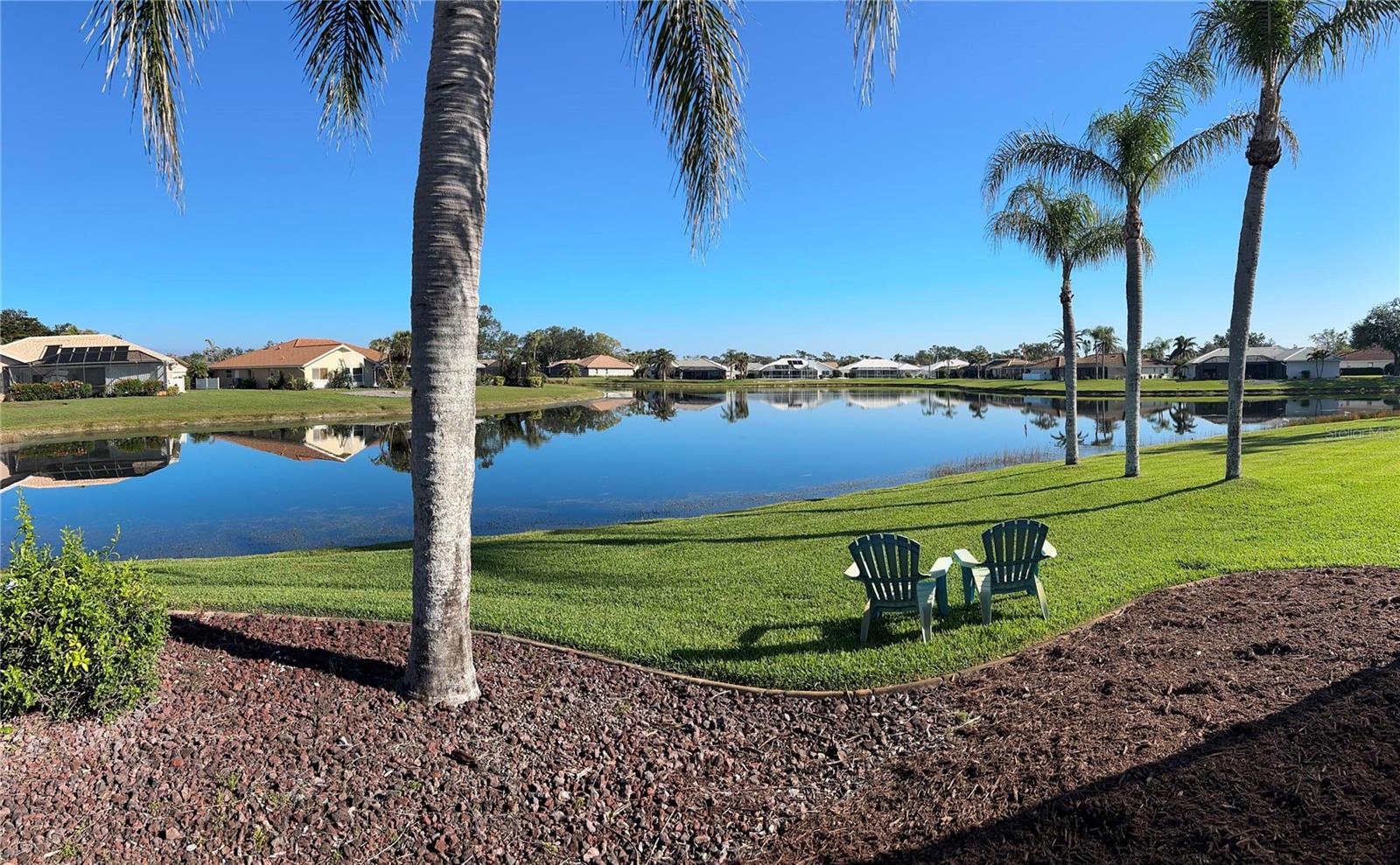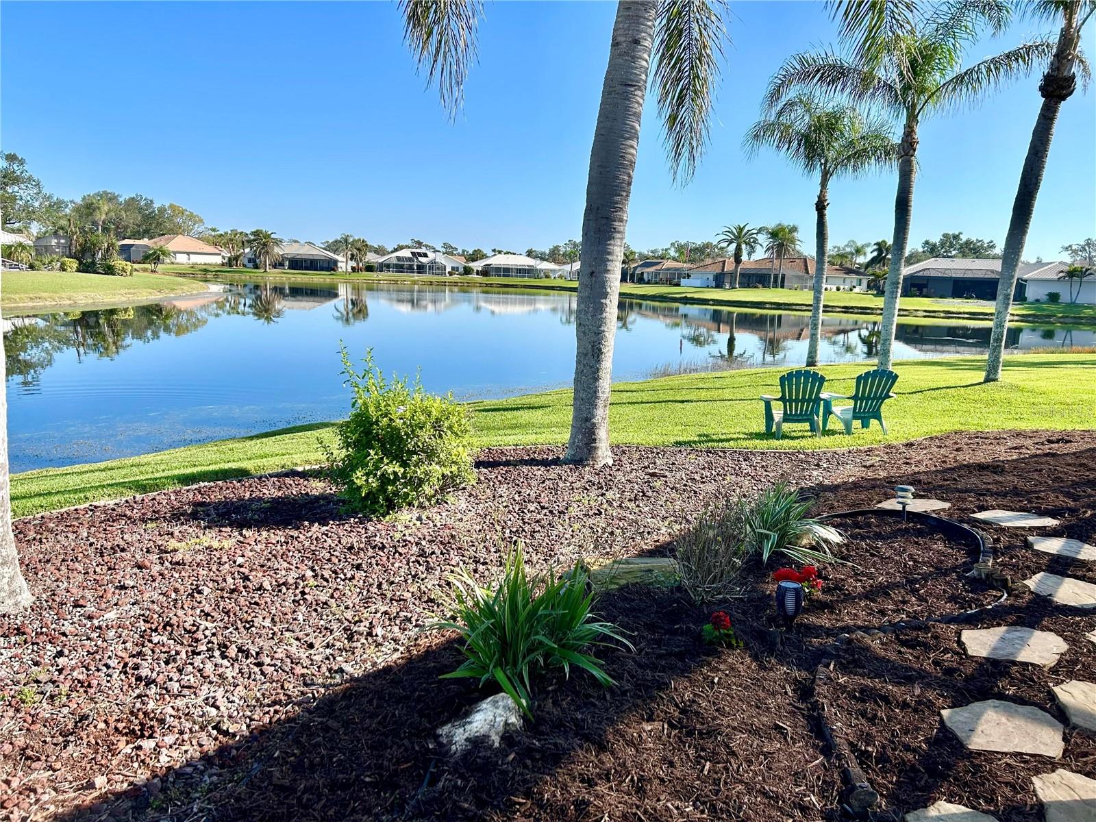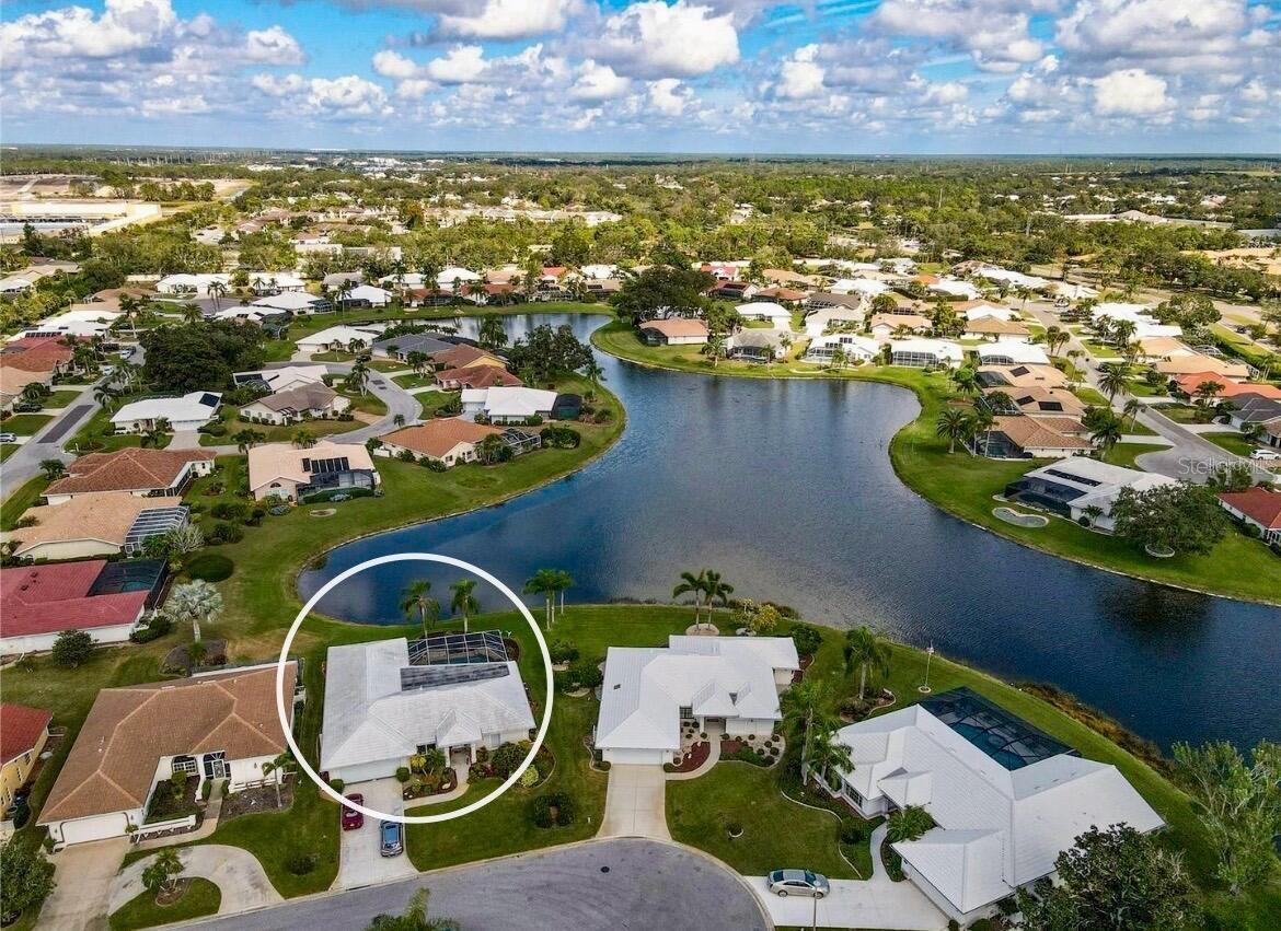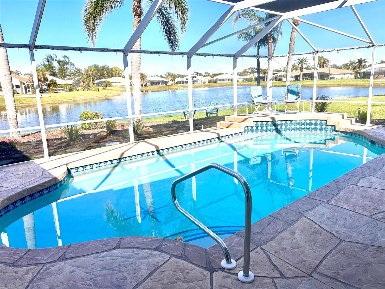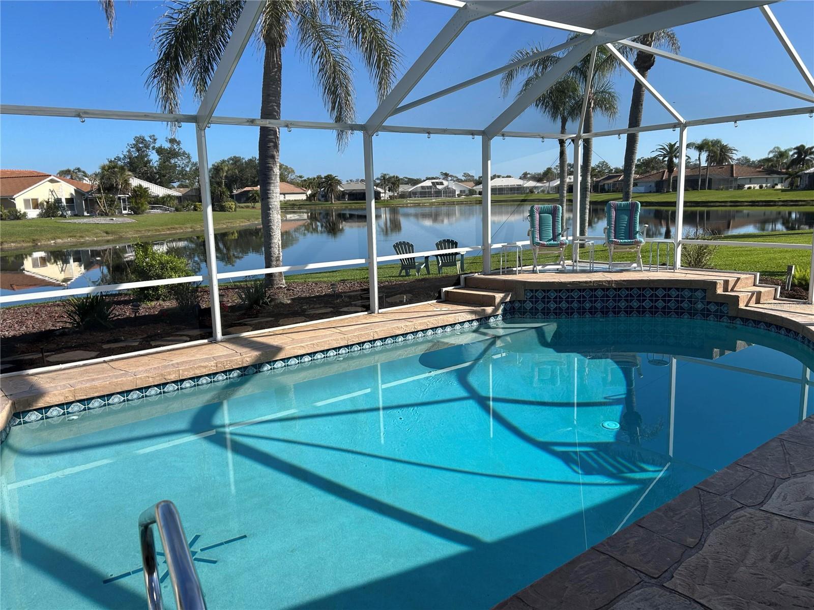 Welcome to your beautiful POOL home, situated on a quiet cul-de-sac in the highly sought-after community of Quail Lake. This meticulously well-maintained residence boasts THREE BEDROOMS, TWO BATHS, and a sparkling heated pool with an oversized lanai offering a SPECTACULAR water view of Quail Lake—one of the best in the entire community! This beautiful home is offered totally furnished (optional). This is a great home for a family, snowbird or someone who is just looking to upgrade their house. Step inside to a welcoming living and dining room, featuring a vaulted ceiling and abundant natural light. Sliding glass doors seamlessly connect this space to your pool area, framing that stunning lake view. To your right, discover the very spacious master suite with newly installed luxury carpet, a large walk-in closet, and a private sliding glass door that pockets open to your beautiful lanai and pool. The well-appointed kitchen, to the left of the living room , features quartz countertops and new Frigidaire Gallery appliances, including an armoire refrigerator and an electric stove with an air fryer feature and plug-in meat thermometer, plus a new GE 1100W microwave. Adjacent, you'll find a large laundry room with ample counter space, storage, and a utility sink. Beyond the kitchen awaits a very large family room, complete with a custom-made entertainment center and a large sectional sofa. This room also features a vaulted ceiling and a 12-foot pocketing sliding glass door, effortlessly blending indoor and outdoor living – great for entertaining! The family room, along with both spacious guest bedrooms and the second bathroom, boasts new porcelain wood plank tile floor. Both guest bedrooms with walk-in closets, with one also providing direct sliding glass door access to the pool area. The second bathroom features a walk-in shower and doubles as a convenient pool bath. Outside, enjoy nearly 350 sq. ft. of shaded lanai space – ideal for entertaining, while the pool enjoys sun all day long. This home is ready for you to move in, boasting recent upgrades such as a new lanai cage, a new roof over the lanai, and a new whole-house filter and water softener. Enjoy the peace of mind of no CDD fees and an incredibly low HOA fee, which grants access to fantastic community amenities including a pool, gym, library, rec room, and tennis/Pickleball courts. Location, location, location. You are only minutes away from Walmart, Target, Home Depot, Publix, and CVS. A short ten minute ride from the beach and beautiful downtown Venice which offers fine dining, shopping and cultural experiences. This is an exceptional opportunity to own a piece of paradise in Quail Lake!