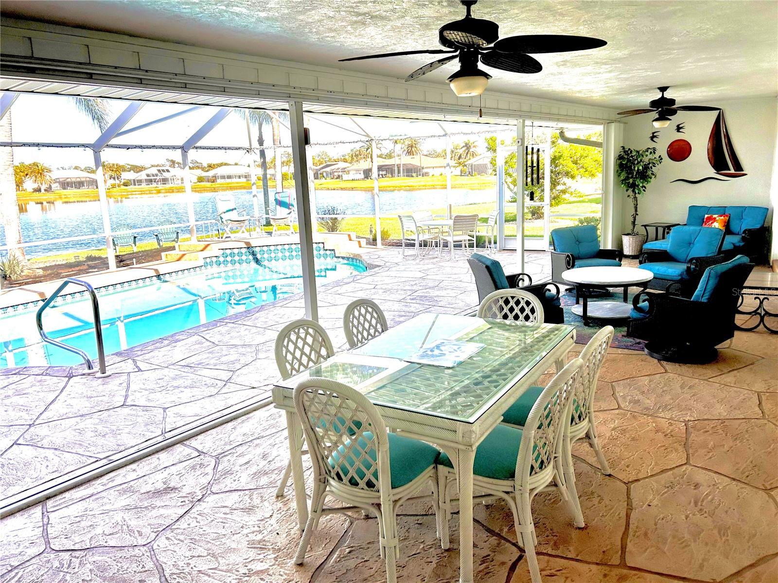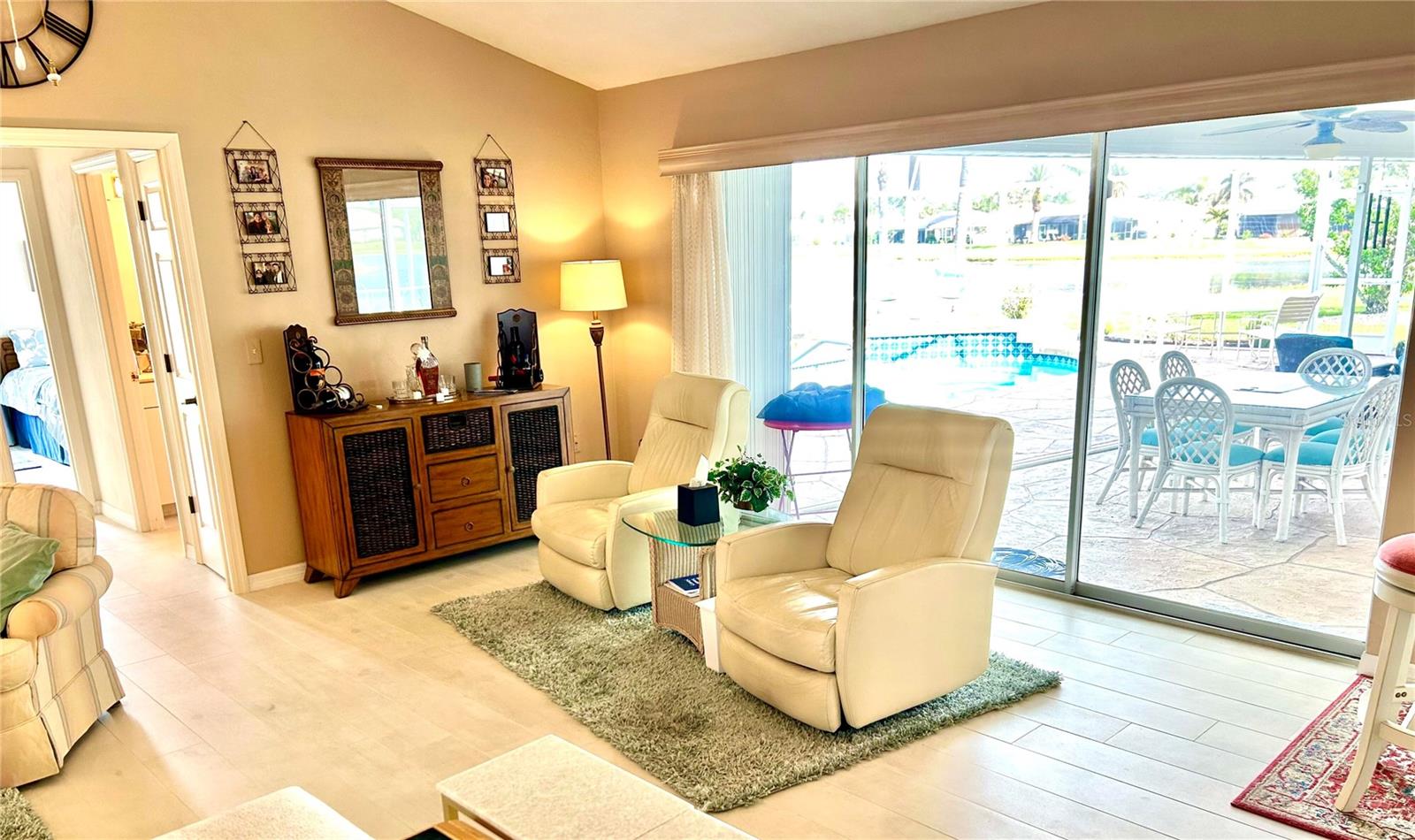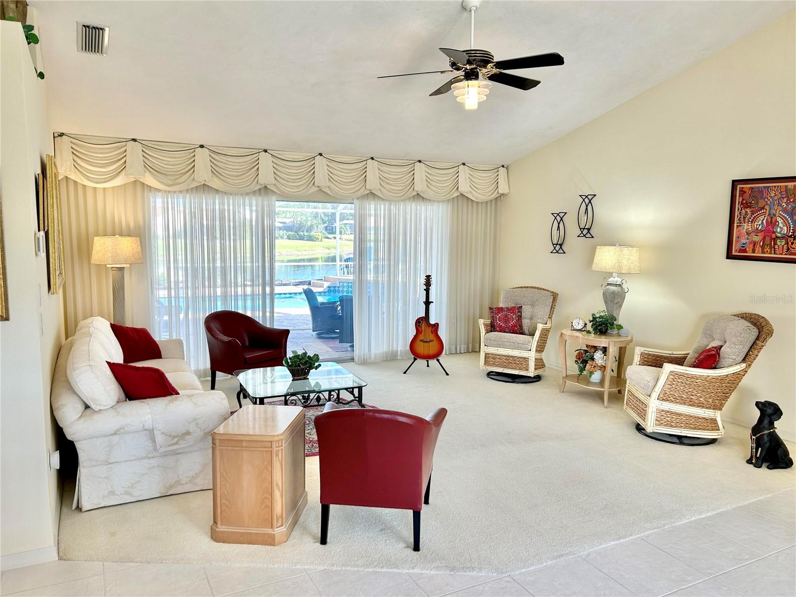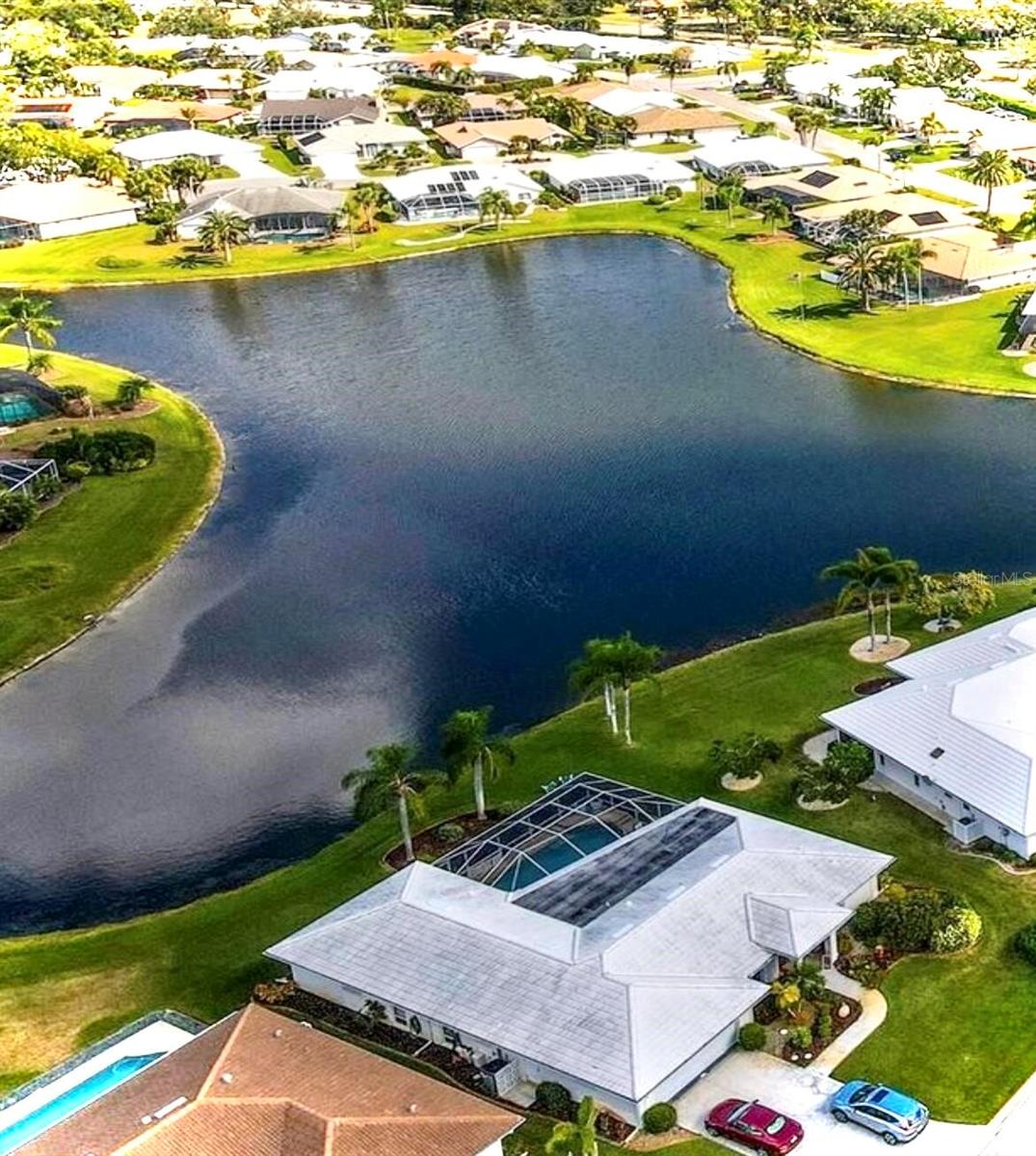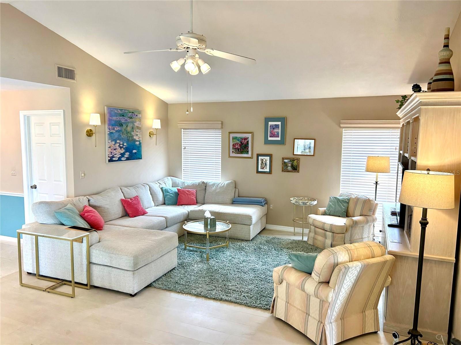 Welcome to your beautiful POOL home, situated on a quiet cul-de-sac in the highly sought-after community of Quail Lake. This meticulously well-maintained residence boasts THREE BEDROOMS, TWO BATHS, and a sparkling heated pool with an oversized lanai offering a SPECTACULAR water view of Quail Lake—one of the best in the entire community! This beautiful home is offered totally furnished (optional). This is a great home for a family, snowbird or someone who is just looking to upgrade their house. Step inside to a welcoming living and dining room, featuring a vaulted ceiling and abundant natural light. Sliding glass doors seamlessly connect this space to your pool area, framing that stunning lake view. To your right, discover the very spacious master suite with newly installed luxury carpet, a large walk-in closet, and a private sliding glass door that pockets open to your beautiful lanai and pool. The well-appointed kitchen, to the left of the living room , features quartz countertops and new Frigidaire Gallery appliances, including an armoire refrigerator and an electric stove with an air fryer feature and plug-in meat thermometer, plus a new GE 1100W microwave. Adjacent, you'll find a large laundry room with ample counter space, storage, and a utility sink. Beyond the kitchen awaits a very large family room, complete with a custom-made entertainment center and a large sectional sofa. This room also features a vaulted ceiling and a 12-foot pocketing sliding glass door, effortlessly blending indoor and outdoor living – great for entertaining! The family room, along with both spacious guest bedrooms and the second bathroom, boasts new porcelain wood plank tile floor. Both guest bedrooms with walk-in closets, with one also providing direct sliding glass door access to the pool area. The second bathroom features a walk-in shower and doubles as a convenient pool bath. Outside, enjoy nearly 350 sq. ft. of shaded lanai space – ideal for entertaining, while the pool enjoys sun all day long. This home is ready for you to move in, boasting recent upgrades such as a new lanai cage, a new roof over the lanai, and a new whole-house filter and water softener. Enjoy the peace of mind of no CDD fees and an incredibly low HOA fee, which grants access to fantastic community amenities including a pool, gym, library, rec room, and tennis/Pickleball courts. Location, location, location. You are only minutes away from Walmart, Target, Home Depot, Publix, and CVS. A short ten minute ride from the beach and beautiful downtown Venice which offers fine dining, shopping and cultural experiences. This is an exceptional opportunity to own a piece of paradise in Quail Lake!