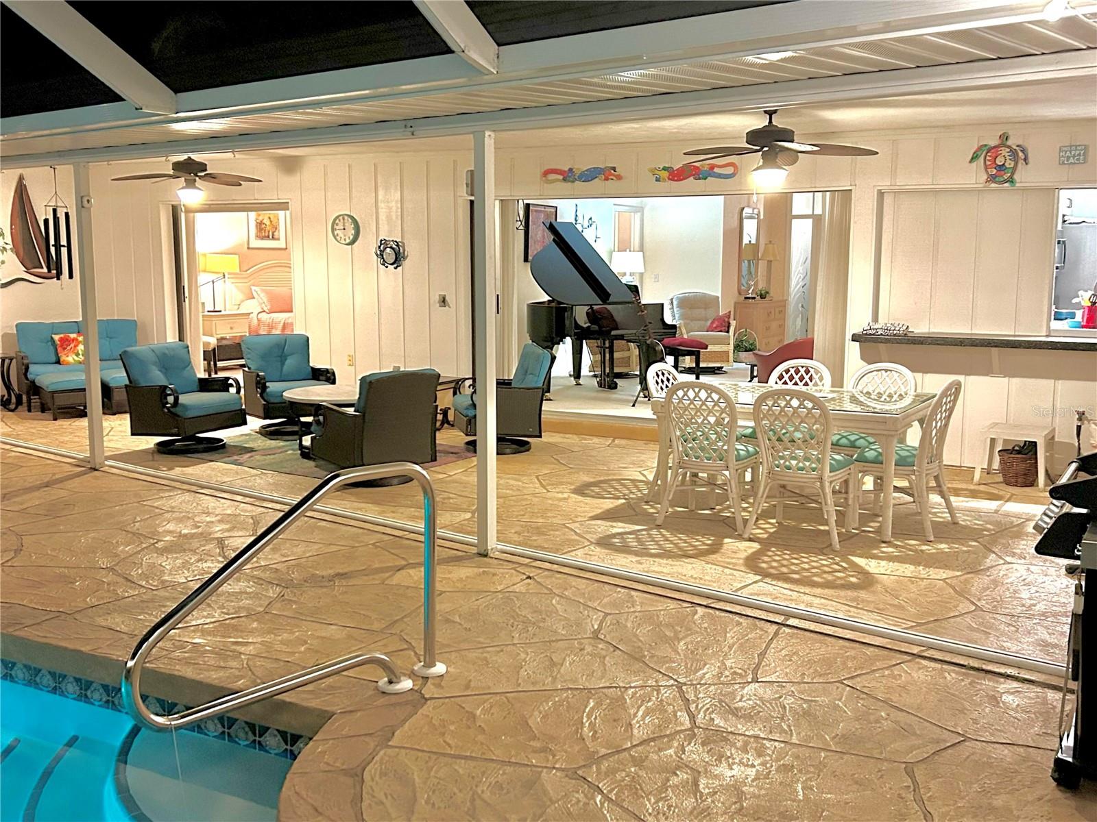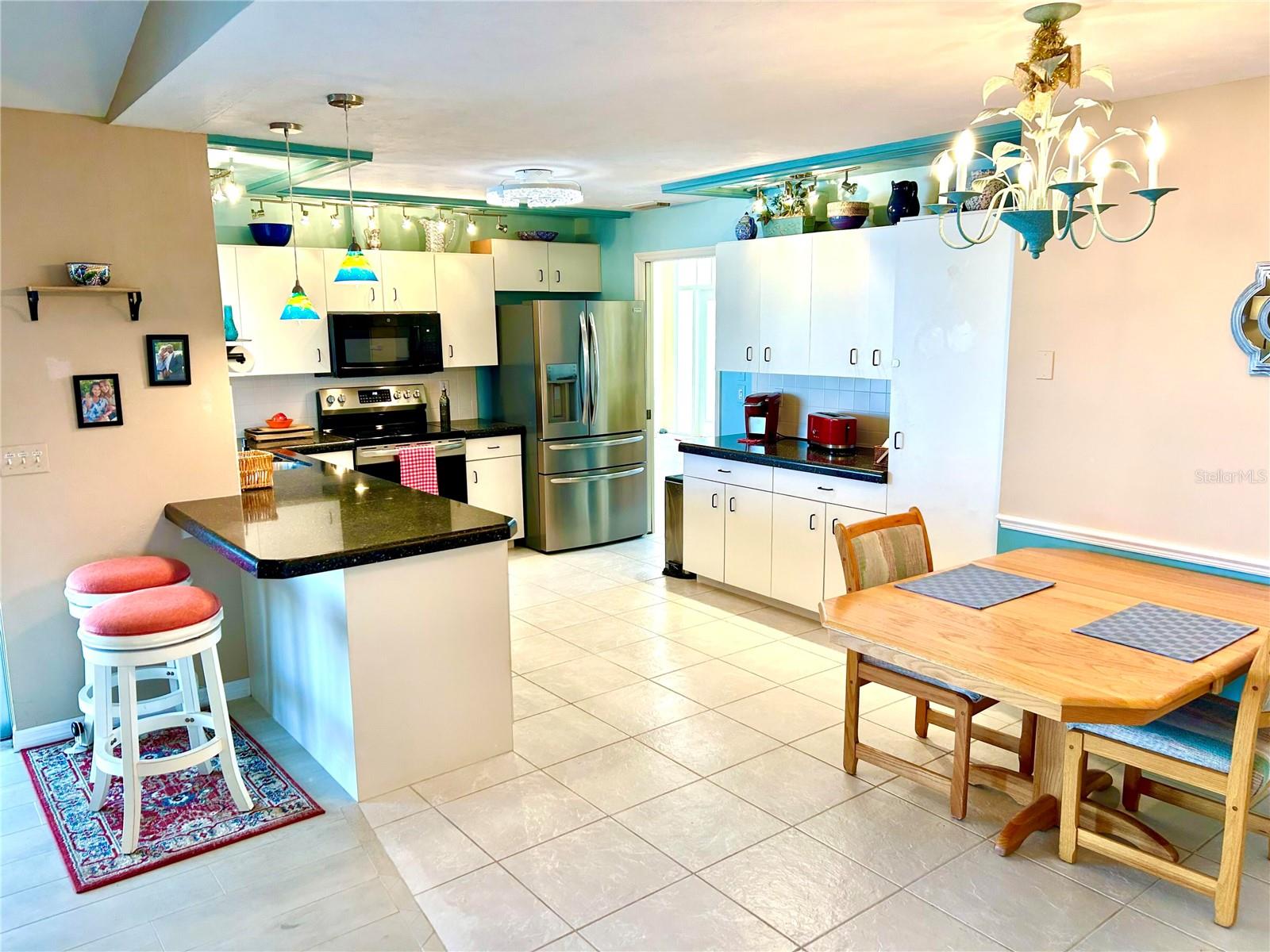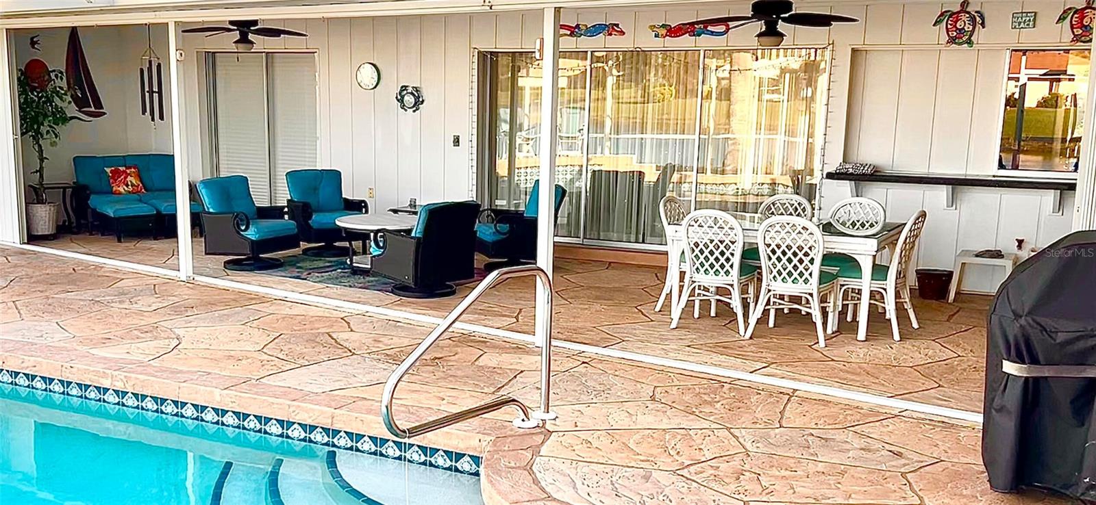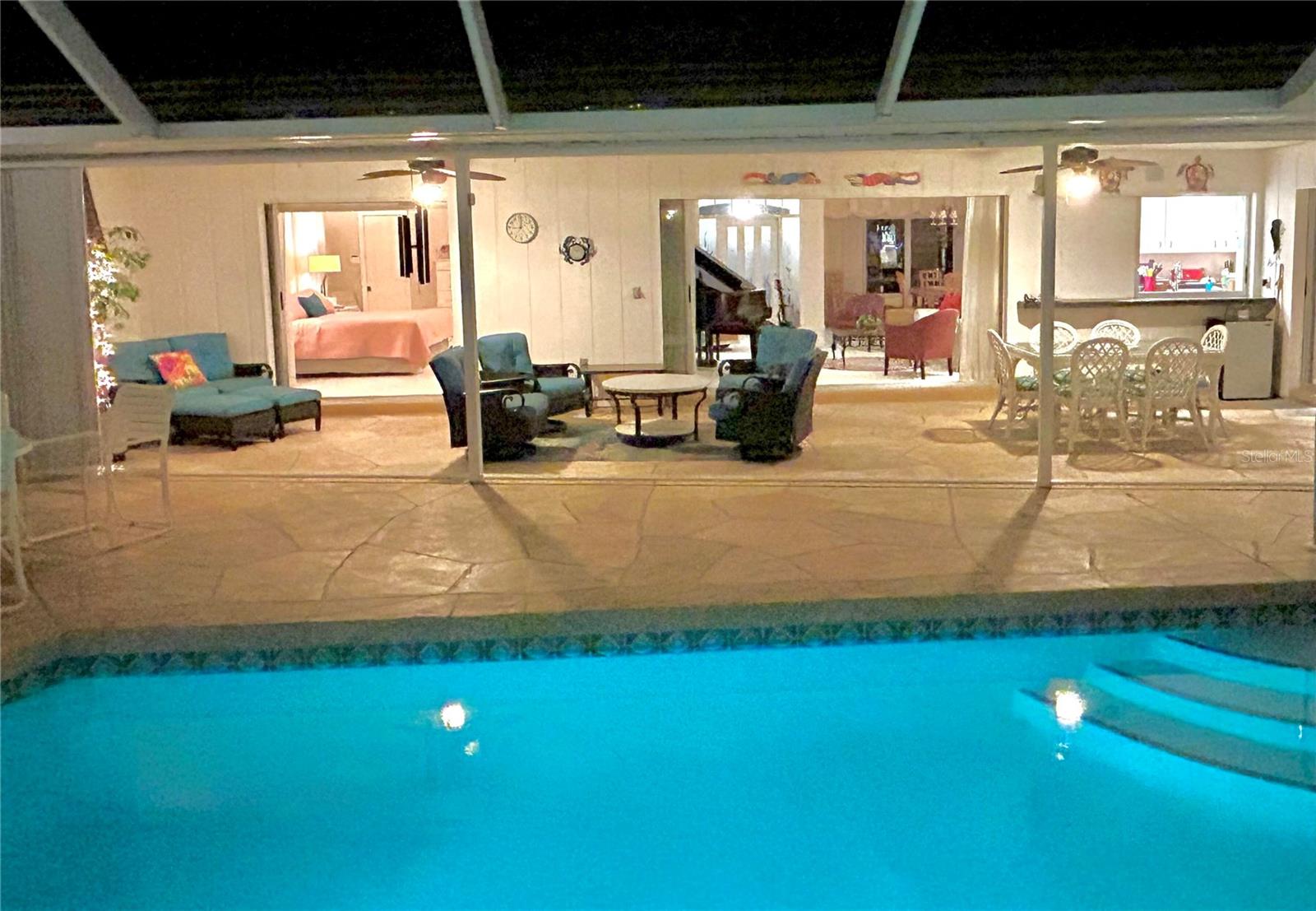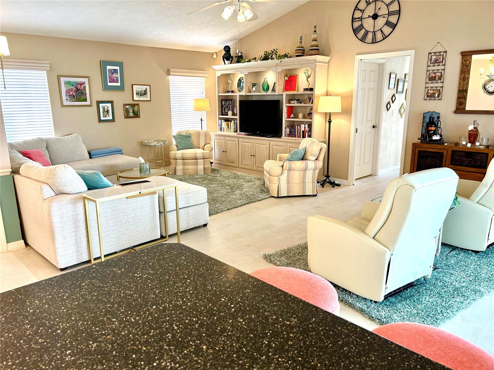 Welcome to your beautiful POOL home, situated on a quiet cul-de-sac in the highly sought-after community of Quail Lake. This meticulously well-maintained residence boasts THREE BEDROOMS, TWO BATHS, and a sparkling heated pool with an oversized lanai offering a SPECTACULAR water view of Quail Lake—one of the best in the entire community! This beautiful home is offered totally furnished (optional). This is a great home for a family, snowbird or someone who is just looking to upgrade their house. Step inside to a welcoming living and dining room, featuring a vaulted ceiling and abundant natural light. Sliding glass doors seamlessly connect this space to your pool area, framing that stunning lake view. To your right, discover the very spacious master suite with newly installed luxury carpet, a large walk-in closet, and a private sliding glass door that pockets open to your beautiful lanai and pool. The well-appointed kitchen, to the left of the living room , features quartz countertops and new Frigidaire Gallery appliances, including an armoire refrigerator and an electric stove with an air fryer feature and plug-in meat thermometer, plus a new GE 1100W microwave. Adjacent, you'll find a large laundry room with ample counter space, storage, and a utility sink. Beyond the kitchen awaits a very large family room, complete with a custom-made entertainment center and a large sectional sofa. This room also features a vaulted ceiling and a 12-foot pocketing sliding glass door, effortlessly blending indoor and outdoor living – great for entertaining! The family room, along with both spacious guest bedrooms and the second bathroom, boasts new porcelain wood plank tile floor. Both guest bedrooms with walk-in closets, with one also providing direct sliding glass door access to the pool area. The second bathroom features a walk-in shower and doubles as a convenient pool bath. Outside, enjoy nearly 350 sq. ft. of shaded lanai space – ideal for entertaining, while the pool enjoys sun all day long. This home is ready for you to move in, boasting recent upgrades such as a new lanai cage, a new roof over the lanai, and a new whole-house filter and water softener. Enjoy the peace of mind of no CDD fees and an incredibly low HOA fee, which grants access to fantastic community amenities including a pool, gym, library, rec room, and tennis/Pickleball courts. Location, location, location. You are only minutes away from Walmart, Target, Home Depot, Publix, and CVS. A short ten minute ride from the beach and beautiful downtown Venice which offers fine dining, shopping and cultural experiences. This is an exceptional opportunity to own a piece of paradise in Quail Lake!