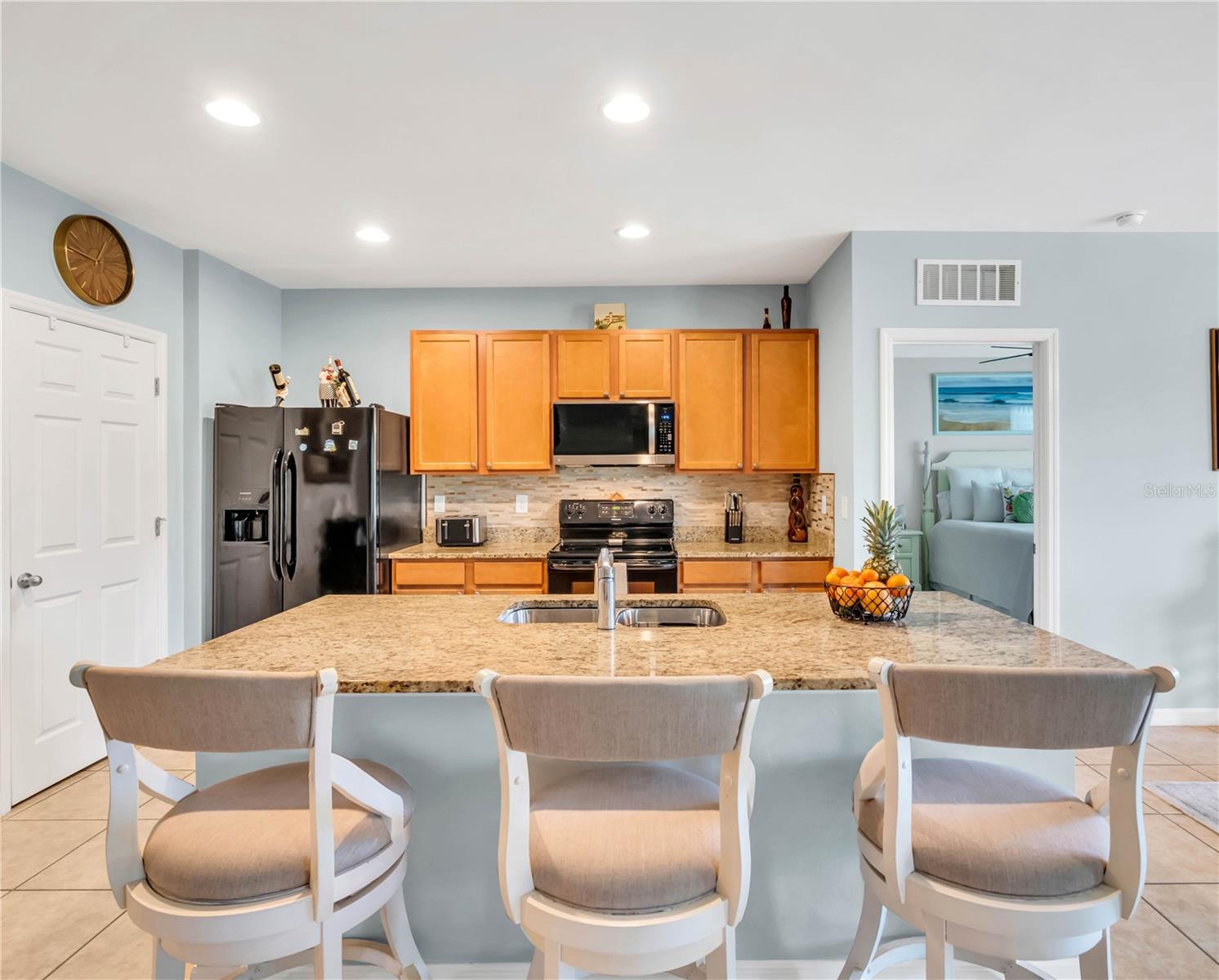 Seller Motivated. Welcome to your new home at the remarkable community of Rapalo, Venice. The house is a 3 bedrooms - 2 full baths, a spacious two-car garage, and an inviting open floor plan. Inside, you'll find 18x18 ceramic tile flooring throughout, a modern kitchen equipped with granite countertops, a new backsplash remodeled in with all the appliances, complemented by designed wood cabinets along with convenient window blinds.The meticulously landscaped grounds feature fully sodded lawns and a sprinkler system, double paned insulated windows; 8’8” high ceilings; The master suite features a walk-in closet with a new venting intakes installed to maintain the humidity out of your clothes, ceiling fans in all bedrooms and at the screened lanai outside. Additional features include a practical trash can attached as a pullout from the kitchen island, hurricane shutters, and newly installed cabinets in the laundry room. The house boasts several additional features, including cabinets in the laundry room, a linen closet in the guest bathroom. Outside, the landscape has been upgraded with river stones in the front, back, and sides of the house, enhancing its curb appeal. Furthermore, the driveway has recently been replaced, ensuring both functionality and aesthetics. Inside the garage, you'll find a closet with shelves, providing ample storage space for your belongings. This residence is just steps away from the community pool, and the HOA covers lawn maintenance, access to the swimming pool. Conveniently situated near supermarkets, hospitals, restaurants, and with easy access to Sarasota and Tampa, plus a mere 10-minute drive to the beach, this property offers a lifestyle of convenience and comfort. Schedule your viewing today to experience it firsthand!