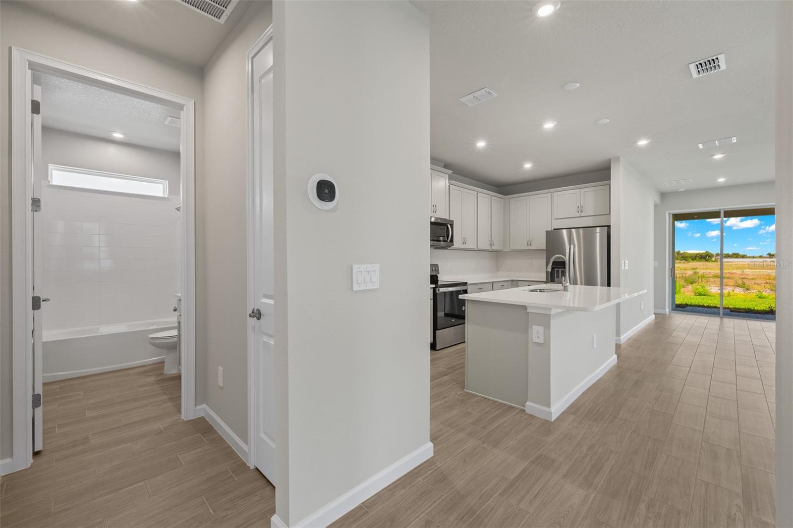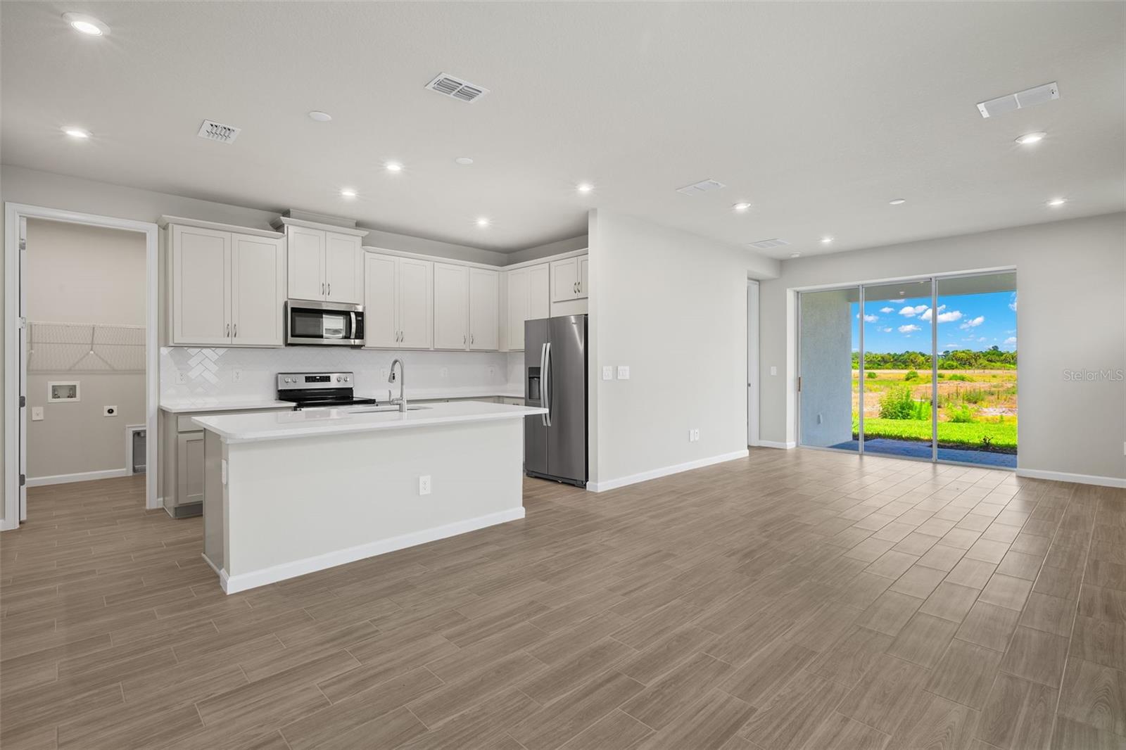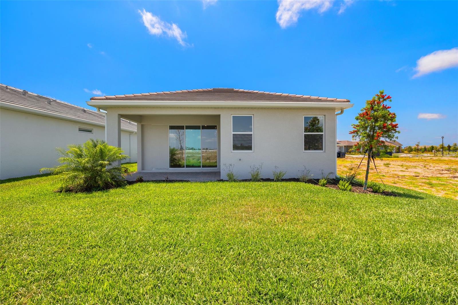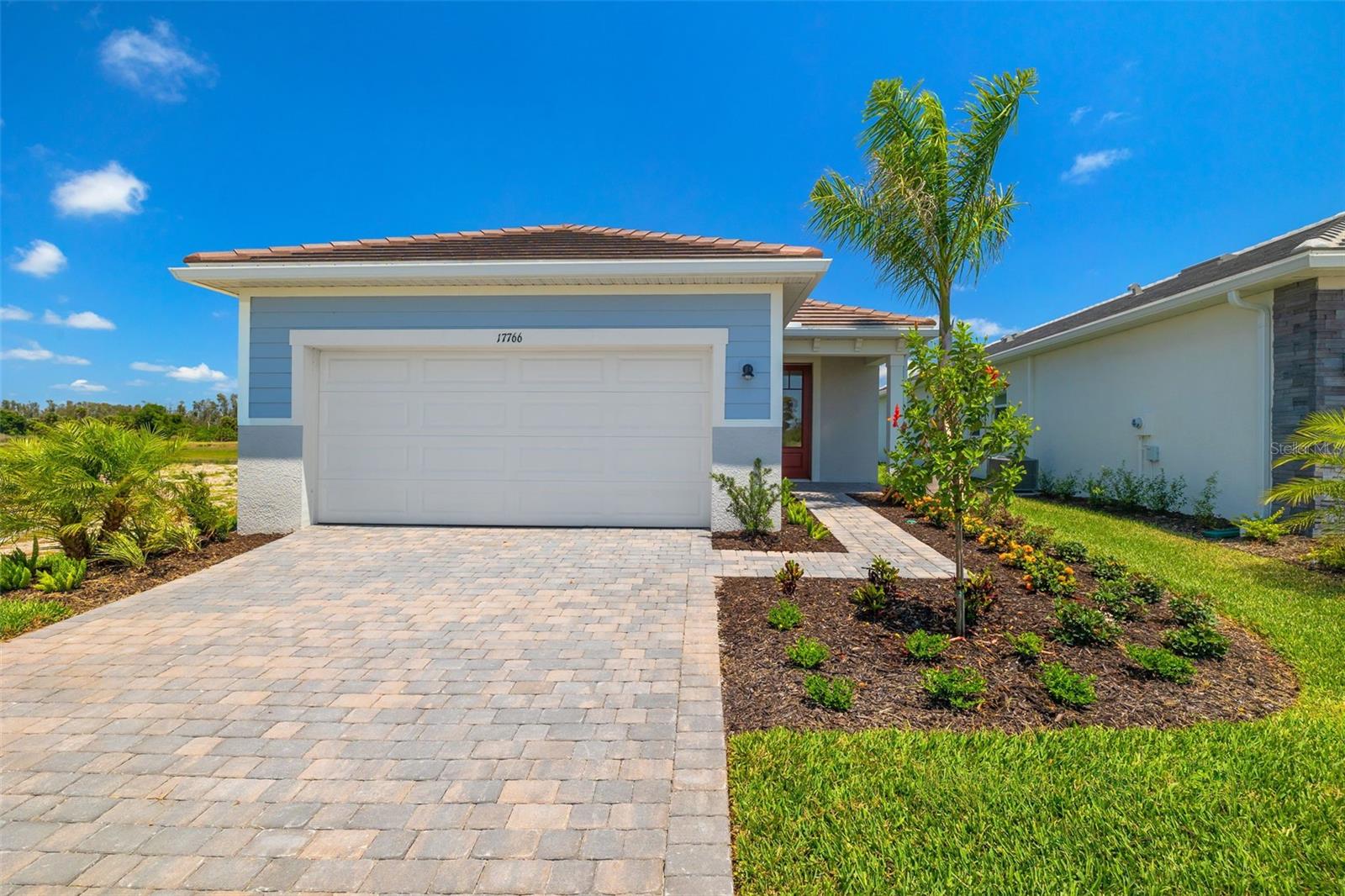The good life is within your reach in the 1,506 sq. ft. Egmont floorplan with a coastal exterior. From porch to lanai to all the open-concept living and dining space in between, your everyday routine will be elevated by the flowing space and modern feel of this design. The owner’s suite has a large walk-in closet and private bath that features a dual sink raised vanity, while bedroom 2 and its bath can serve as a guest suite. There’s even a flex room for hobbies, entertainment, remote work or study. Plank style tile throughout the main living areas. Photos, renderings and plans are for illustrative purposes only, and should never be relied upon and may vary from the actual home. The photos are from the home offered for sale.