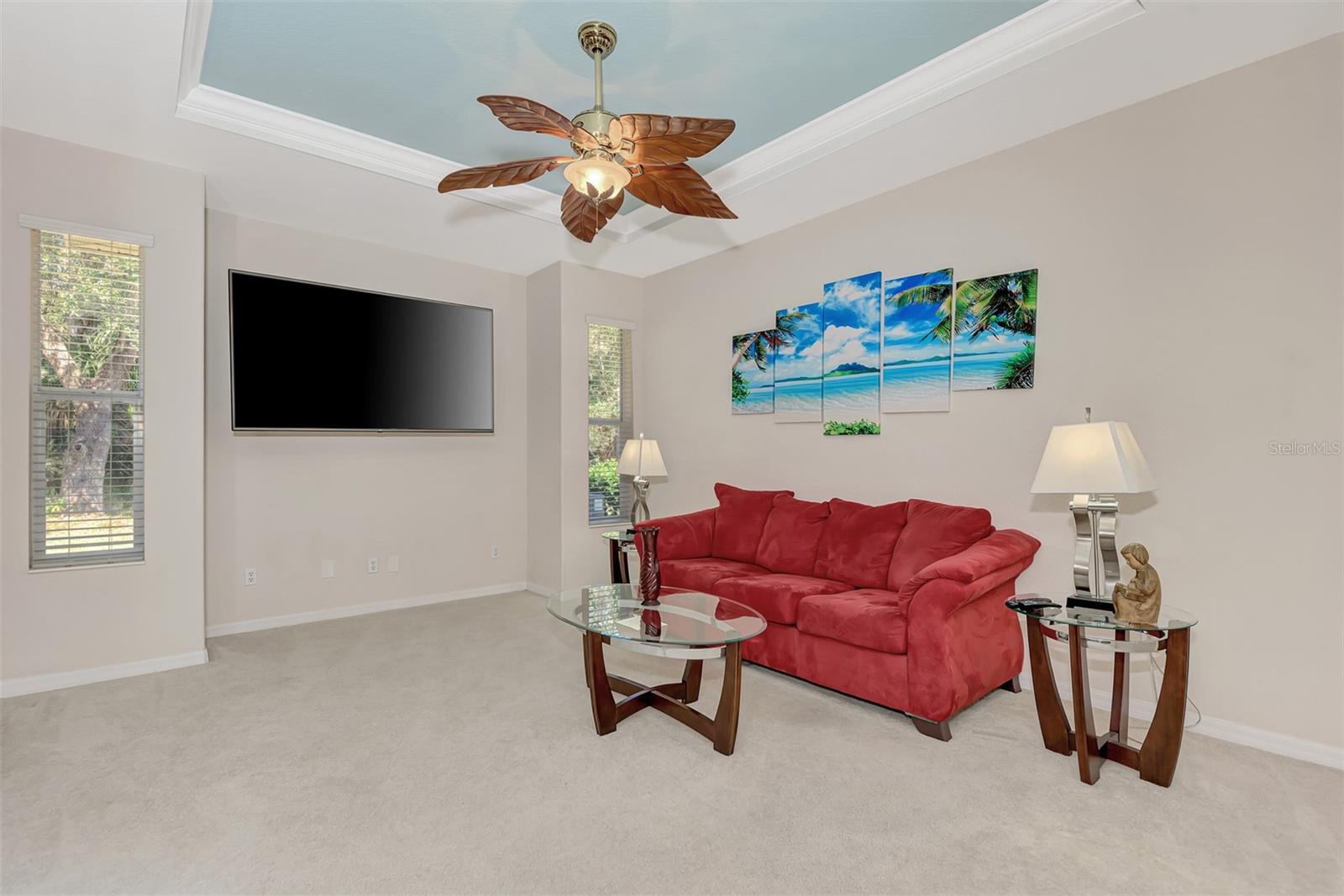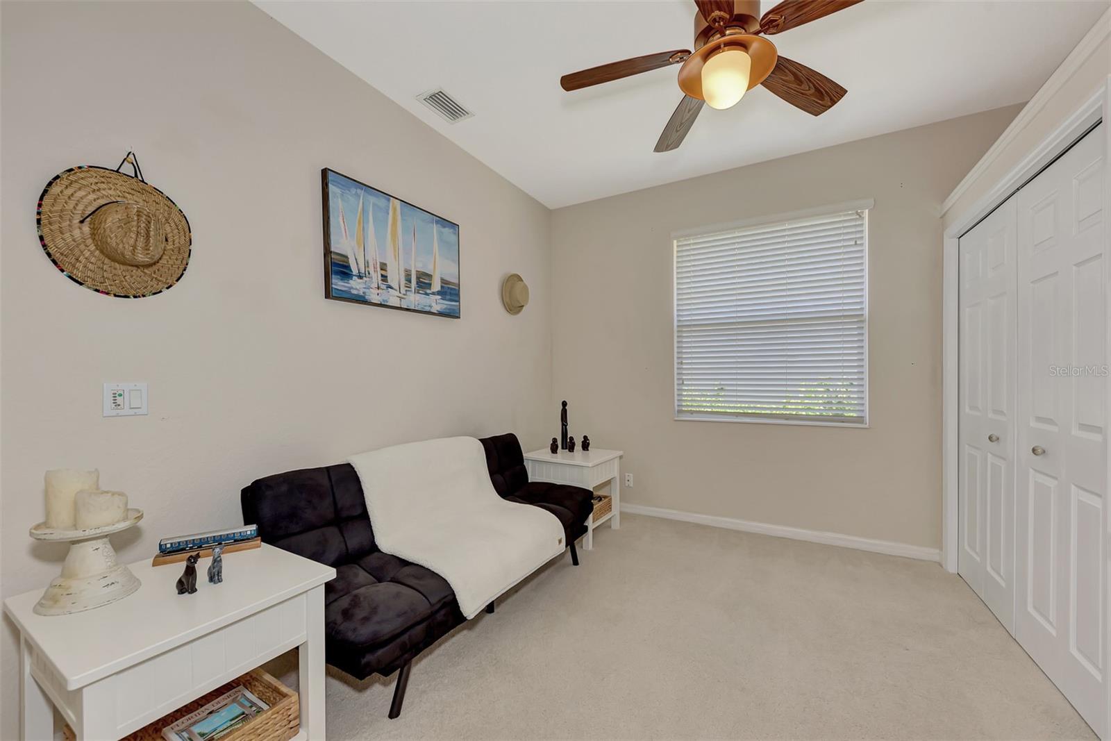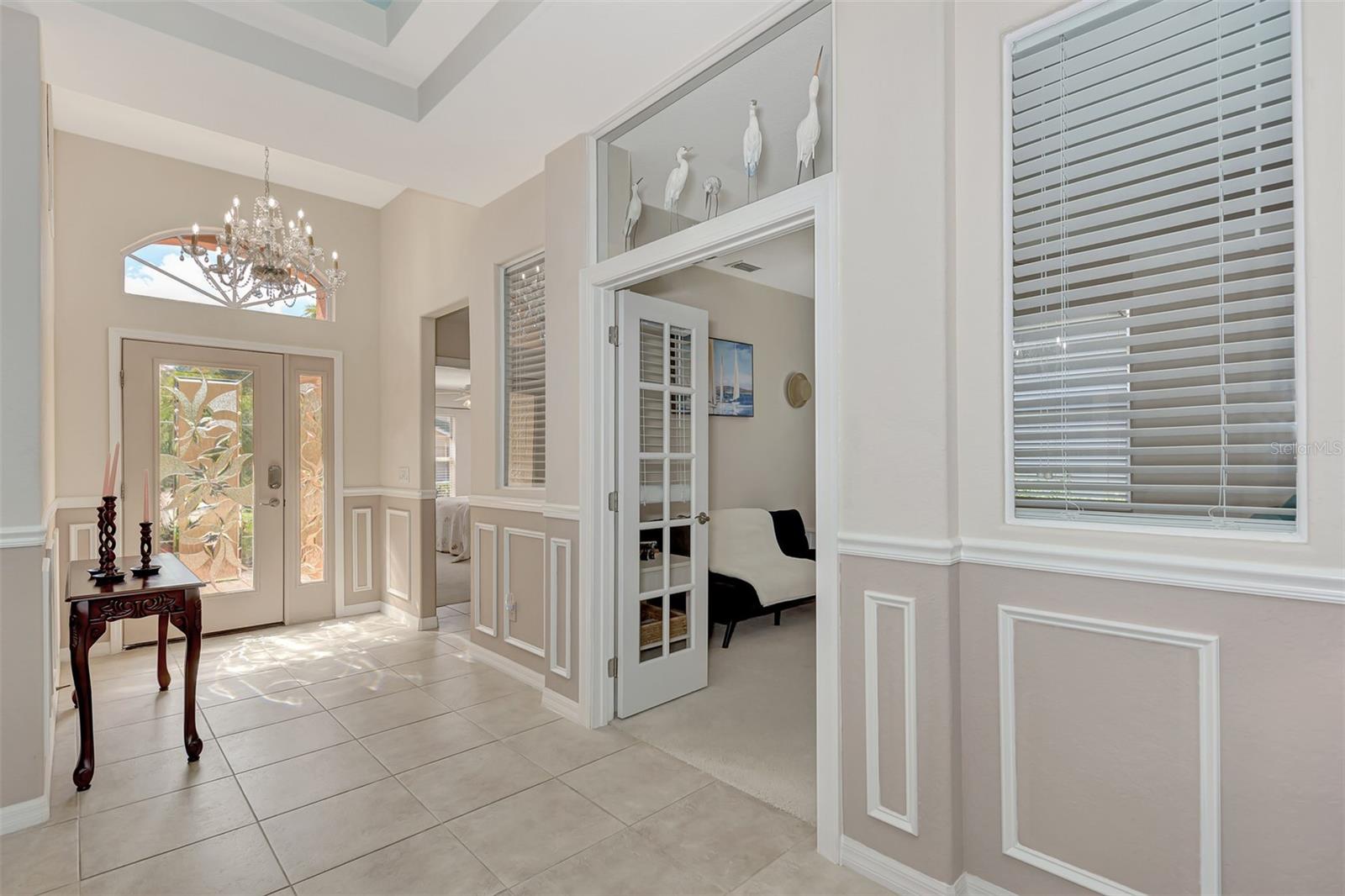 Comfortable and elegant home in desirable Stoneybrook with low HOA! Brand new complete AC system installed, June 2024. Beautiful, upscale interior treatments and move in ready. Comfortable 3/2 or 2/2 with office. Room for a pool or dog fence. Backs to quiet preserve area with stream. Community pool, spa, fitness, tennis and clubhouse. Previously a model, this gorgeous home has numerous extra interior details to the ceilings and walls that make for an elegant yet comfortable home. TV room with extra large, wall mounted TV. Two car garage, alarm, open plan with eat in kitchen and dedicated dining room area.
