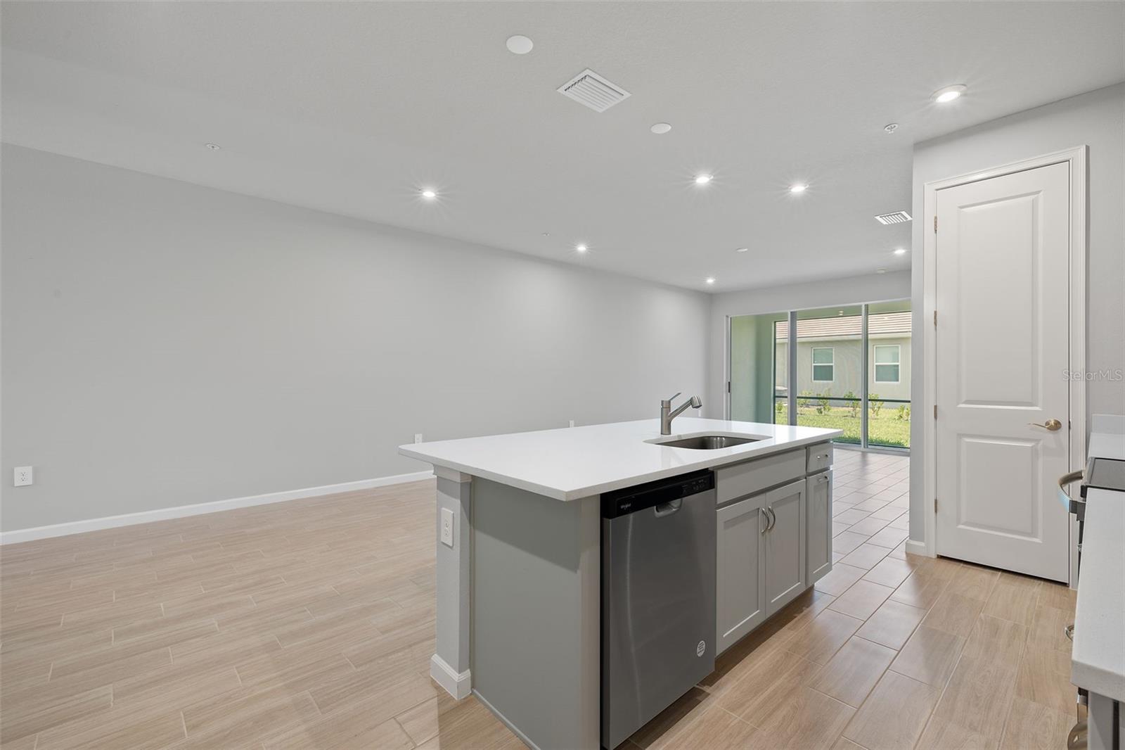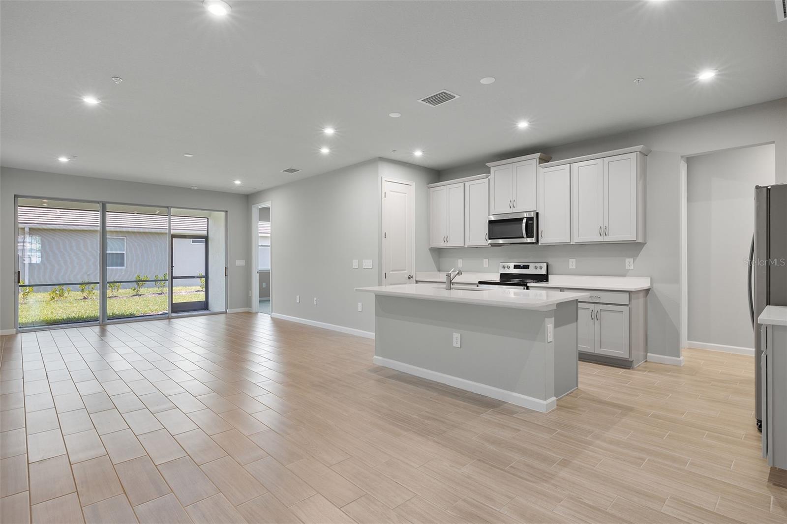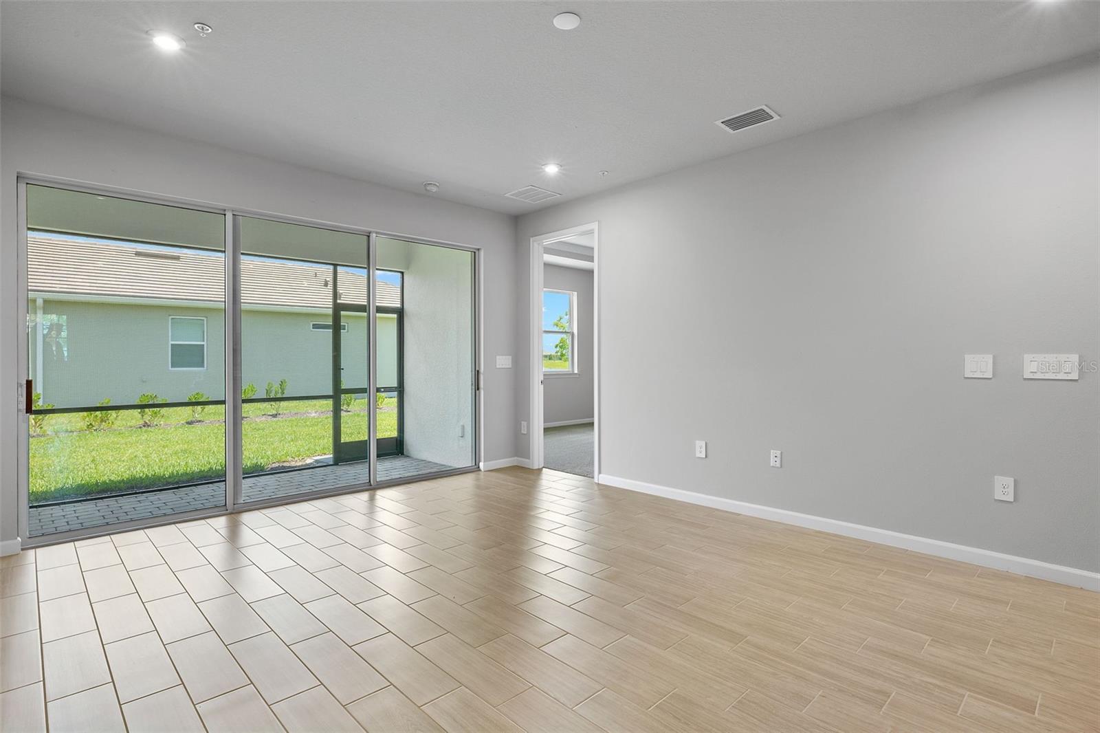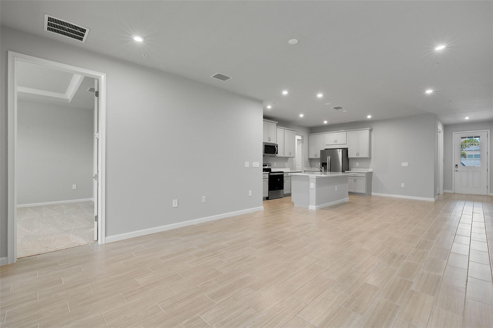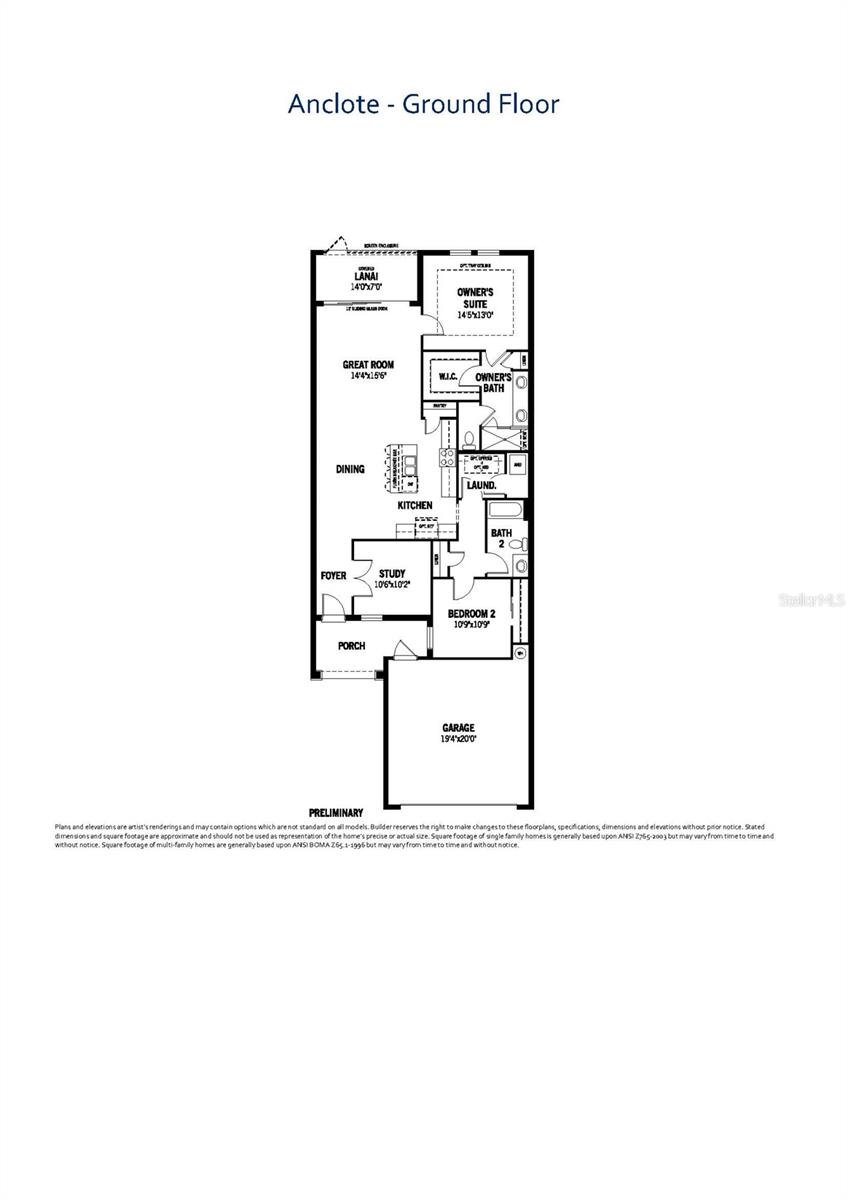 The 1,501 sq. ft. Anclote is an attached villa floorplan with serious style and optimized spaces for daily living, nightly privacy and any kind of special occasion. The cozy porch of this interior home leads to both the 2-car garage and the foyer — which opens to a flex room that’s perfect for entertaining, a hobby room or a home office. The airy Great Room features expansive sliding glass doors, overlooks the dining and kitchen areas, and offers plenty of space for gatherings, daily meals, games, movies and more. A breakfast bar and covered lanai create even more opportunities for conversation and enjoying the day. The private owner’s suite has a large walk-in closet and dual-sink bath of its own, while bedroom 2 has a full bath and easy access to the laundry room. Photos, renderings and plans are for illustrative purposes only, and should never be relied upon and may vary from the actual home. The photos are from a furnished model home and not the home offered for sale.