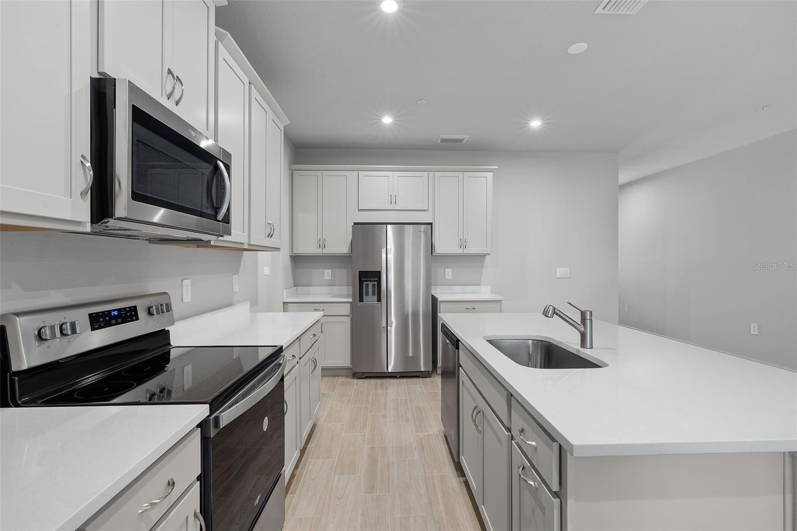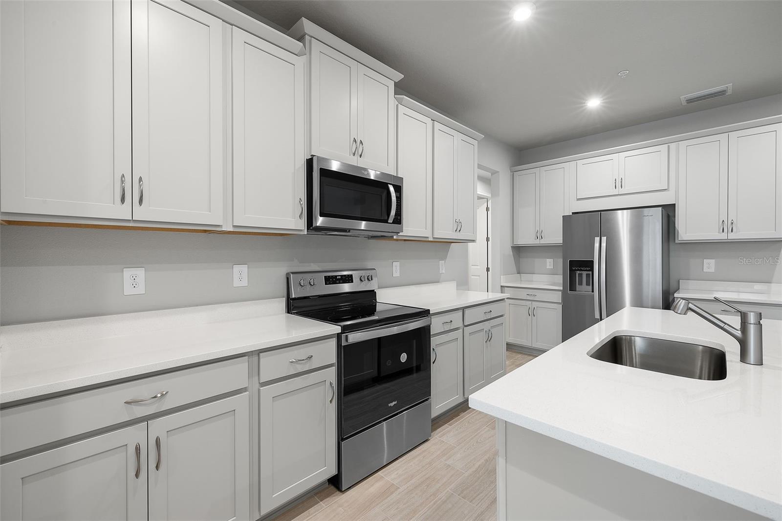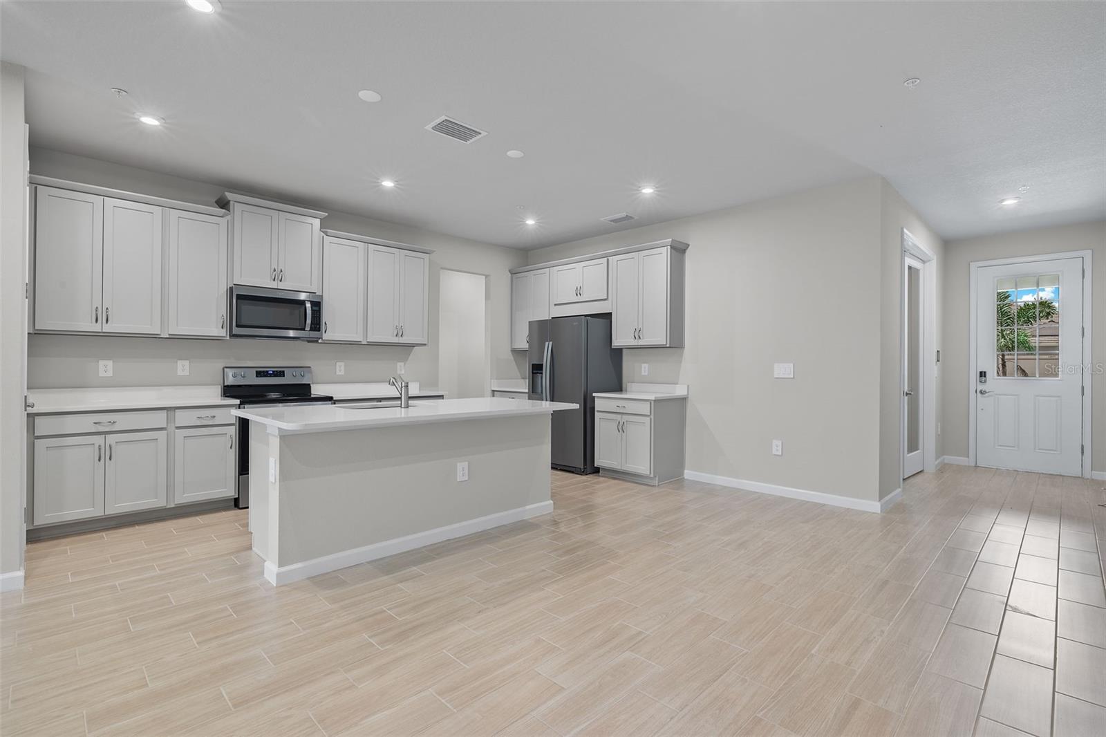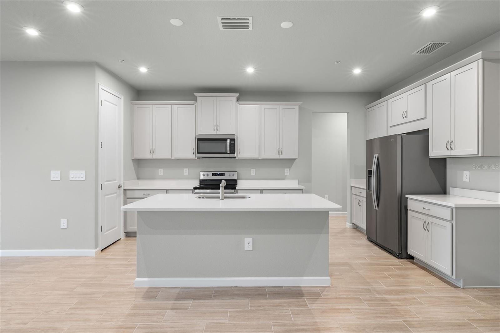 The 1,501 sq. ft. Anclote is an attached villa floorplan with serious style and optimized spaces for daily living, nightly privacy and any kind of special occasion. The cozy porch of this interior home leads to both the 2-car garage and the foyer — which opens to a flex room that’s perfect for entertaining, a hobby room or a home office. The airy Great Room features expansive sliding glass doors, overlooks the dining and kitchen areas, and offers plenty of space for gatherings, daily meals, games, movies and more. A breakfast bar and covered lanai create even more opportunities for conversation and enjoying the day. The private owner’s suite has a large walk-in closet and dual-sink bath of its own, while bedroom 2 has a full bath and easy access to the laundry room. Photos, renderings and plans are for illustrative purposes only, and should never be relied upon and may vary from the actual home. The photos are from a furnished model home and not the home offered for sale.