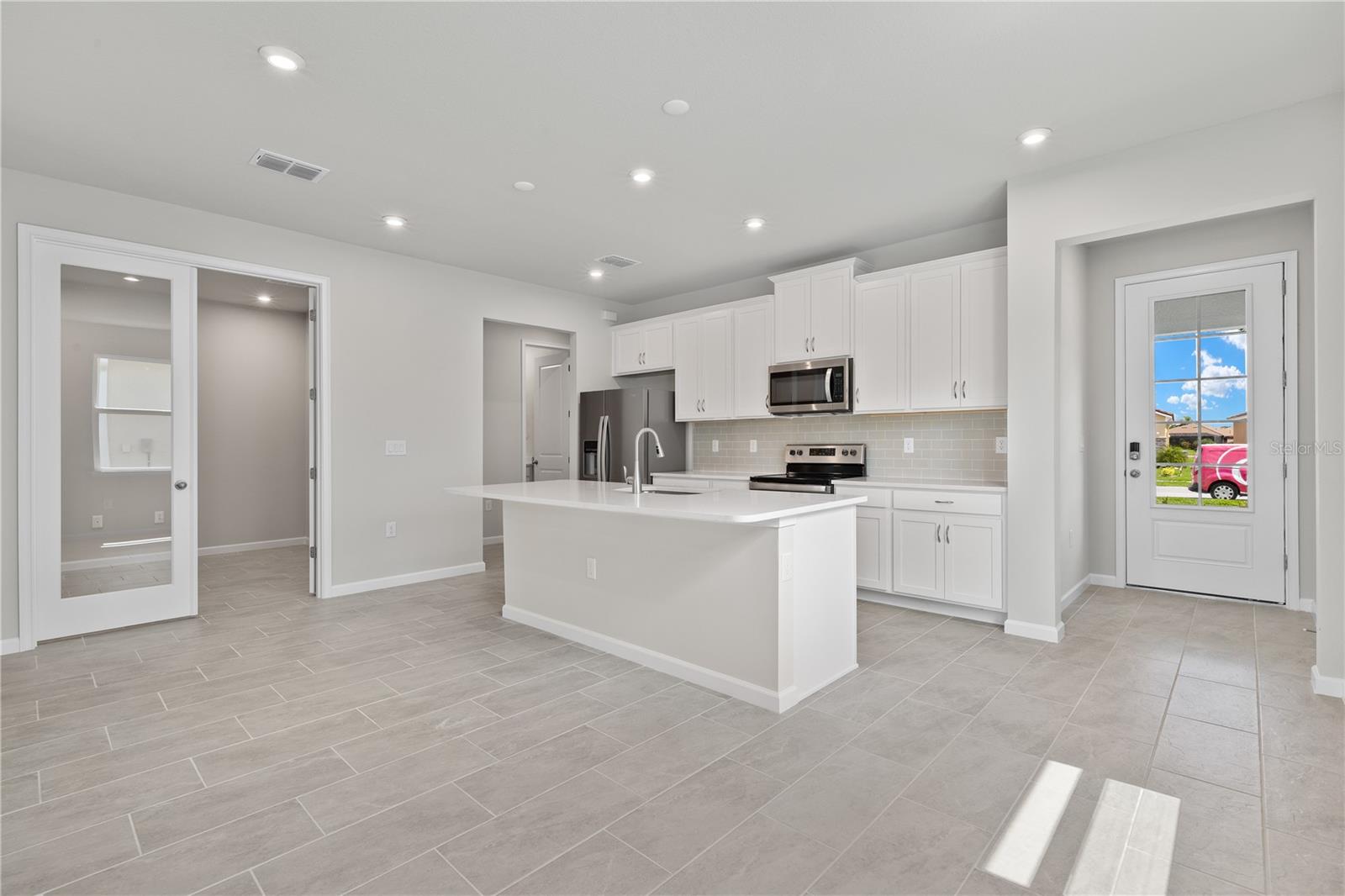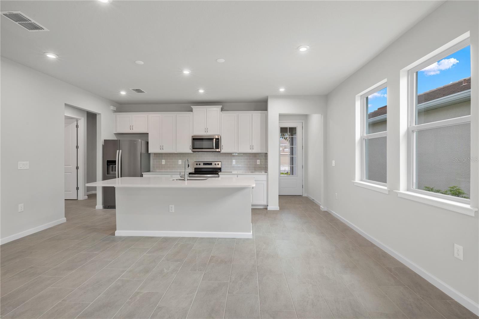 Welcome to your low maintenance oasis in the heart of Wellen Park! This stunning Oceana villa boasts a prime location with preserve views, offering the perfect backdrop for enjoying breathtaking sunsets from your covered lanai. Step inside to discover a spacious open floor plan, highlighting a bright and airy kitchen seamlessly integrated with the Great Room. Adorned with Painted Linen cabinets and Carrara Marmi quartz countertops, the kitchen features a large island and breakfast bar, ideal for quick meals or entertaining guests. The home is thoughtfully designed with 12x24 tile flooring throughout the main living areas and study, offering versatility as a formal living area, media room, or home office. Retreat to the owner's suite nestled at the rear of the home, complete with a luxurious ensuite featuring a spacious shower, dual sink raised vanity, walk-in closet, and private water closet. Enjoy peace of mind with IMPACT WINDOWS, 8-foot doors, and smart features enhancing everyday living. Renaissance, a gated community, offers Resort Style Amenities including a clubhouse, fitness center, pool, pickleball, tennis, and more—all available for your enjoyment now. Conveniently located near the new Downtown Wellen Park, you'll find shops, restaurants, groceries, and the Atlanta Braves Spring Training Facility just a short distance away. Plus, with multiple stunning Gulf beaches within a 20-25 minute drive, you'll have endless opportunities for leisure and relaxation. Photos, renderings, and plans are for illustrative purposes only and may vary from the actual home offered for sale. Photos are of the actual home.