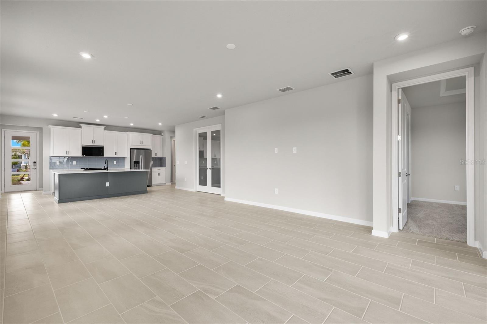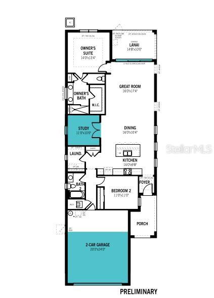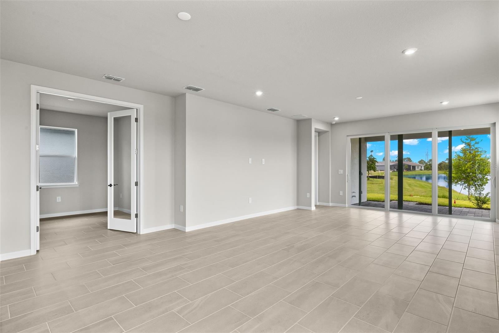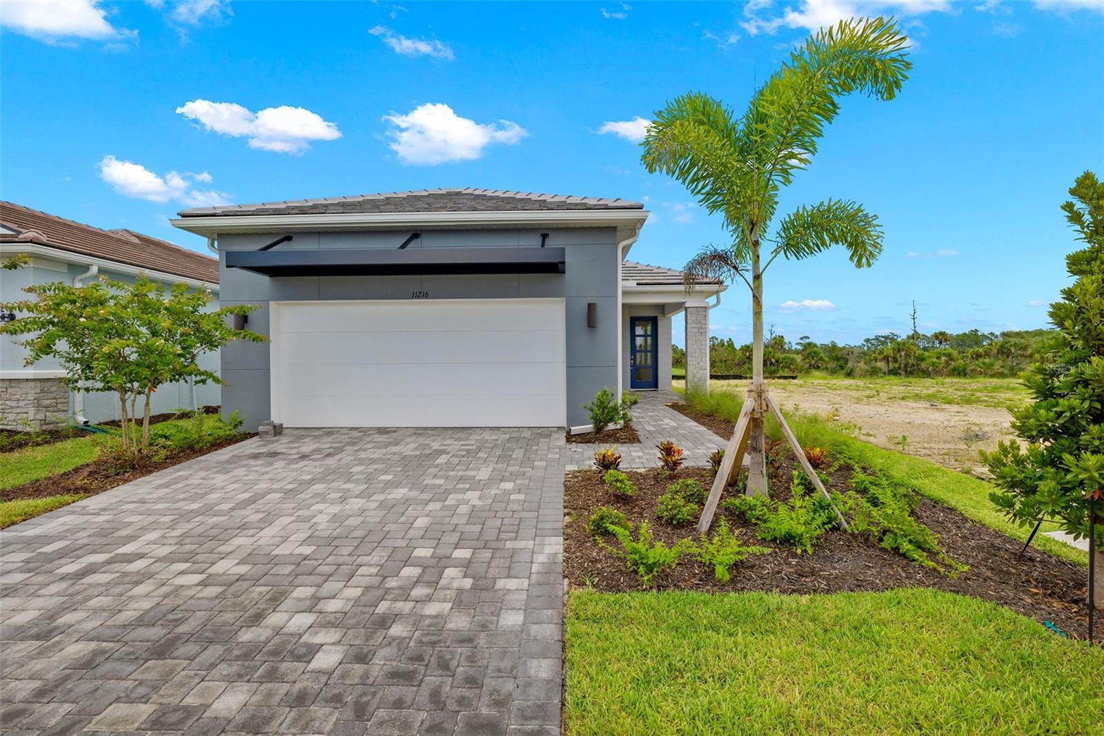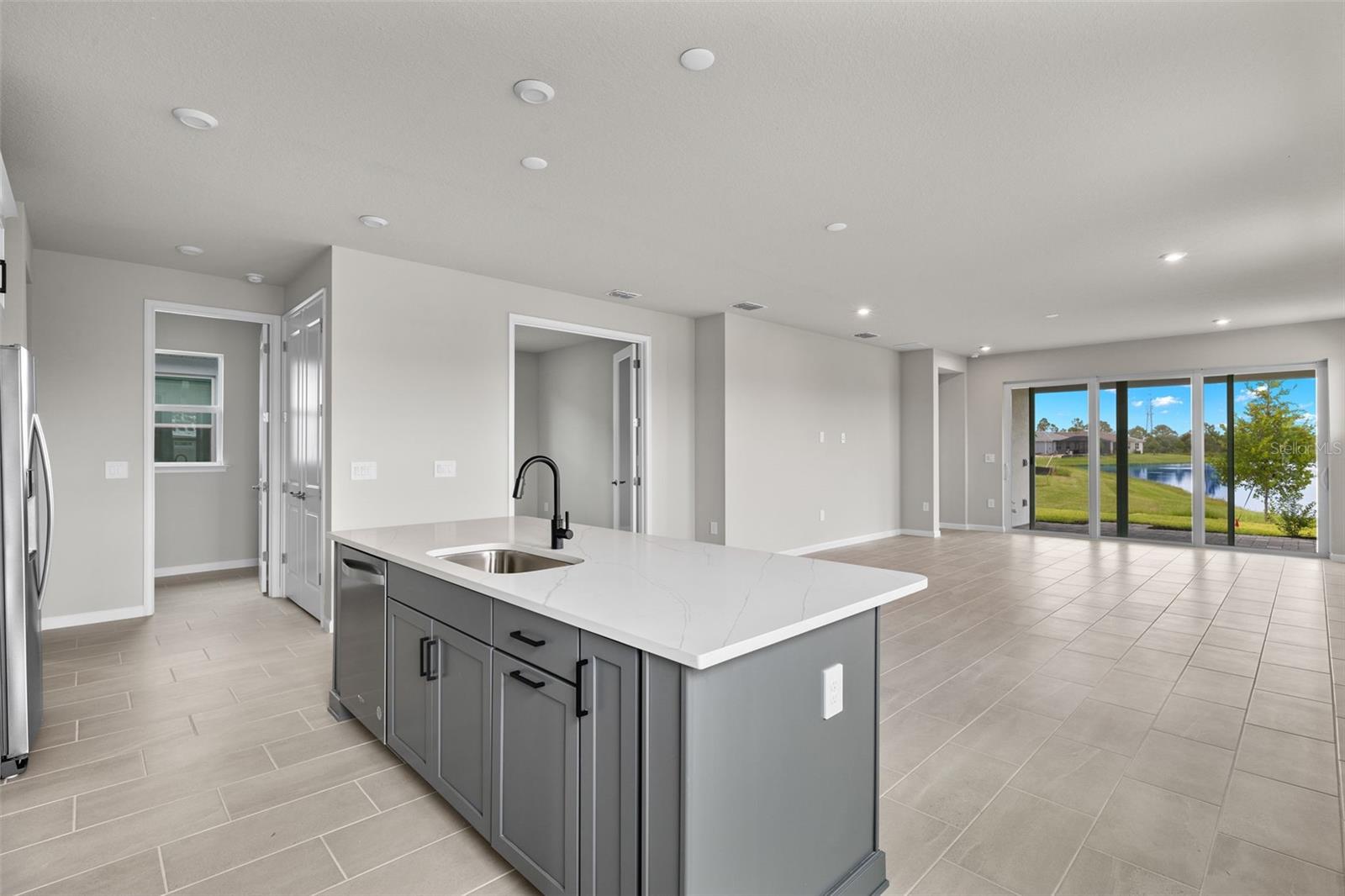 Under Construction. The Coral is a single-family home design with 1,611 sq. ft. of open and airy living space situated on a water homesite. The layout has plenty of natural light and timeless, modern styling to make both everyday living and special gatherings brilliant and memorable. The designer-coordinated kitchen, dining area, and Great Room overlook the covered lanai which boasts an outdoor kitchen pre-plumb. This exquisitely planned kitchen features dual-painted cabinets with a rich Boulder on the island and bright Linen on the perimeter cabinets. Marble styled quartz countertops in Calacatta Ultra brings out the color of the island and ties the kitchen together along with the glass tiled backsplash. A study provides a versatile living space to use as you please. The owner’s suite has a private bath with a dual sink raised vanity, linen closet and spacious walk-in closet. The lanai is accessible from the Great Room through the oversized 12' sliders. This allows views all the way from the kitchen. The garage has a four-foot extension for all of your storage needs. The home also includes impact windows and a smart home tech package. Photos, renderings and plans are for illustrative purposes only, and should never be relied upon and may vary from the actual home. Room Feature: Linen Closet In Bath (Primary Bedroom).
