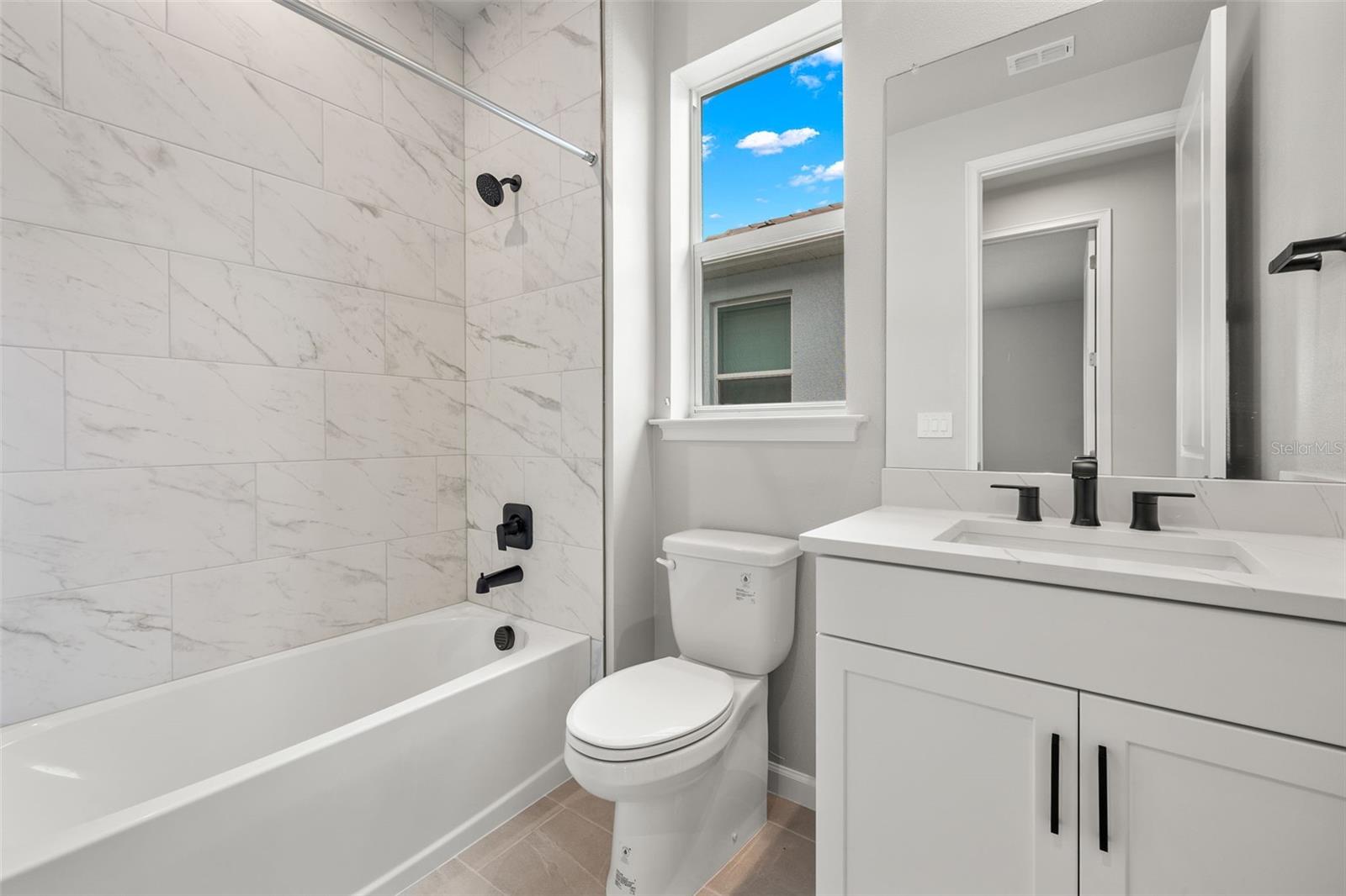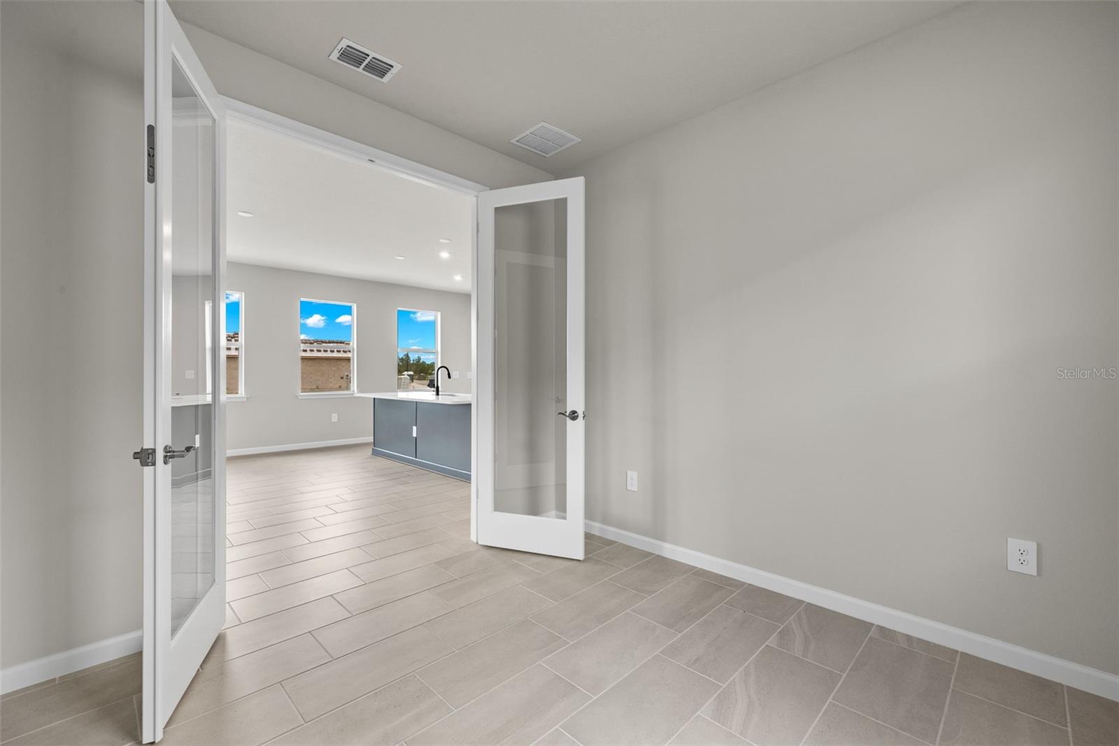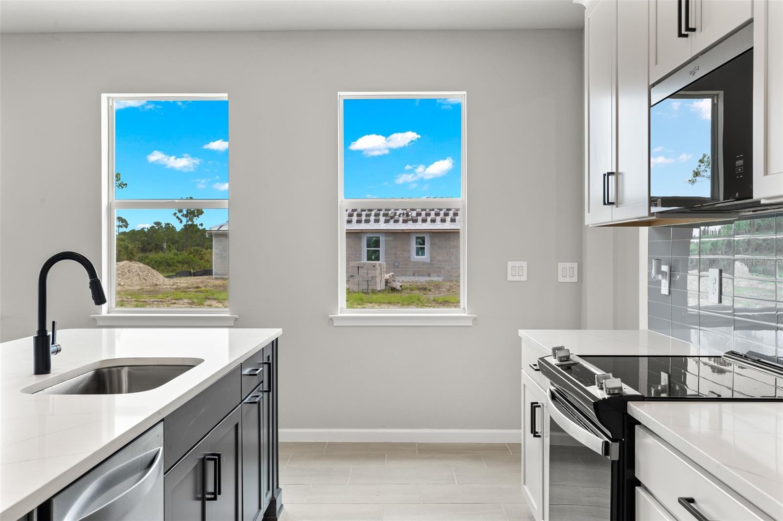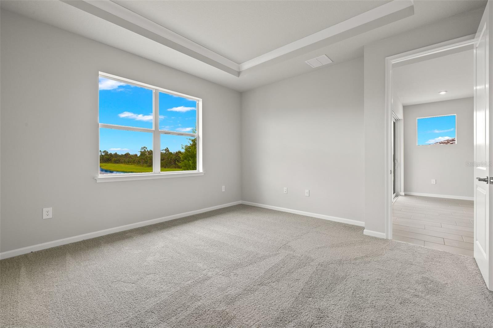 Under Construction. The Coral is a single-family home design with 1,611 sq. ft. of open and airy living space situated on a water homesite. The layout has plenty of natural light and timeless, modern styling to make both everyday living and special gatherings brilliant and memorable. The designer-coordinated kitchen, dining area, and Great Room overlook the covered lanai which boasts an outdoor kitchen pre-plumb. This exquisitely planned kitchen features dual-painted cabinets with a rich Boulder on the island and bright Linen on the perimeter cabinets. Marble styled quartz countertops in Calacatta Ultra brings out the color of the island and ties the kitchen together along with the glass tiled backsplash. A study provides a versatile living space to use as you please. The owner’s suite has a private bath with a dual sink raised vanity, linen closet and spacious walk-in closet. The lanai is accessible from the Great Room through the oversized 12' sliders. This allows views all the way from the kitchen. The garage has a four-foot extension for all of your storage needs. The home also includes impact windows and a smart home tech package. Photos, renderings and plans are for illustrative purposes only, and should never be relied upon and may vary from the actual home. Room Feature: Linen Closet In Bath (Primary Bedroom).