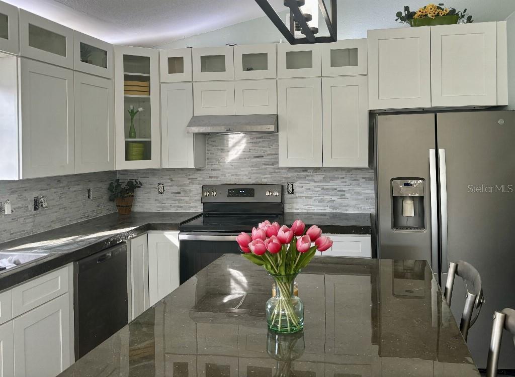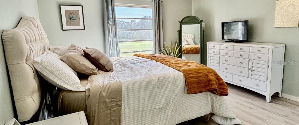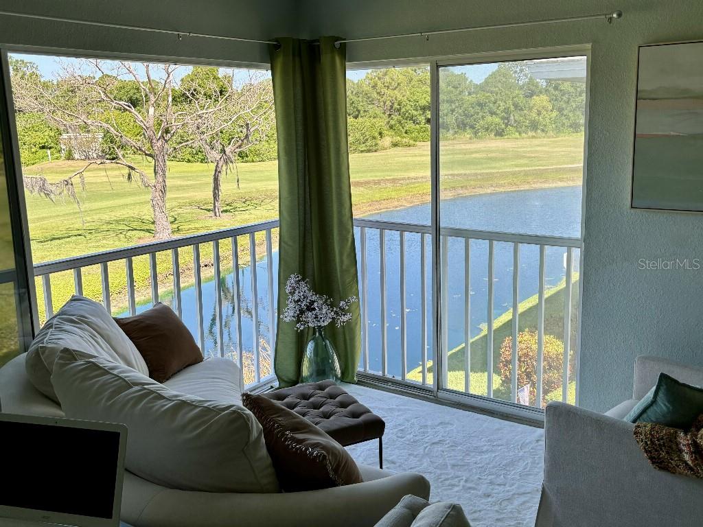 Welcome to this designer showcase golf course condo, with a stunning view of a river and lake and golf course. Osprey, and a wide array of birds fish, eat and fly just a few feet from your living room picture windows, along with turtles and alligators roaming the breathtaking golf-course. Summertime golf-course membership packages give you access to 3 courses for just $100/month - best deal in Florida. $50K concrete countertops showcased on a huge center island that seats six. Another $50K of interior designer purchased furniture, including Rob and Stuckey and Restoration Warehouse. Get a top of the line renovation, designed and furnished, move in ready home for the same price as an ordinary unit. $100K of value above list price. Show and fall in love - see it and you will know, not many places on the market like this! Million dollar view, $100K renovation, low hoa, new roof. This one has it all.