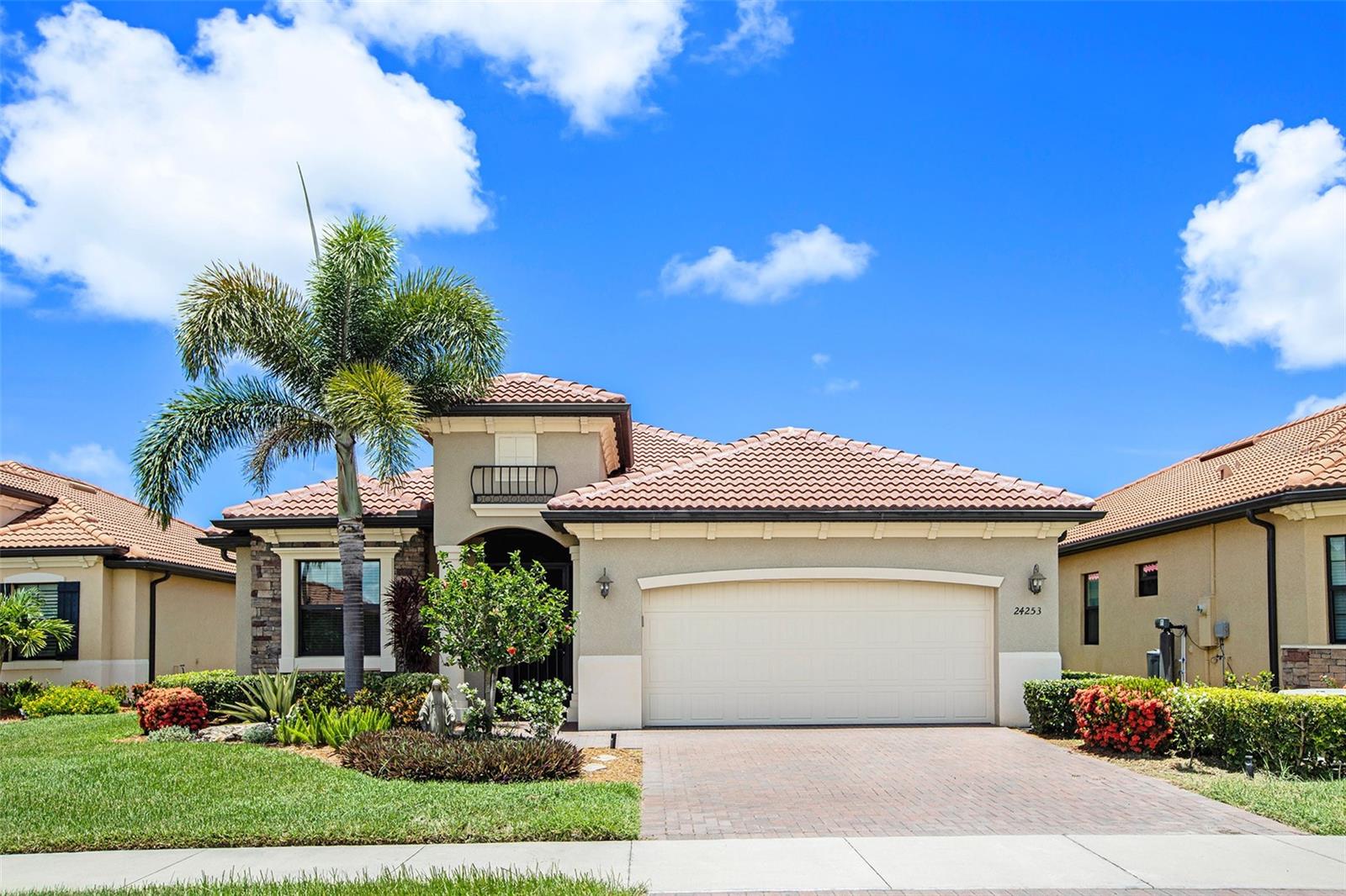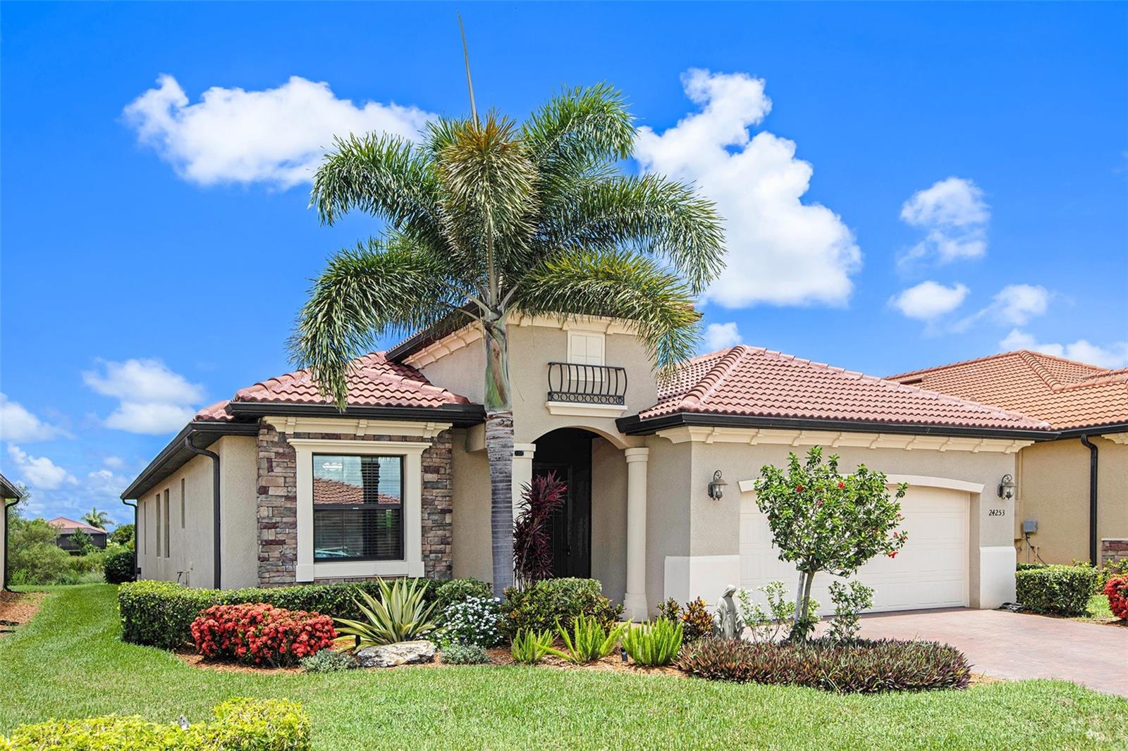 Experience luxury living in a 2,246 square foot Italian villa-style home. This exquisite residence features 4 bedrooms, perfect for family and guests, and 2 full bathrooms for added convenience. The lavish master suite includes his & hers walk-in closets and a luxe master bath with a glass-enclosed shower and Roman tub. The large 2-car garage provides ample storage. The gorgeous kitchen opens to a light and airy great room and dining area. Enjoy the covered lanai with an optional outdoor kitchen, perfect for entertaining. A utility room accommodates laundry and pet care. This home includes a golf membership to Sarasota National Golf Club, providing access to a resort-style pool & spa, on-site restaurants, fitness amenities, and more. Ask about all the upgrades included in this fabulous model.