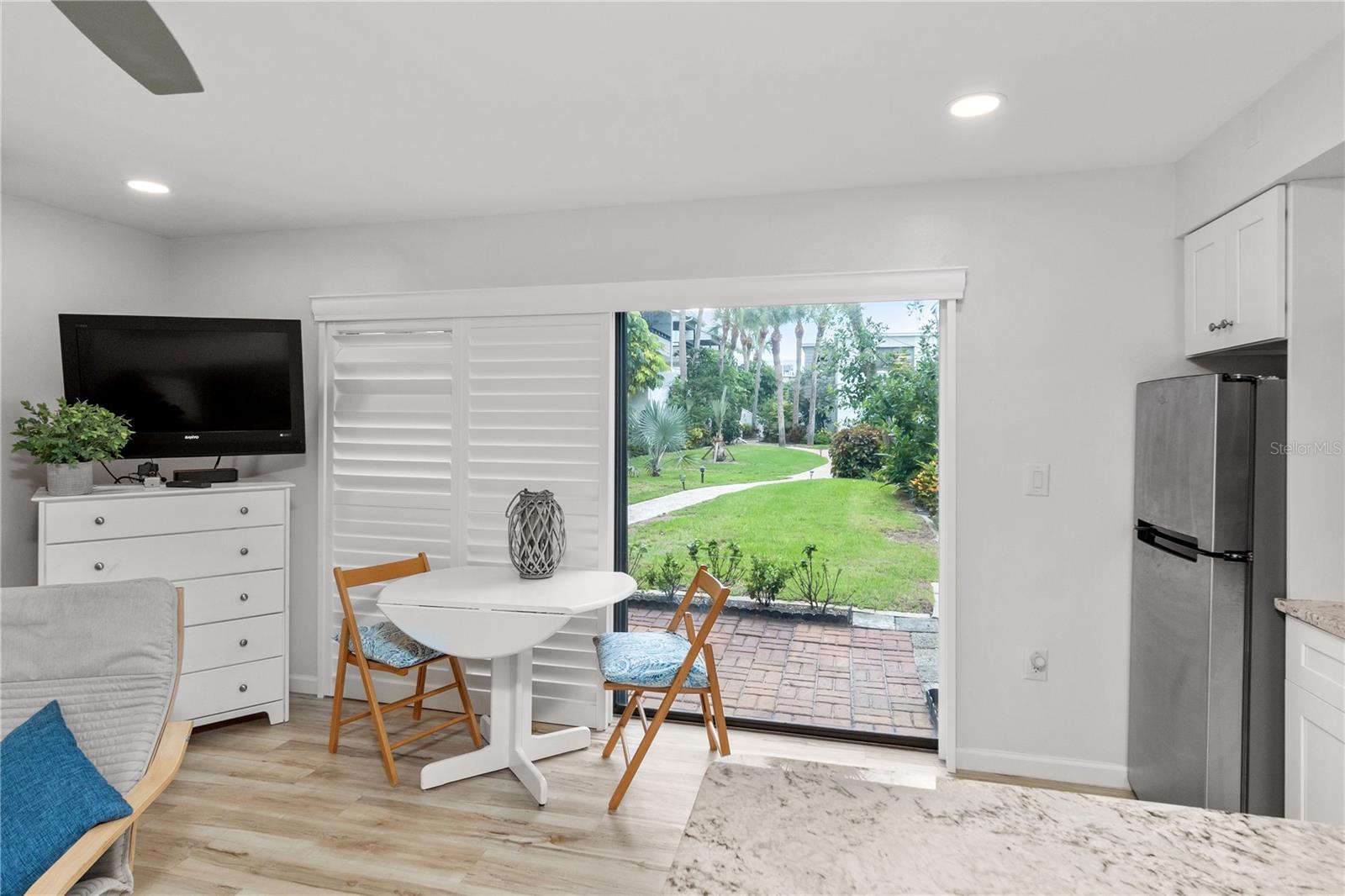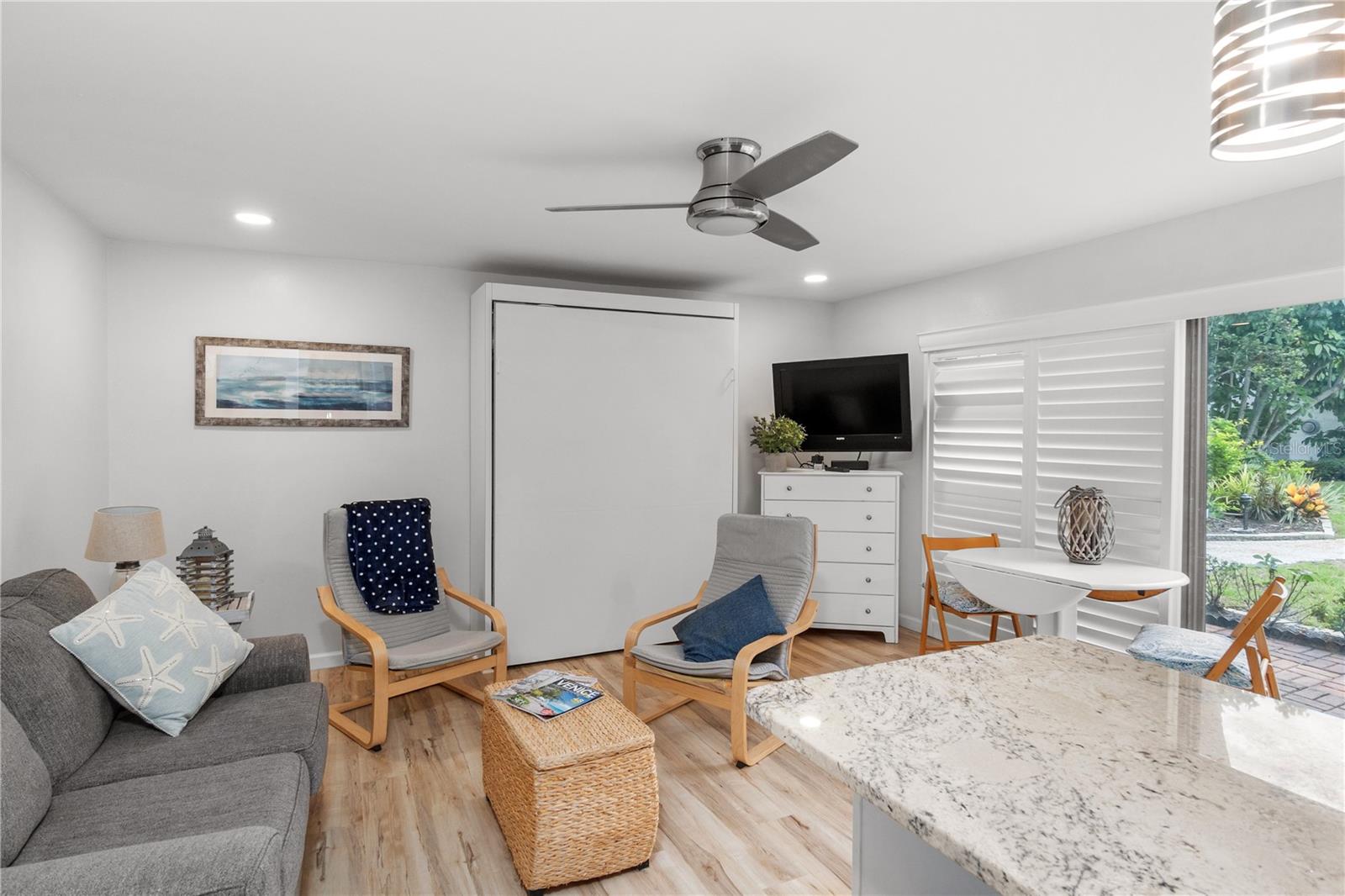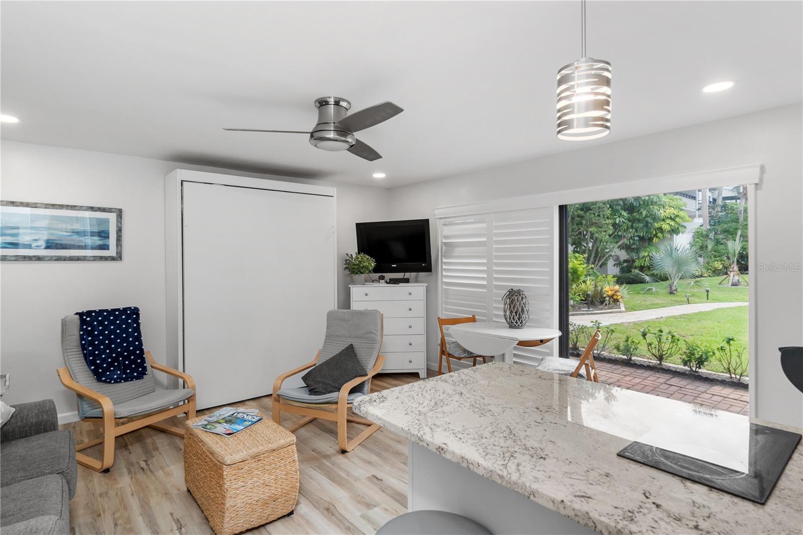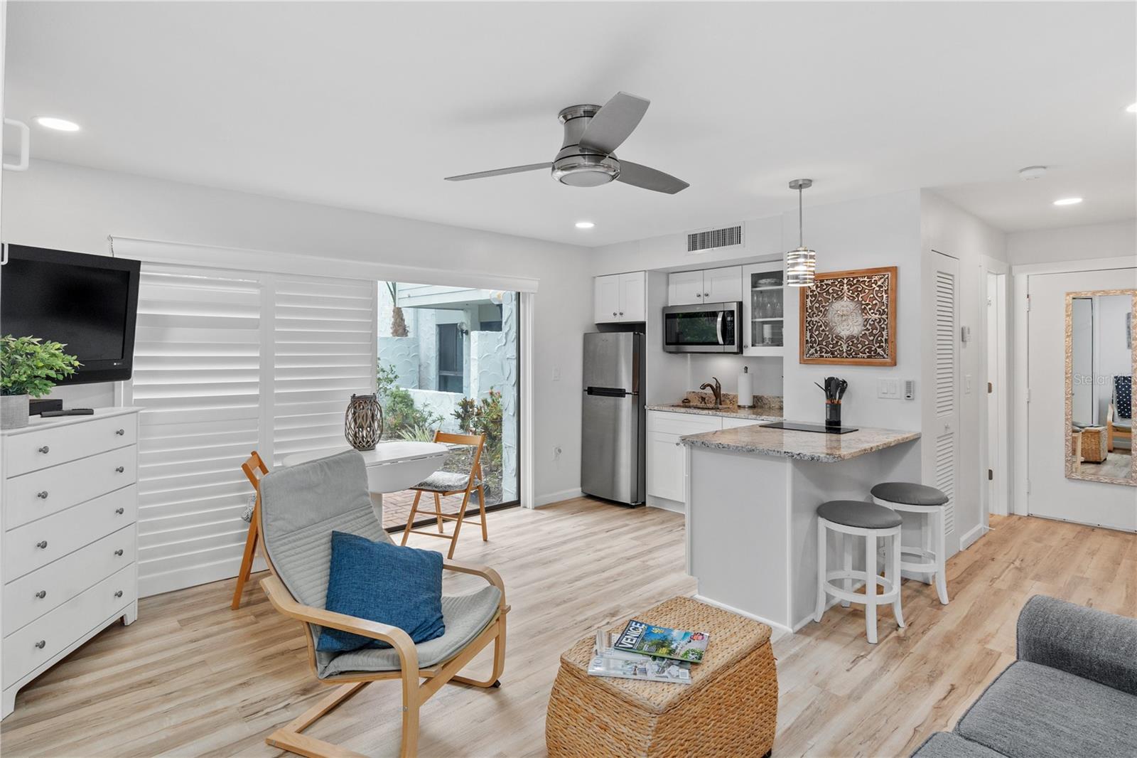 *Offering the ability to explore your financing options, obtain quick approval and get 1% off of your closing costs* Welcome to your perfect beach retreat! This charming studio condo has been fully updated to capture the ultimate beach vibe, featuring light-colored laminate flooring and sleek granite countertops. Enjoy the coastal ambiance with plantation-style shutters adorning the sliding glass doors. The bathroom is beautifully updated, and the condo boasts newer A/C and water heater systems. Located just steps away from Venice Beach, this property offers unparalleled access to sun, sand, and surf. The community features a heated pool and well-maintained sidewalks, surrounded by lush tropical plants, providing a serene atmosphere. Capture stunning sunsets over the Gulf of Mexico from the beach, just moments away. Enjoy the convenience of being close to downtown Venice and the popular Sharky's on the Pier. For boating enthusiasts, boat slips are available on the canal side for an annual additional fee. Additionally, Crow's Nest and Freedom Boat Club are just a short walk away. This condo comes fully furnished with a delightful beach aesthetic, making it an ideal vacation property or an excellent rental income opportunity. Don't miss out on this gem - your beach paradise awaits!