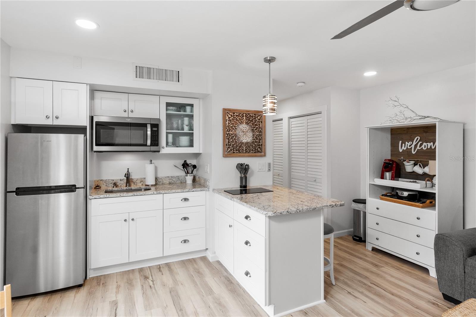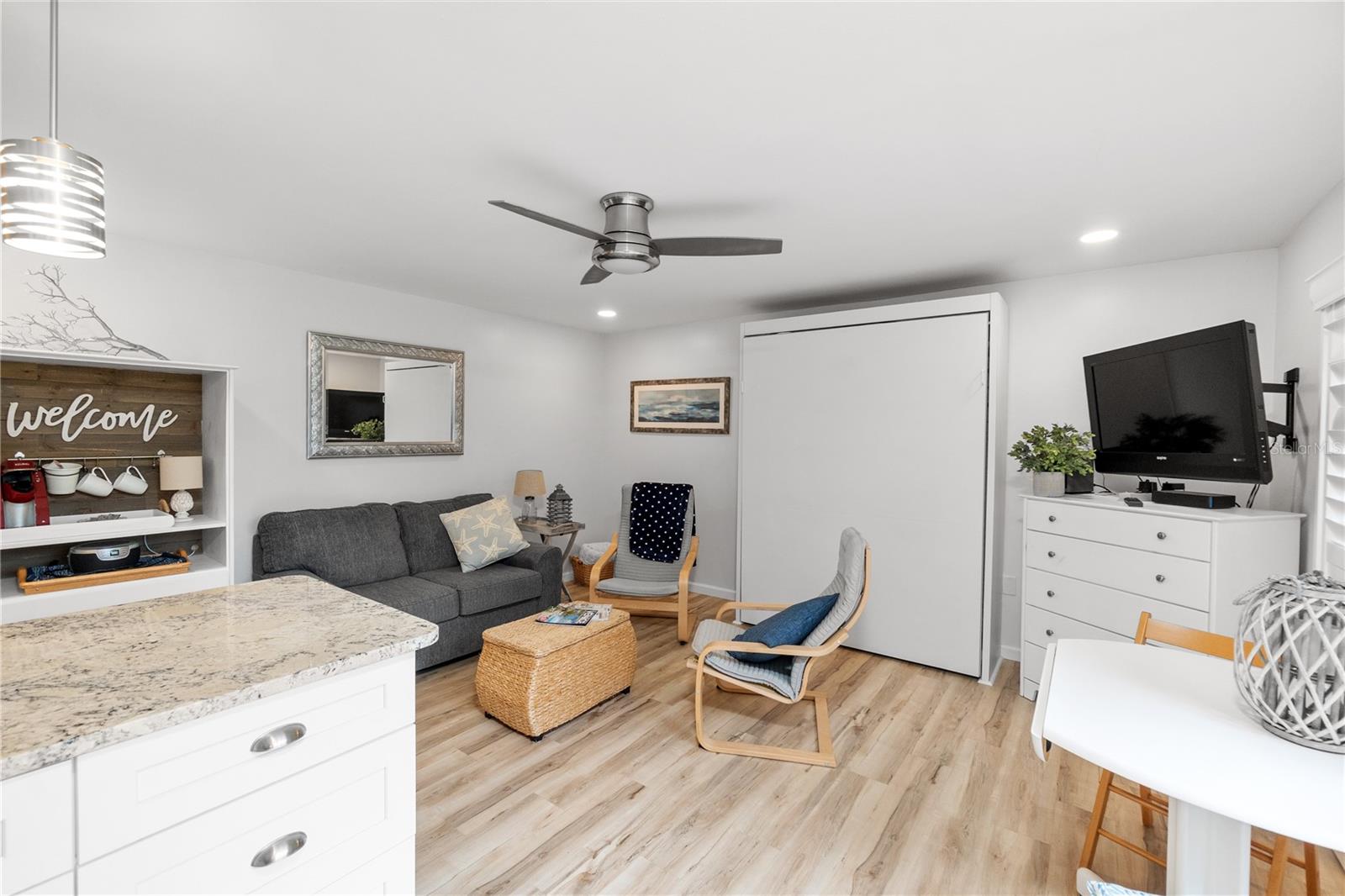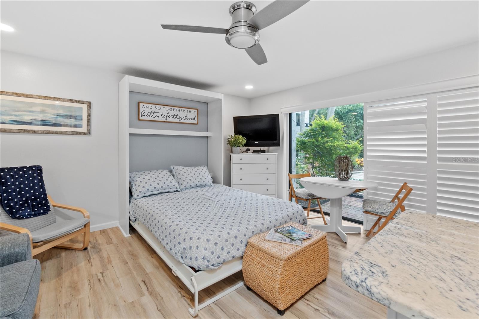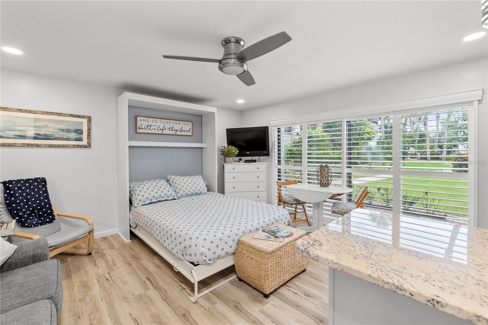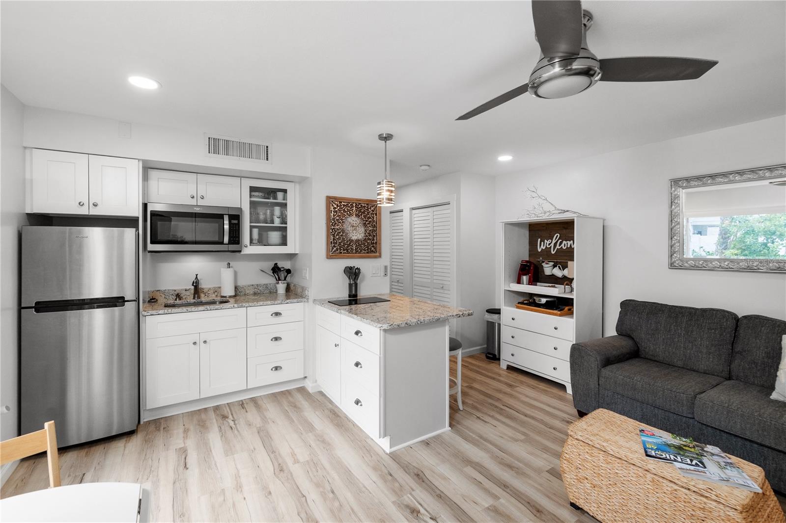 *Offering the ability to explore your financing options, obtain quick approval and get 1% off of your closing costs* Welcome to your perfect beach retreat! This charming studio condo has been fully updated to capture the ultimate beach vibe, featuring light-colored laminate flooring and sleek granite countertops. Enjoy the coastal ambiance with plantation-style shutters adorning the sliding glass doors. The bathroom is beautifully updated, and the condo boasts newer A/C and water heater systems. Located just steps away from Venice Beach, this property offers unparalleled access to sun, sand, and surf. The community features a heated pool and well-maintained sidewalks, surrounded by lush tropical plants, providing a serene atmosphere. Capture stunning sunsets over the Gulf of Mexico from the beach, just moments away. Enjoy the convenience of being close to downtown Venice and the popular Sharky's on the Pier. For boating enthusiasts, boat slips are available on the canal side for an annual additional fee. Additionally, Crow's Nest and Freedom Boat Club are just a short walk away. This condo comes fully furnished with a delightful beach aesthetic, making it an ideal vacation property or an excellent rental income opportunity. Don't miss out on this gem - your beach paradise awaits!