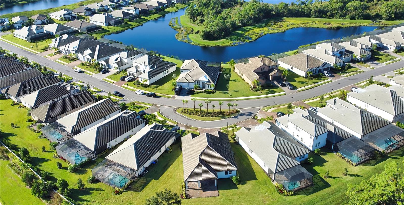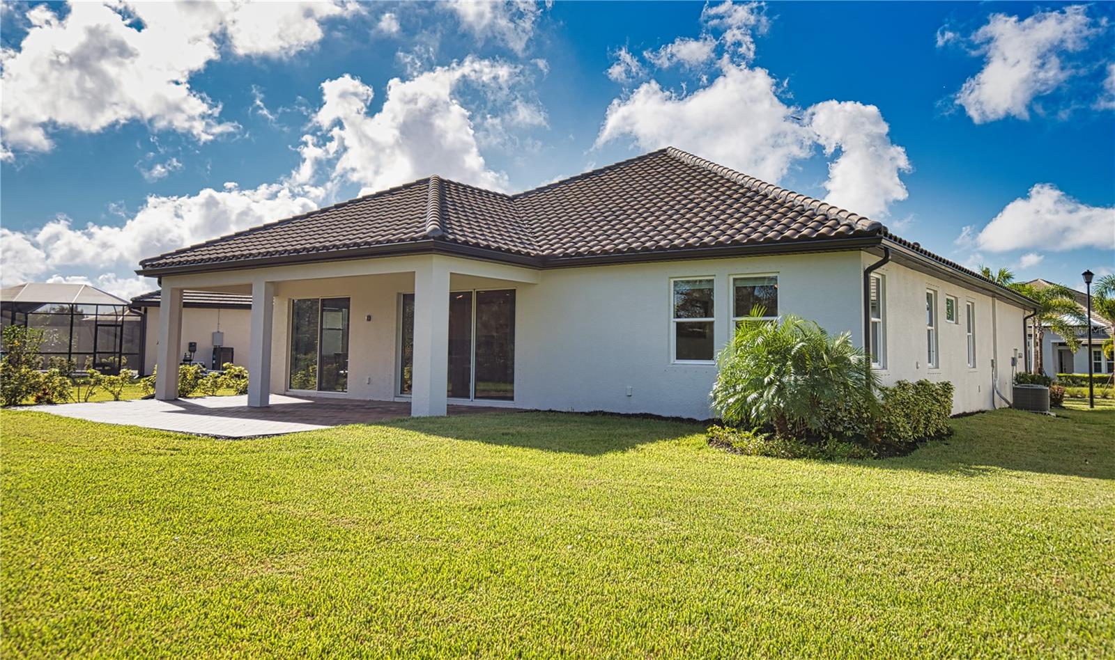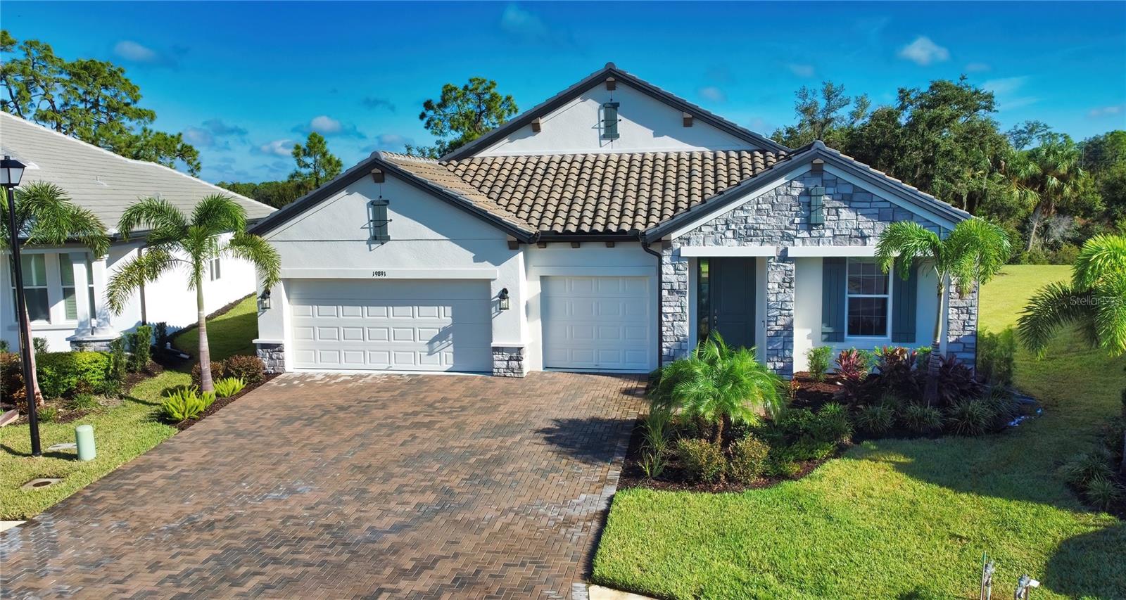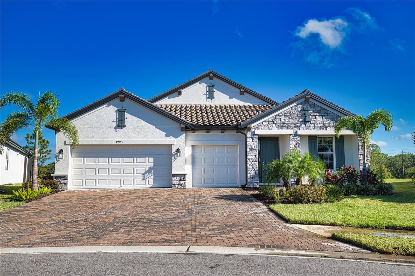 MI Homes Crystal Model, Elevation B, Tuscan/Mediterranean style, with tile roof! Barely lived in, less than two years old, and no mandatory flood insurance required! No storm damage! This stunner is a fortress; the shell of this home was built by Leola Construction! This Crystal model boasts 4 bedrooms/3 full bathrooms/3 car garage, with a full 3 lane driveway! This home has gorgeous upgraded tile flooring throughout (not LVP!) and absolutely no carpeting or thresholds! The upgraded white, gourmet kitchen has quartz countertops, a 7-and-a-half foot long island, with built-in pantry, pots and pans drawers, trash cabinet, and custom white, wood hood! New Reverse Osmosis system, water softener. Canned lighting, crown molding, and an extra set of sliders line the back wall in the combined kitchen/great room, leading out to the extended lanai, and paved patio measuring 29 x 22! Plenty of room for a pool on this 11,522 square foot lot! Set off the neighborhood road, behind an island of mature palm trees, this phenomenal private lot has no rear neighbors and is tucked away in the gorgeous Wellen Park neighborhood of Oasis! Oasis is a finished, gated and maintenance-free community, of approximately 140 single-family homes, with clubhouse, pool, and pickle ball court! Oasis has a private walking trail leading to the adjacent, gated neighborhood, and to Blue Heron Dog Park, which features 33 acres of green space, 2 miles of walking trails, and two separate dog parks! Prime location in Wellen Park, approximately ten miles from multiple gulf beaches, and across the street from the new Costco, medical facilities, Publix, Chase Bank, State College of Florida (Venice campus), Cool Today Park (the Altanta Braves Spring Training Facility) and of course downtown Wellen Park! Downtown Wellen Park offers multiple restaurants, trails, a splash pad, farmer's market, and outdoor concerts! Seller has manuals for the appliances, water softener, reverse osmosis, etc. Seller has extra floor tile, trim, roof tile, and backsplash tile. Seller has all paint color names and extra paint. Smart doorbell/garage door openers. Taexx bug-tubes built-in wall system! THIS BEAUTY HAS IT ALL!!