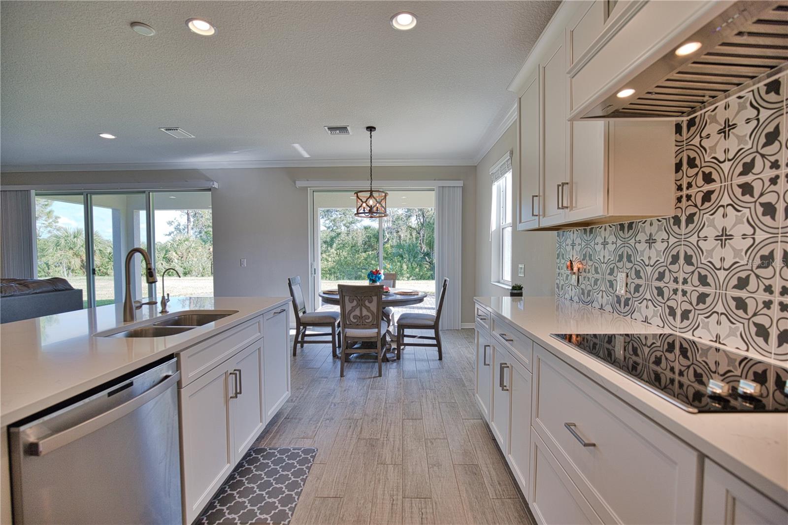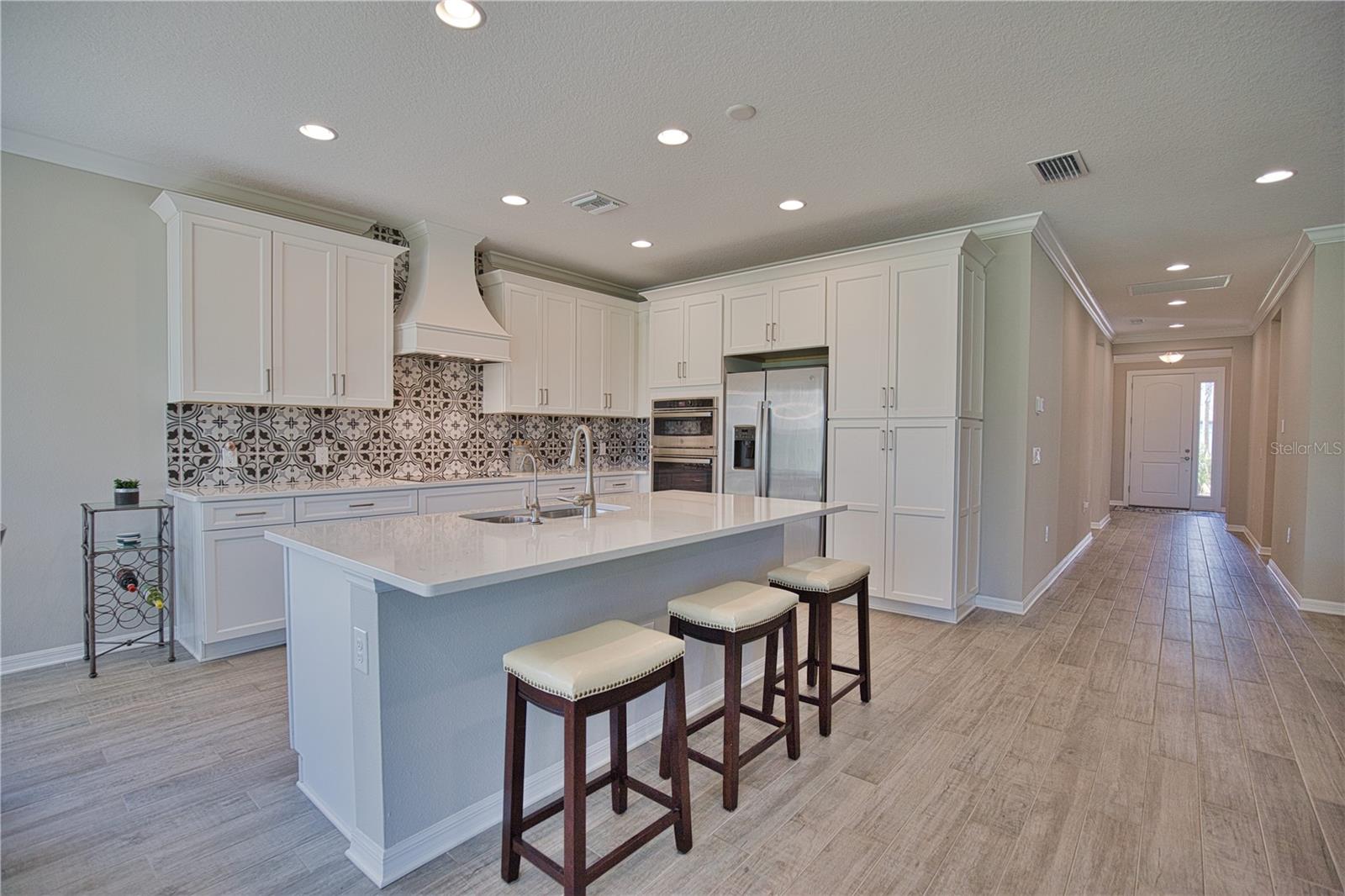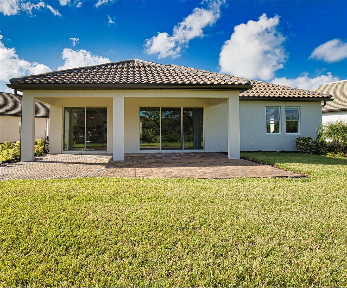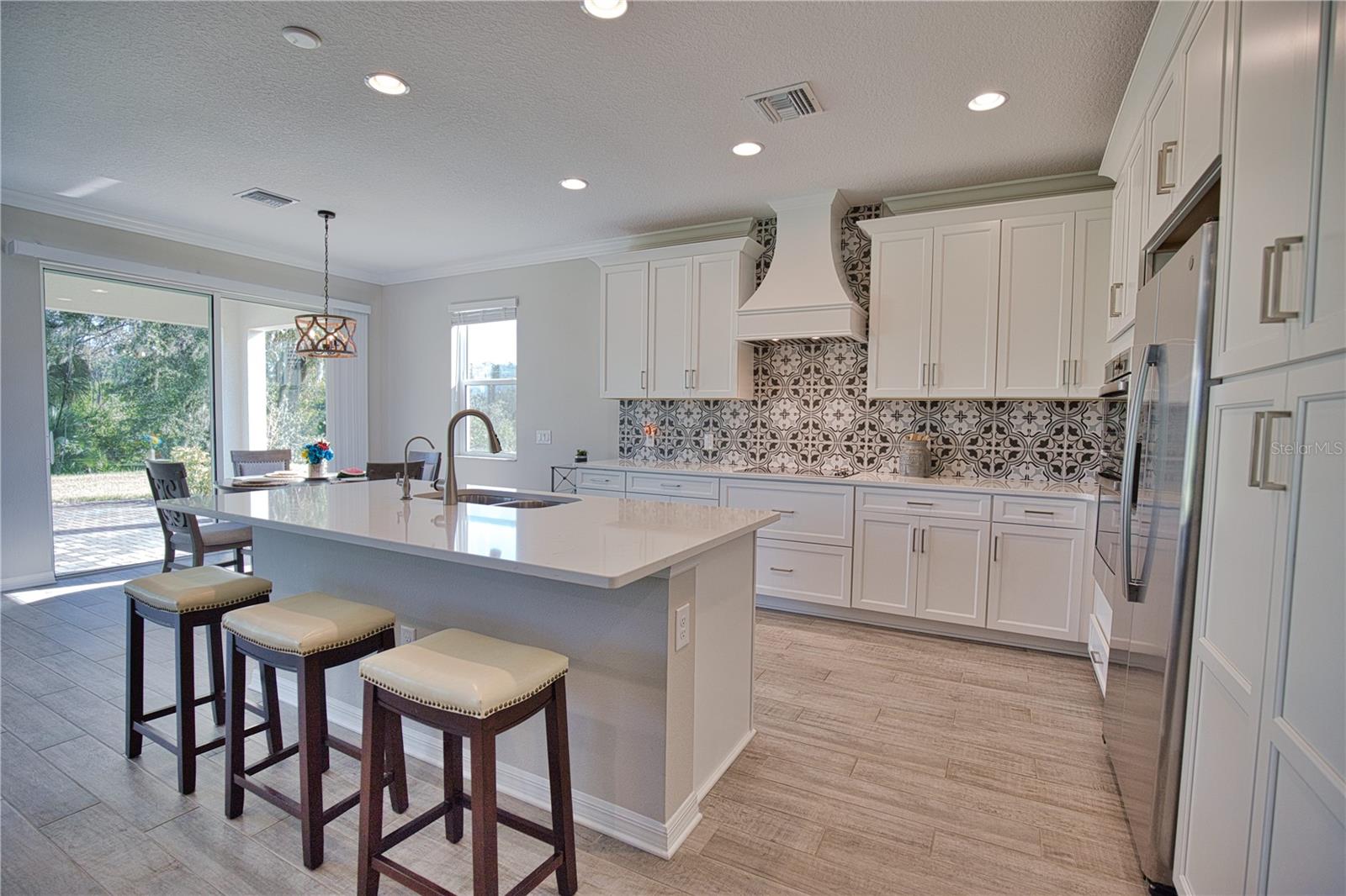 MI Homes Crystal Model, Elevation B, Tuscan/Mediterranean style, with tile roof! Barely lived in, less than two years old, and no mandatory flood insurance required! No storm damage! This stunner is a fortress; the shell of this home was built by Leola Construction! This Crystal model boasts 4 bedrooms/3 full bathrooms/3 car garage, with a full 3 lane driveway! This home has gorgeous upgraded tile flooring throughout (not LVP!) and absolutely no carpeting or thresholds! The upgraded white, gourmet kitchen has quartz countertops, a 7-and-a-half foot long island, with built-in pantry, pots and pans drawers, trash cabinet, and custom white, wood hood! New Reverse Osmosis system, water softener. Canned lighting, crown molding, and an extra set of sliders line the back wall in the combined kitchen/great room, leading out to the extended lanai, and paved patio measuring 29 x 22! Plenty of room for a pool on this 11,522 square foot lot! Set off the neighborhood road, behind an island of mature palm trees, this phenomenal private lot has no rear neighbors and is tucked away in the gorgeous Wellen Park neighborhood of Oasis! Oasis is a finished, gated and maintenance-free community, of approximately 140 single-family homes, with clubhouse, pool, and pickle ball court! Oasis has a private walking trail leading to the adjacent, gated neighborhood, and to Blue Heron Dog Park, which features 33 acres of green space, 2 miles of walking trails, and two separate dog parks! Prime location in Wellen Park, approximately ten miles from multiple gulf beaches, and across the street from the new Costco, medical facilities, Publix, Chase Bank, State College of Florida (Venice campus), Cool Today Park (the Altanta Braves Spring Training Facility) and of course downtown Wellen Park! Downtown Wellen Park offers multiple restaurants, trails, a splash pad, farmer's market, and outdoor concerts! Seller has manuals for the appliances, water softener, reverse osmosis, etc. Seller has extra floor tile, trim, roof tile, and backsplash tile. Seller has all paint color names and extra paint. Smart doorbell/garage door openers. Taexx bug-tubes built-in wall system! THIS BEAUTY HAS IT ALL!!
