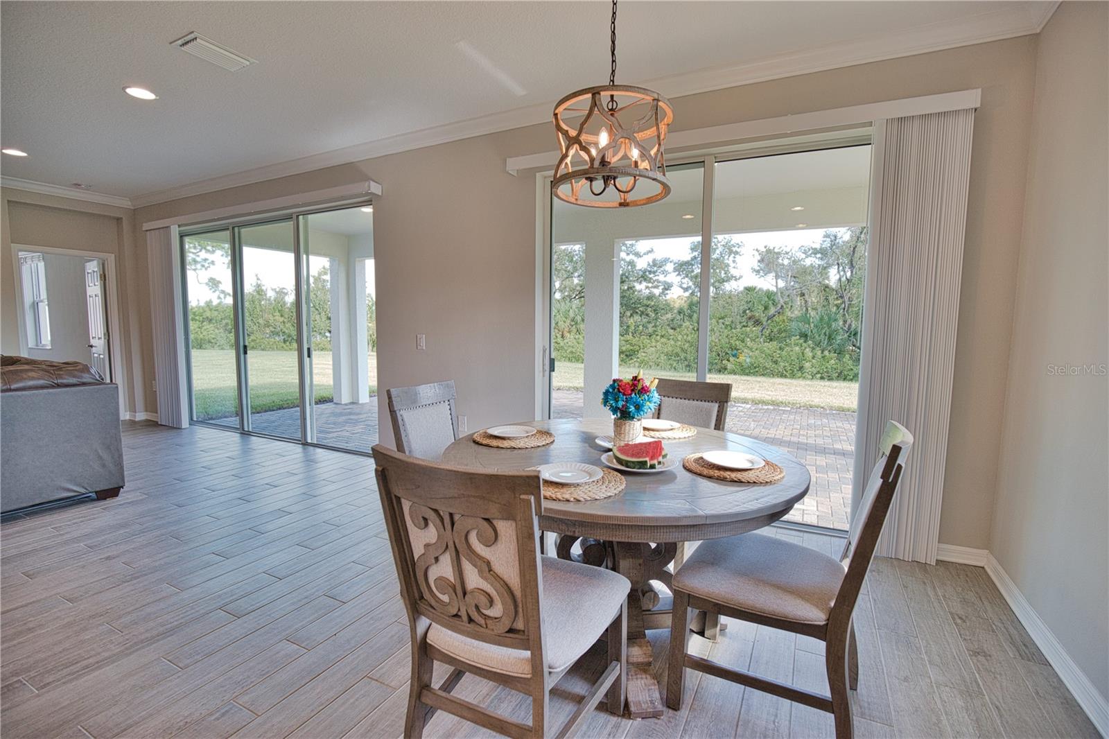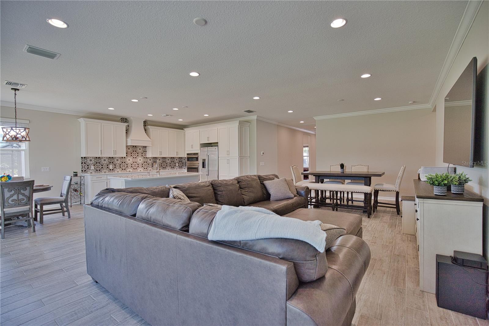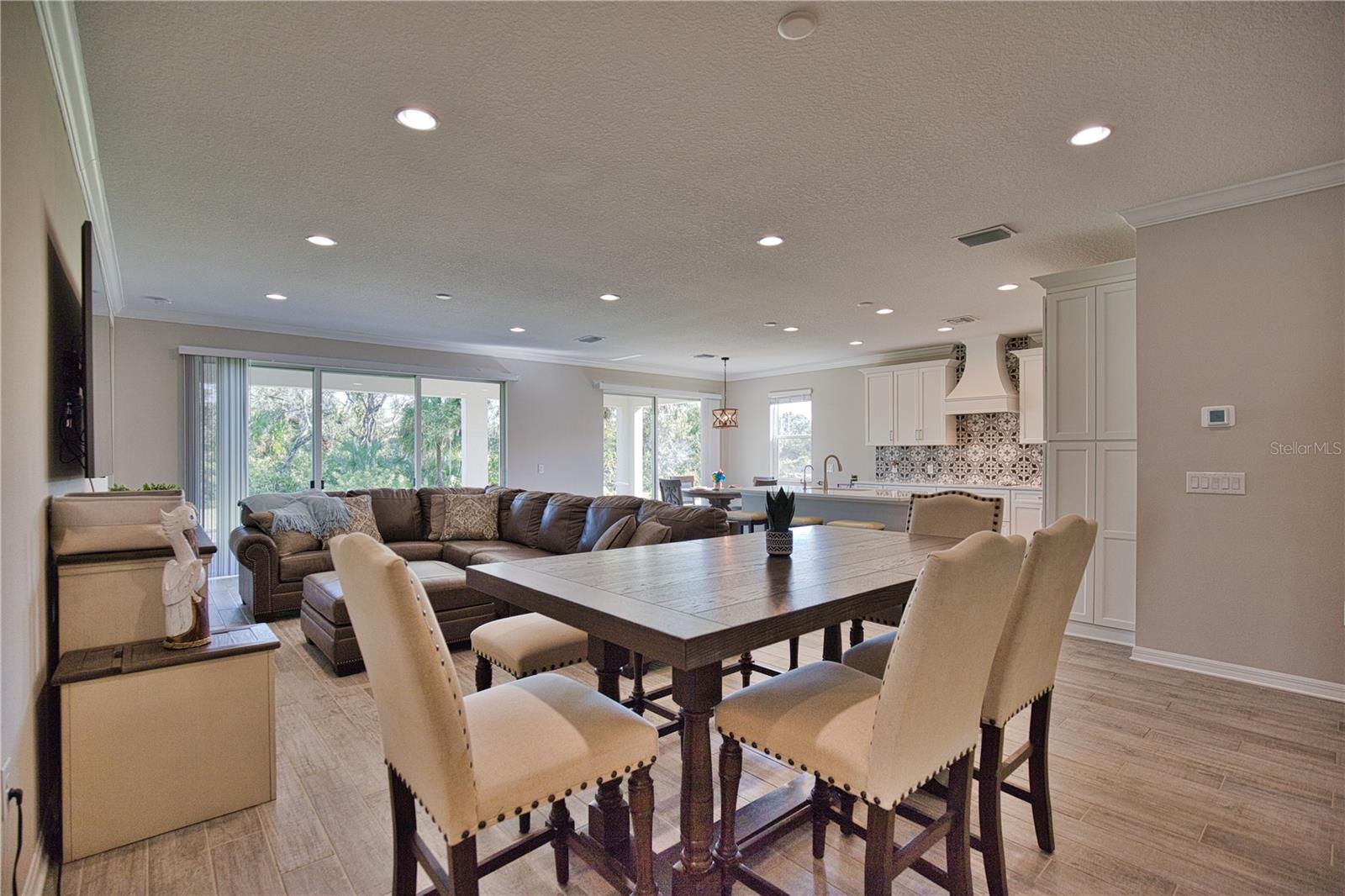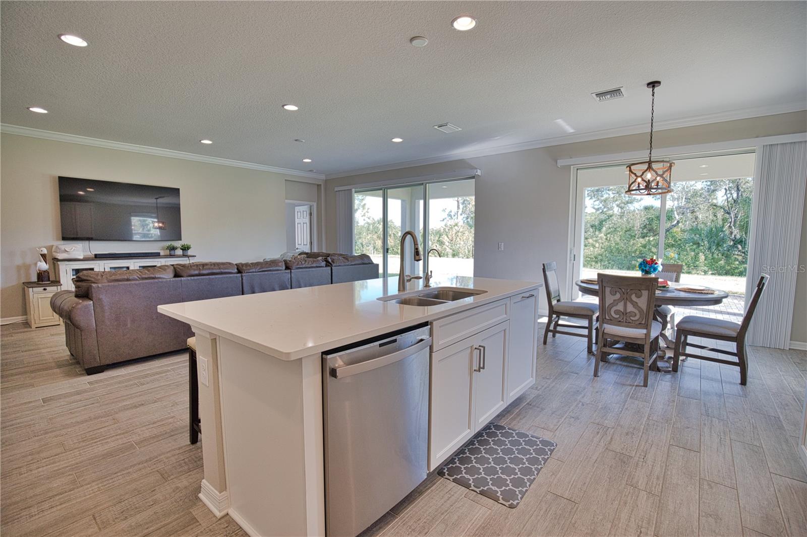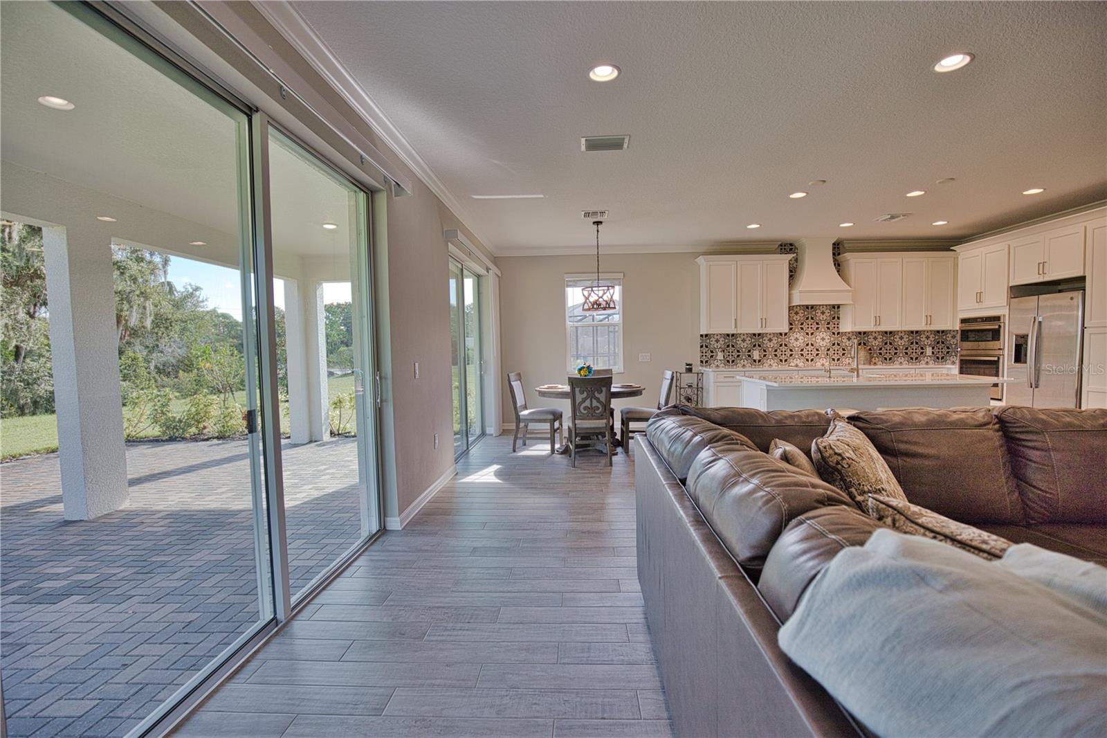 MI Homes Crystal Model, Elevation B, Tuscan/Mediterranean style, with tile roof! Barely lived in, less than two years old, and no mandatory flood insurance required! No storm damage! This stunner is a fortress; the shell of this home was built by Leola Construction! This Crystal model boasts 4 bedrooms/3 full bathrooms/3 car garage, with a full 3 lane driveway! This home has gorgeous upgraded tile flooring throughout (not LVP!) and absolutely no carpeting or thresholds! The upgraded white, gourmet kitchen has quartz countertops, a 7-and-a-half foot long island, with built-in pantry, pots and pans drawers, trash cabinet, and custom white, wood hood! New Reverse Osmosis system, water softener. Canned lighting, crown molding, and an extra set of sliders line the back wall in the combined kitchen/great room, leading out to the extended lanai, and paved patio measuring 29 x 22! Plenty of room for a pool on this 11,522 square foot lot! Set off the neighborhood road, behind an island of mature palm trees, this phenomenal private lot has no rear neighbors and is tucked away in the gorgeous Wellen Park neighborhood of Oasis! Oasis is a finished, gated and maintenance-free community, of approximately 140 single-family homes, with clubhouse, pool, and pickle ball court! Oasis has a private walking trail leading to the adjacent, gated neighborhood, and to Blue Heron Dog Park, which features 33 acres of green space, 2 miles of walking trails, and two separate dog parks! Prime location in Wellen Park, approximately ten miles from multiple gulf beaches, and across the street from the new Costco, medical facilities, Publix, Chase Bank, State College of Florida (Venice campus), Cool Today Park (the Altanta Braves Spring Training Facility) and of course downtown Wellen Park! Downtown Wellen Park offers multiple restaurants, trails, a splash pad, farmer's market, and outdoor concerts! Seller has manuals for the appliances, water softener, reverse osmosis, etc. Seller has extra floor tile, trim, roof tile, and backsplash tile. Seller has all paint color names and extra paint. Smart doorbell/garage door openers. Taexx bug-tubes built-in wall system! THIS BEAUTY HAS IT ALL!!