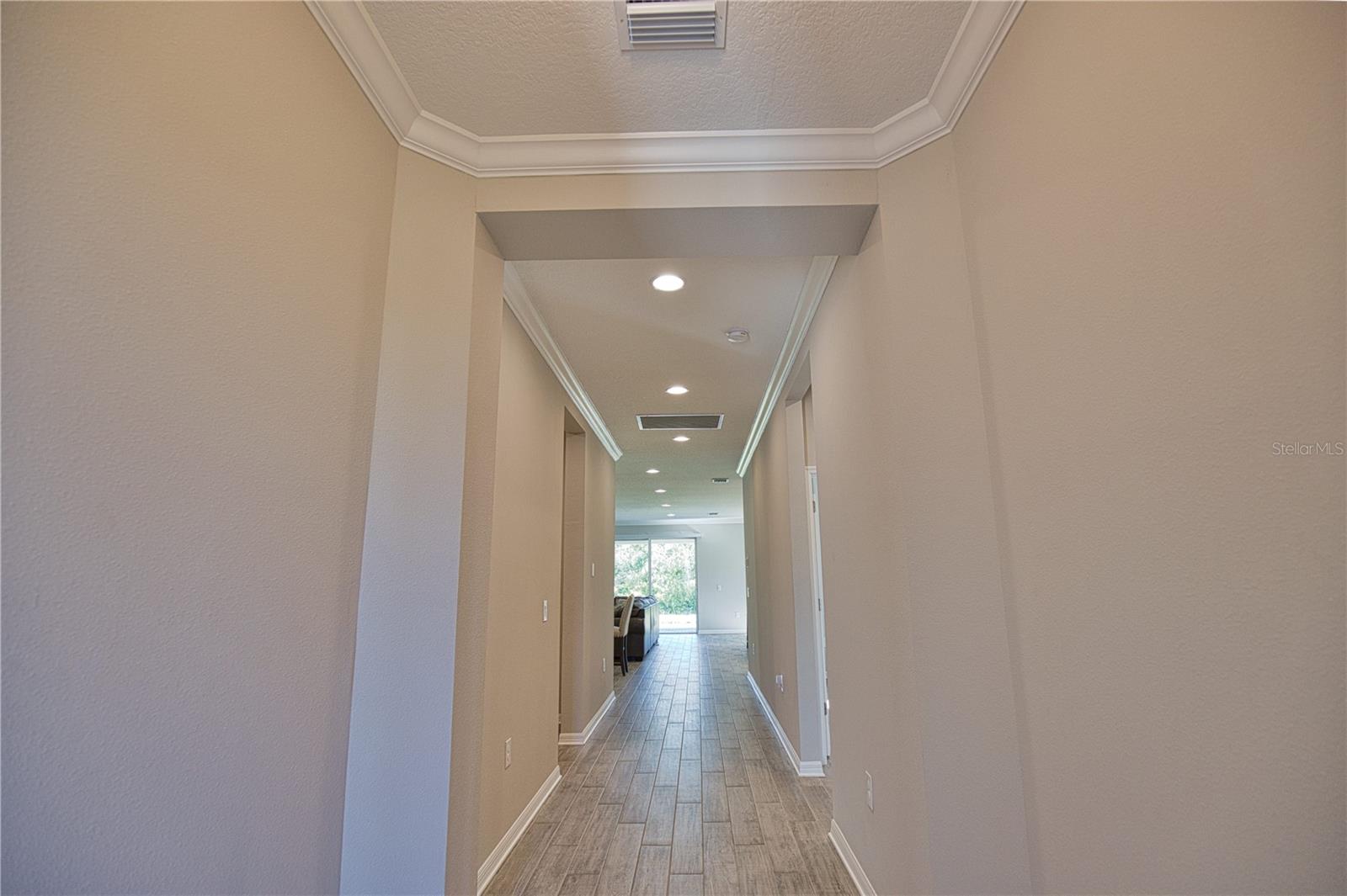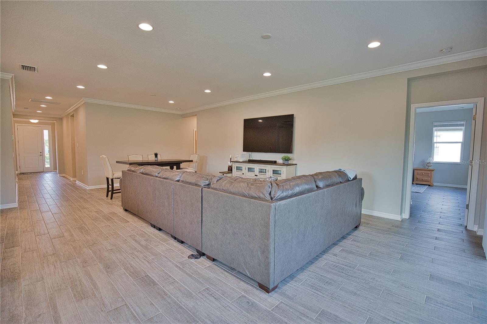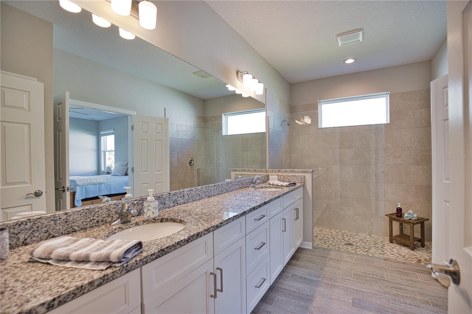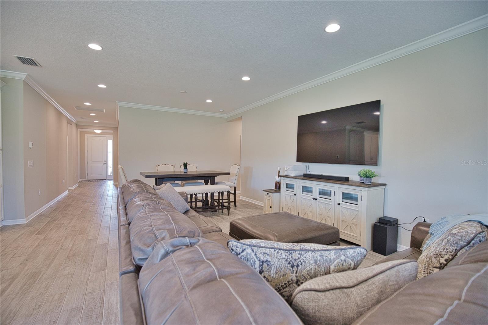 MI Homes Crystal Model, Elevation B, Tuscan/Mediterranean style, with tile roof! Barely lived in, less than two years old, and no mandatory flood insurance required! No storm damage! This stunner is a fortress; the shell of this home was built by Leola Construction! This Crystal model boasts 4 bedrooms/3 full bathrooms/3 car garage, with a full 3 lane driveway! This home has gorgeous upgraded tile flooring throughout (not LVP!) and absolutely no carpeting or thresholds! The upgraded white, gourmet kitchen has quartz countertops, a 7-and-a-half foot long island, with built-in pantry, pots and pans drawers, trash cabinet, and custom white, wood hood! New Reverse Osmosis system, water softener. Canned lighting, crown molding, and an extra set of sliders line the back wall in the combined kitchen/great room, leading out to the extended lanai, and paved patio measuring 29 x 22! Plenty of room for a pool on this 11,522 square foot lot! Set off the neighborhood road, behind an island of mature palm trees, this phenomenal private lot has no rear neighbors and is tucked away in the gorgeous Wellen Park neighborhood of Oasis! Oasis is a finished, gated and maintenance-free community, of approximately 140 single-family homes, with clubhouse, pool, and pickle ball court! Oasis has a private walking trail leading to the adjacent, gated neighborhood, and to Blue Heron Dog Park, which features 33 acres of green space, 2 miles of walking trails, and two separate dog parks! Prime location in Wellen Park, approximately ten miles from multiple gulf beaches, and across the street from the new Costco, medical facilities, Publix, Chase Bank, State College of Florida (Venice campus), Cool Today Park (the Altanta Braves Spring Training Facility) and of course downtown Wellen Park! Downtown Wellen Park offers multiple restaurants, trails, a splash pad, farmer's market, and outdoor concerts! Seller has manuals for the appliances, water softener, reverse osmosis, etc. Seller has extra floor tile, trim, roof tile, and backsplash tile. Seller has all paint color names and extra paint. Smart doorbell/garage door openers. Taexx bug-tubes built-in wall system! THIS BEAUTY HAS IT ALL!!