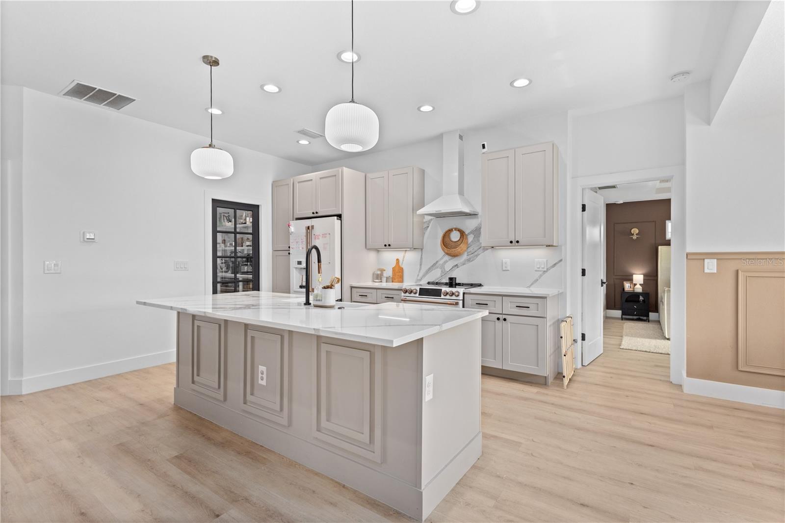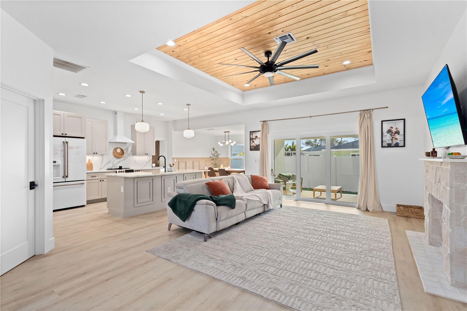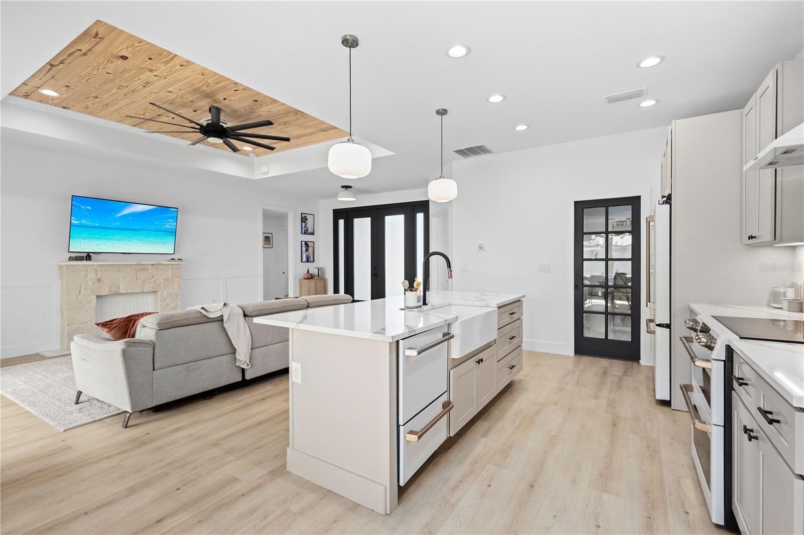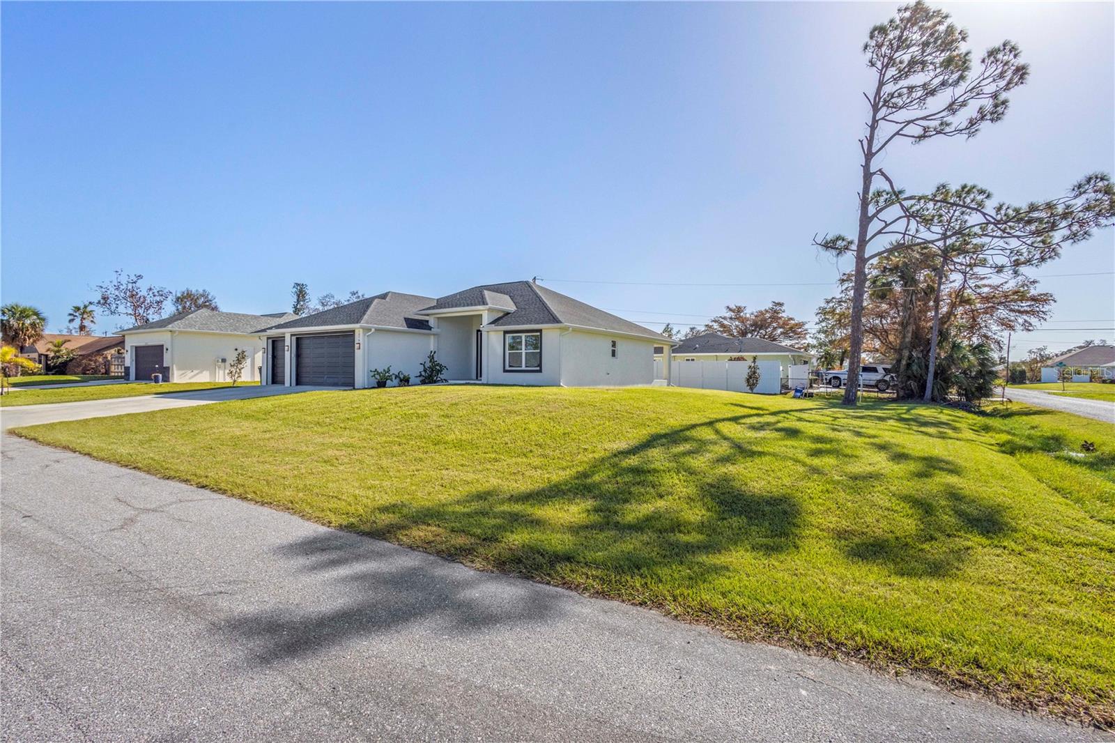 JUST REDUCED! Discover your dream home in this impeccably designed split-floor plan residence by Blue Water Custom Homes, featuring 3 spacious bedrooms and 2 elegant bathrooms, along with a 3-car garage. Situated on an expansive 12,000 sq. ft. corner lot in picturesque South Venice, this home places you just minutes from stunning Gulf beaches. As you step through the inviting double front doors, you’ll be welcomed by soaring 10-FOOT CEILINGS adorned with a tasteful wooden tongue and groove TRAY CEILING, a captivating stone decorative fireplace, and elegant 5 ¼ INCH BASEBOARDS complemented by LUXURY VINYL PLANK FLOORING. This flooring flows seamlessly through the main living areas and bedrooms, creating an inviting and airy atmosphere. The heart of this home is undoubtedly the stunning kitchen, featuring beautiful WOODEN CABINETS and a magnificent kitchen island with QUARTZ countertops. Enjoy top-of-the-line amenities, including a DOUBLE-DRAWER DISHWASHER, CONVECTION DOUBLE-OVEN RANGE, SOFT-CLOSE DRAWERS AND CABINETS, a vented hood, apron sink, and a GENEROUS PANTRY with ample shelving. This kitchen effortlessly combines functionality with style. The laundry room continues the home’s elegant theme, offering wooden cabinetry and a QUARTZ-topped laundry sink. The owner’s suite elevates relaxation with its natural wood tongue and groove TRAY CEILING, a transom window, and a decorative wall. A hallway leads to TWO generous walk-in closets, culminating in a luxurious bathroom suite with a DOUBLE-ENTRY oversized shower, a standalone bathtub, and dual split wooden vanities featuring QUARTZ countertops. Guests will enjoy equally impressive accommodations, with a guest bathroom that echoes the home’s sophisticated design. Two additional well-appointed bedrooms provide ample comfort and privacy for family or visitors alike. For peace of mind, the property is equipped with a WHOLE HOUSE REVERSE OSMOSIS WATER SYSTEM and HURRICANE IMPACT GLASS WINDOWS. Embrace the lifestyle everyone dreams of—live mere MINUTES from Gulf beaches, shops, restaurants, and golf courses. Join the South Venice Civic Association for a modest yearly fee and gain access to exclusive amenities like a private beach, boat launch, and recreational activities. This is your opportunity to secure a home in a prime location that truly offers the best of coastal living. Don’t miss out on this incredible opportunity!