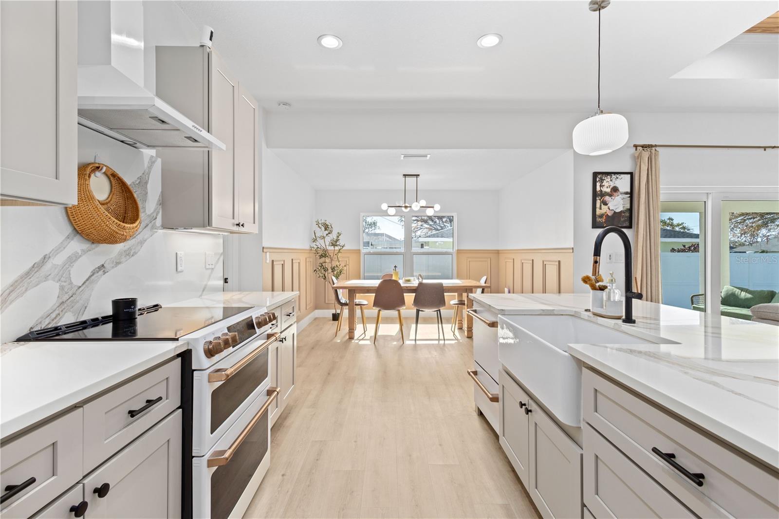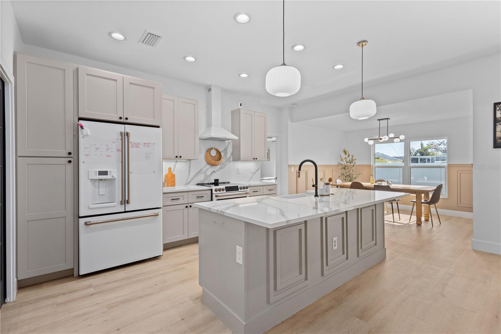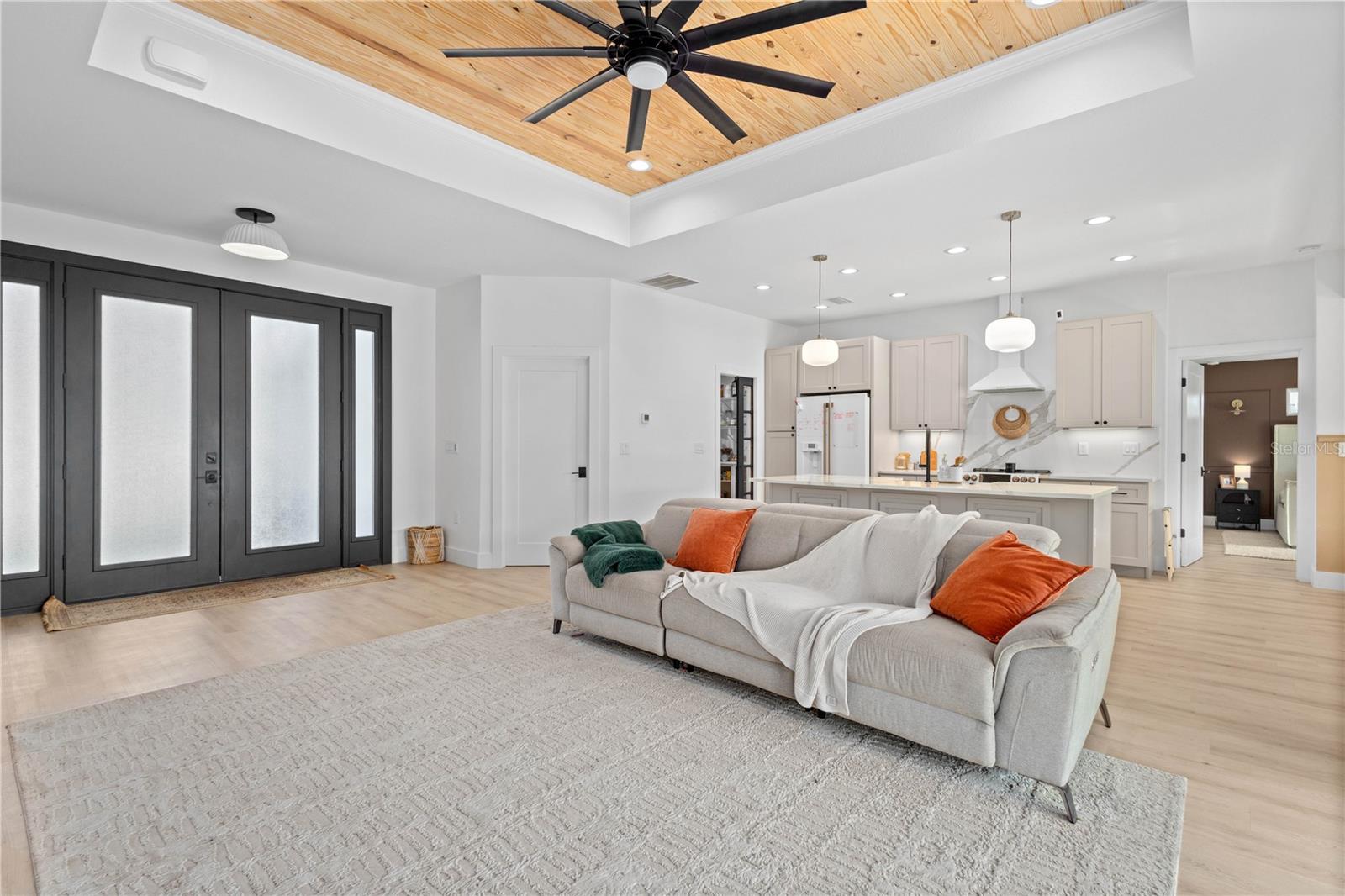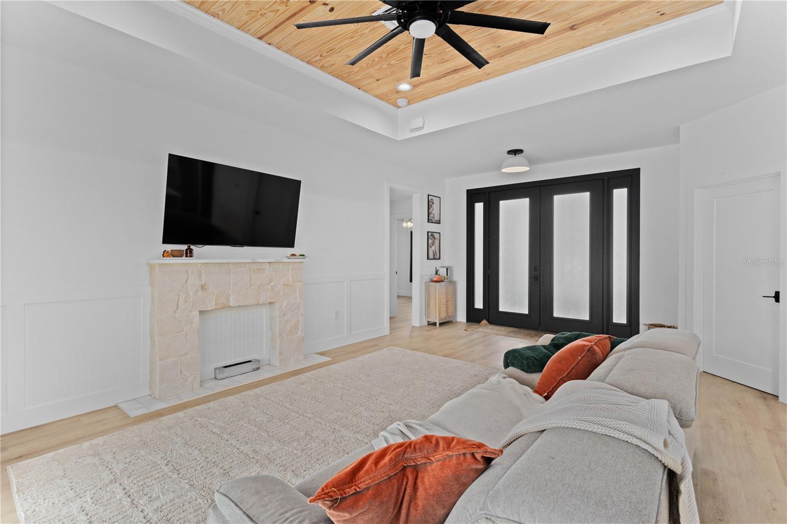 JUST REDUCED! Discover your dream home in this impeccably designed split-floor plan residence by Blue Water Custom Homes, featuring 3 spacious bedrooms and 2 elegant bathrooms, along with a 3-car garage. Situated on an expansive 12,000 sq. ft. corner lot in picturesque South Venice, this home places you just minutes from stunning Gulf beaches. As you step through the inviting double front doors, you’ll be welcomed by soaring 10-FOOT CEILINGS adorned with a tasteful wooden tongue and groove TRAY CEILING, a captivating stone decorative fireplace, and elegant 5 ¼ INCH BASEBOARDS complemented by LUXURY VINYL PLANK FLOORING. This flooring flows seamlessly through the main living areas and bedrooms, creating an inviting and airy atmosphere. The heart of this home is undoubtedly the stunning kitchen, featuring beautiful WOODEN CABINETS and a magnificent kitchen island with QUARTZ countertops. Enjoy top-of-the-line amenities, including a DOUBLE-DRAWER DISHWASHER, CONVECTION DOUBLE-OVEN RANGE, SOFT-CLOSE DRAWERS AND CABINETS, a vented hood, apron sink, and a GENEROUS PANTRY with ample shelving. This kitchen effortlessly combines functionality with style. The laundry room continues the home’s elegant theme, offering wooden cabinetry and a QUARTZ-topped laundry sink. The owner’s suite elevates relaxation with its natural wood tongue and groove TRAY CEILING, a transom window, and a decorative wall. A hallway leads to TWO generous walk-in closets, culminating in a luxurious bathroom suite with a DOUBLE-ENTRY oversized shower, a standalone bathtub, and dual split wooden vanities featuring QUARTZ countertops. Guests will enjoy equally impressive accommodations, with a guest bathroom that echoes the home’s sophisticated design. Two additional well-appointed bedrooms provide ample comfort and privacy for family or visitors alike. For peace of mind, the property is equipped with a WHOLE HOUSE REVERSE OSMOSIS WATER SYSTEM and HURRICANE IMPACT GLASS WINDOWS. Embrace the lifestyle everyone dreams of—live mere MINUTES from Gulf beaches, shops, restaurants, and golf courses. Join the South Venice Civic Association for a modest yearly fee and gain access to exclusive amenities like a private beach, boat launch, and recreational activities. This is your opportunity to secure a home in a prime location that truly offers the best of coastal living. Don’t miss out on this incredible opportunity!