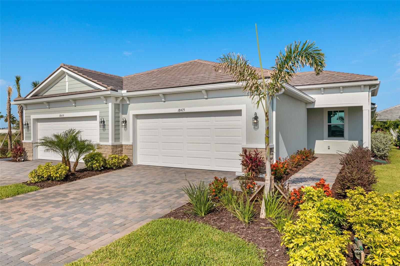The Maya Coastal Villa is a 2bd/2bath with a flex room that offers 1,574 sq. ft. This paired villa has an open-concept kitchen that is the center of the layout next to the dining area and Great Room. The laundry room is also adjacent, offering maximum convenience. The covered lanai offers outdoor living space for fresh-air dining, gathering or just relaxing – taking advantage of the year-round amazing Florida weather. There’s also a flex room right off the foyer, offering another versatile living space. Tucked at the back of the home for added privacy is the owner's suite with a relaxing bath and large walk-in closet. The two car garage has a spacious overhead storage area for your needs. . This home has impact windows and doors, tile roof, and paver driveway. This Smart Home includes an Ecobee Smart Thermostat - Amazon Alexa compatible, Video Doorbell - with app, video recording and 2-way communication and ClareOne Touchscreen Panel! Wellen Park's only 55+ Community featuring future Amenity Center (21,000 sq. ft.) with 8 Pickle Ball Courts, 1 Stadium Court, 2 Pools (1 lap pool/1 resort style pool), State of the Art Fitness Facility, Bar and Café overlooking pools, dog park, Outdoor Exercise Lawn, Hot Tub, Full Time Lifestyle Director and so much more! Just minutes from beaches, Downtown Wellen Park, restaurants and shopping via golf cart/bikes or walking! Photos, renderings and plans are for illustrative purposes only and should never be relied upon and may vary from the actual home. Pricing, dimensions and features can change at any time without notice or obligation. The photos are from a furnished model home and not the home offered for sale.