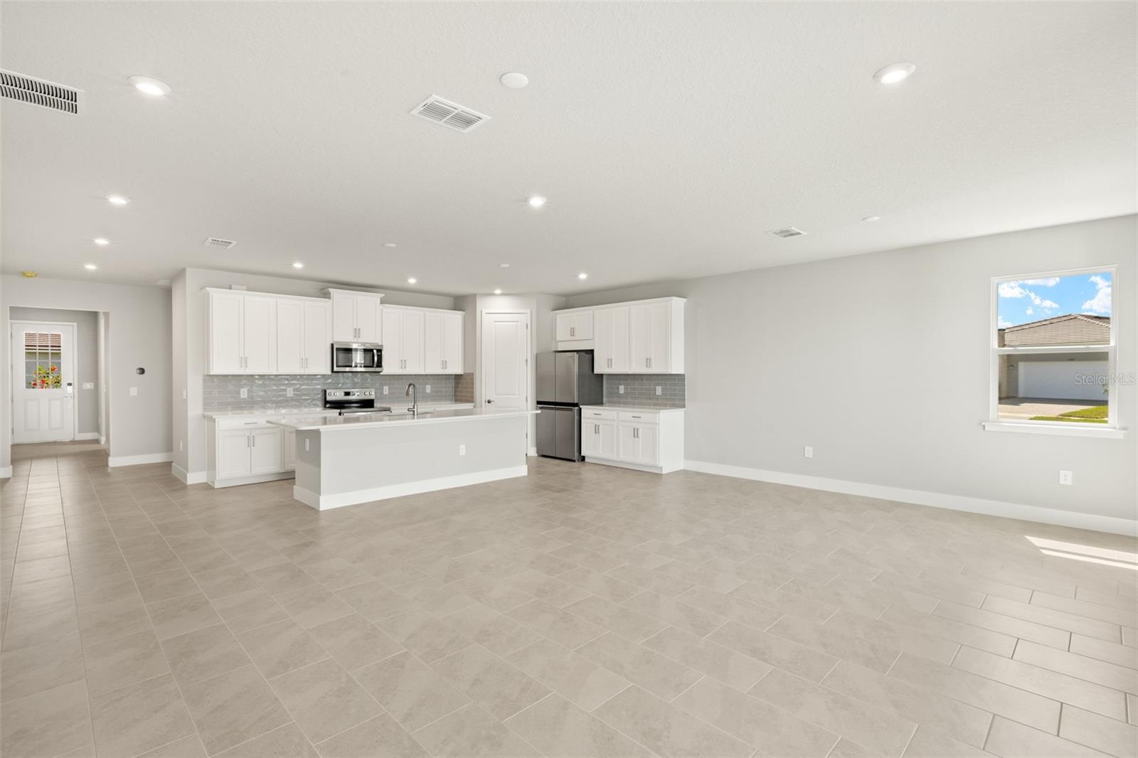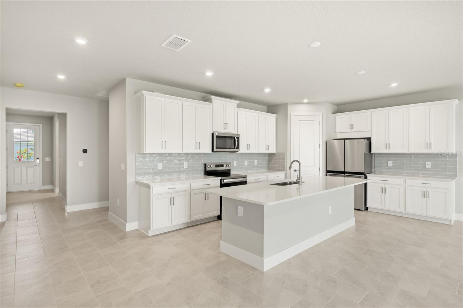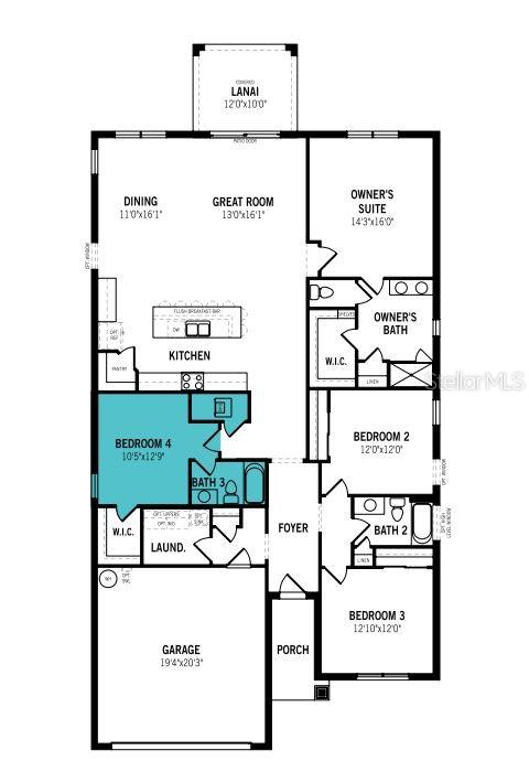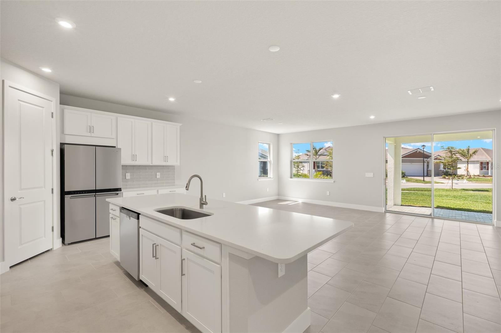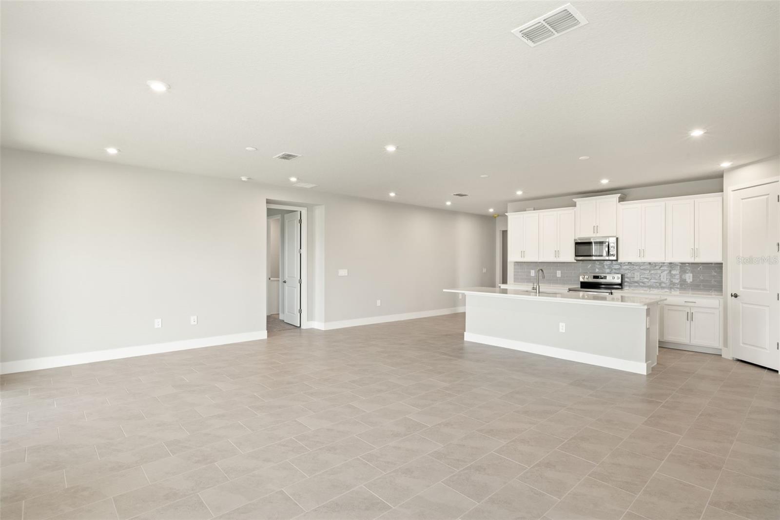 Abundant natural light and inspiring, modern style are evident throughout the 2,209 sq. ft. Gateway floorplan. The bedrooms, including a spacious and private owner’s suite, are located on one side of the foyer and entry hall, with the remainder of the layout devoted to the impressive, open-concept living area and mixed-use flex room. Entertaining guests — as well as routine living — is a pleasure in this home. Luxury vinyl plank flooring, 42" upper cabinets painted Linen, upgraded quartz countertops in New Carrara Marmi, light gray and tan subway tile backsplash in the kitchen which also features an island with breakfast bar. Owner's suite is situated on the back of the home for privacy from the other 3 bedrooms. It has an en suite with walk-in closet, glass enclosed shower and dual sink raised vanity. Bedrooms 2&3 share a full hallway bath and bedroom 4 is on the other side of the foyer with a full bath. Lanai is accessible from the Great Room through a glass sliders and offers a great space to enjoy the warm Florida breezes Photos, renderings and plans are for illustrative purposes only and should never be relied upon and may vary from the actual home. Pricing, dimensions and features can change at any time without notice or obligation.