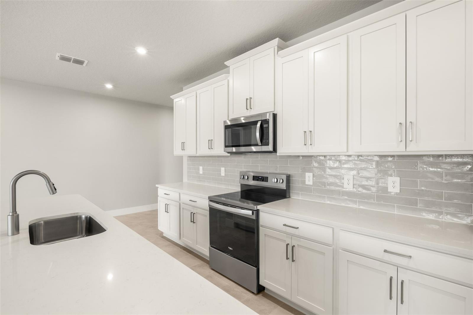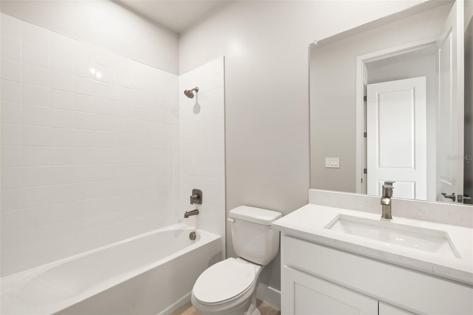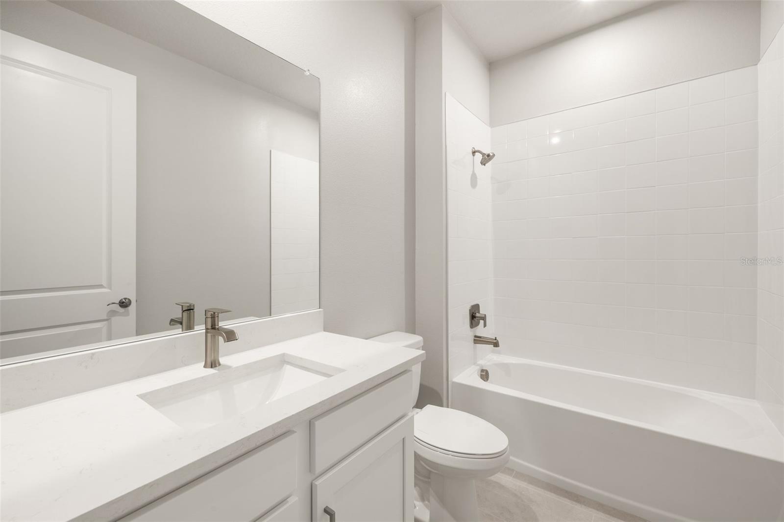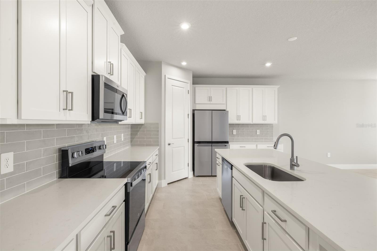 Abundant natural light and inspiring, modern style are evident throughout the 2,209 sq. ft. Gateway floorplan. The bedrooms, including a spacious and private owner’s suite, are located on one side of the foyer and entry hall, with the remainder of the layout devoted to the impressive, open-concept living area and mixed-use flex room. Entertaining guests — as well as routine living — is a pleasure in this home. Luxury vinyl plank flooring, 42" upper cabinets painted Linen, upgraded quartz countertops in New Carrara Marmi, light gray and tan subway tile backsplash in the kitchen which also features an island with breakfast bar. Owner's suite is situated on the back of the home for privacy from the other 3 bedrooms. It has an en suite with walk-in closet, glass enclosed shower and dual sink raised vanity. Bedrooms 2&3 share a full hallway bath and bedroom 4 is on the other side of the foyer with a full bath. Lanai is accessible from the Great Room through a glass sliders and offers a great space to enjoy the warm Florida breezes Photos, renderings and plans are for illustrative purposes only and should never be relied upon and may vary from the actual home. Pricing, dimensions and features can change at any time without notice or obligation.
