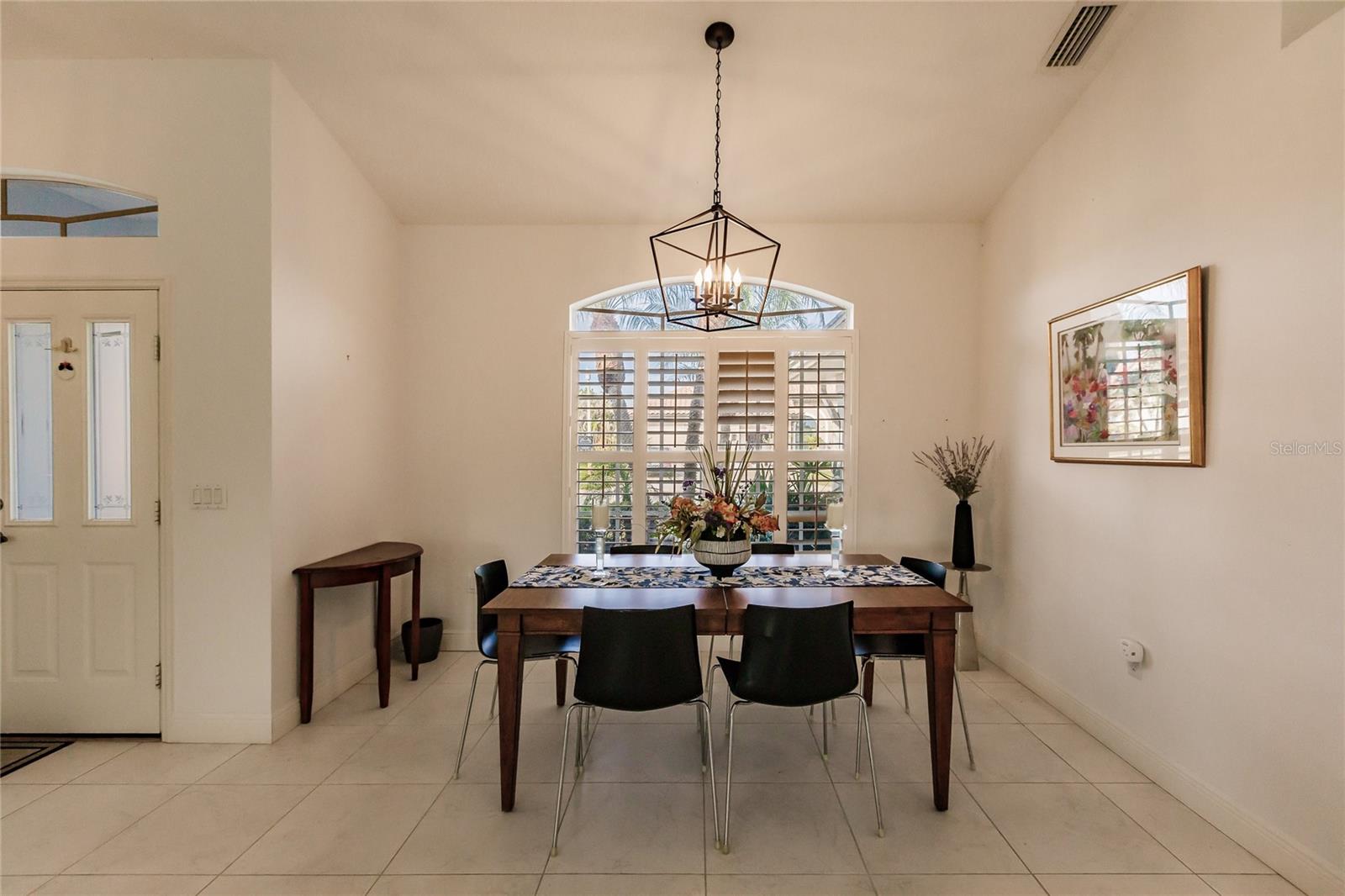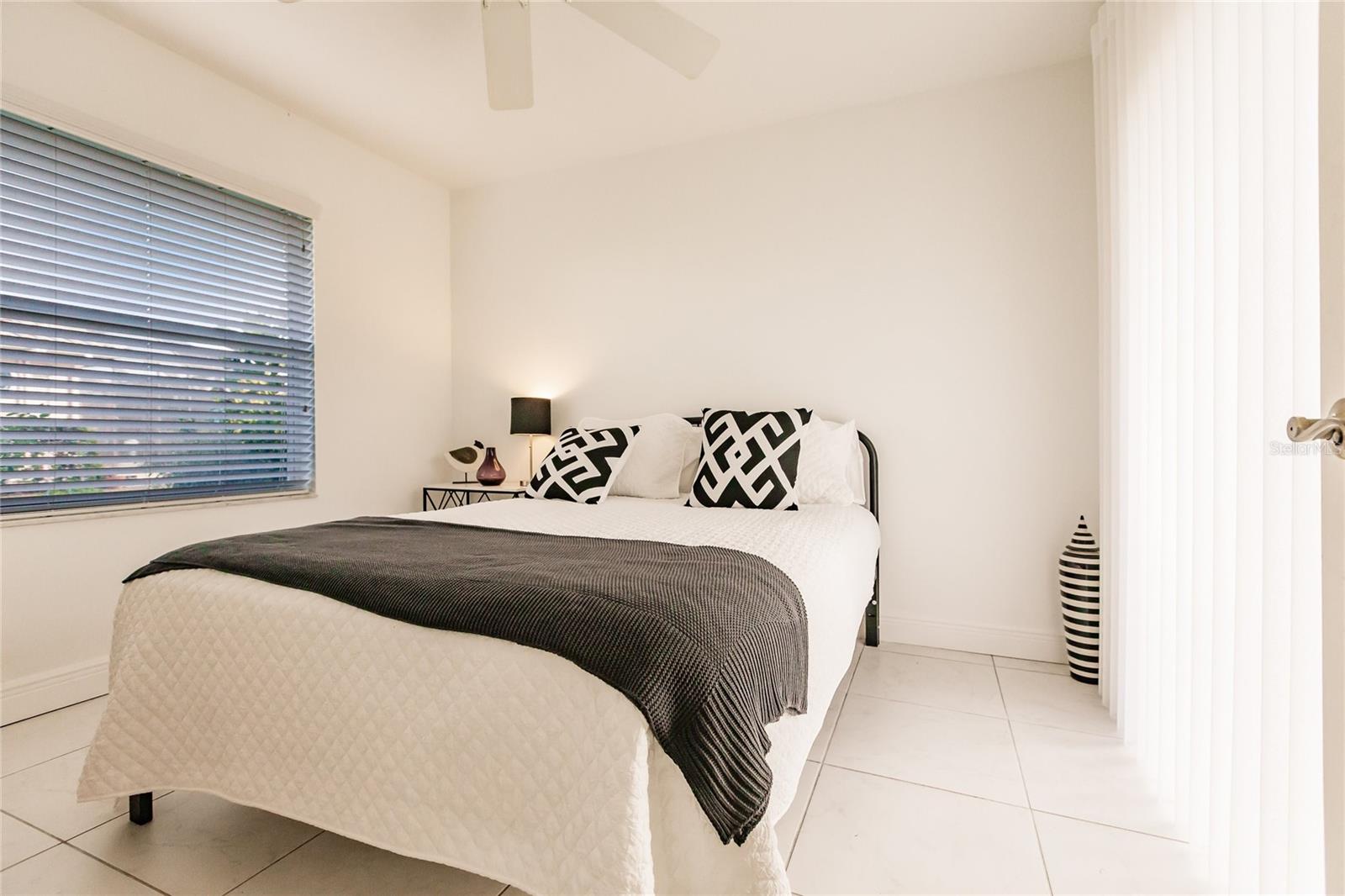 Step into the Florida lifestyle with this beautifully updated 3-bedroom, 2-bath home in the sought-after Lakes of Jacaranda community. Featuring a new 2023 concrete tile roof, brand-new 2025 water heater, new electrical panel 2025, and lush tropical landscaping, this home makes a lasting first impression with its inviting screened front porch and curb appeal. Inside, you'll be welcomed by a bright, open floor plan with soaring ceilings and abundant natural light pouring in through quadruple sliding glass doors. The spacious living room flows seamlessly into a generous dining area and a stylish eat-in kitchen, perfect for both entertaining and everyday living. The kitchen is a chef’s delight, featuring newer stainless-steel appliances, quartz countertops, a breakfast bar, and a cozy dinette area with direct access to the screened rear porch—ideal for enjoying morning coffee or evening breezes. Retreat to the private primary suite, complete with sliding doors to the porch, a large walk-in closet, and a spa-like ensuite bath with dual sinks, a makeup vanity, and a beautifully tiled walk-in shower. Two additional bedrooms (one currently used as a den) and a full guest bath provide comfort and flexibility. Additional features include a newer 2019 HVAC system, tile flooring throughout, irrigation well for the lush backyard oasis, washer/dryer, and extra freezer included. Enjoy the exceptional amenities of Lakes of Jacaranda: a resort-style clubhouse, swimming pool, tennis and pickleball courts, all just minutes from the Gulf of Mexico and stunning local beaches. This move-in-ready home combines modern updates with laid-back luxury—Florida living at its finest, MOTIVATED SELLER – VA LOAN ASSUMABLE.
