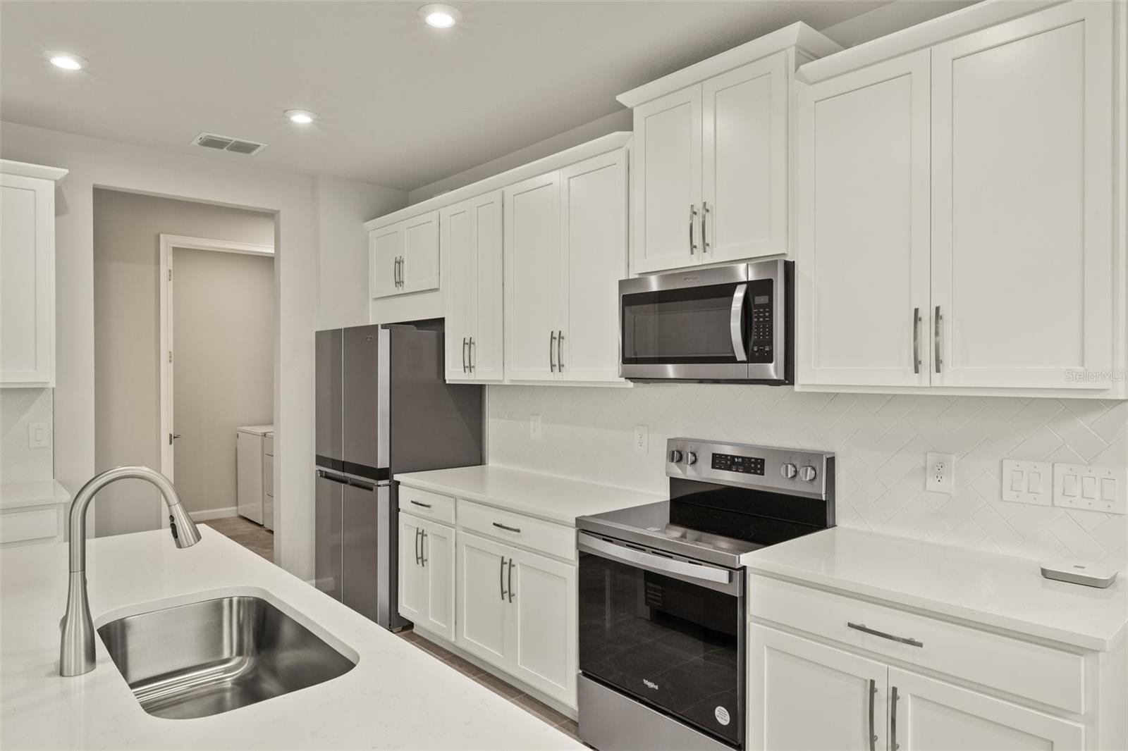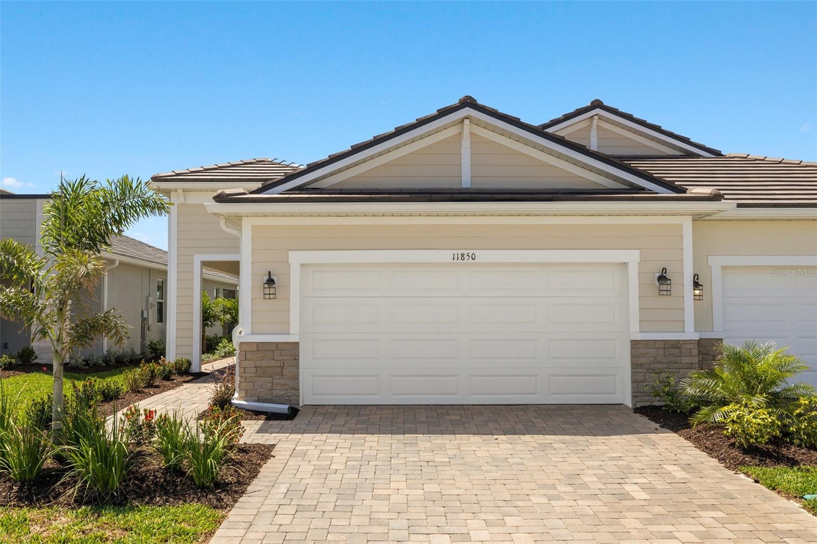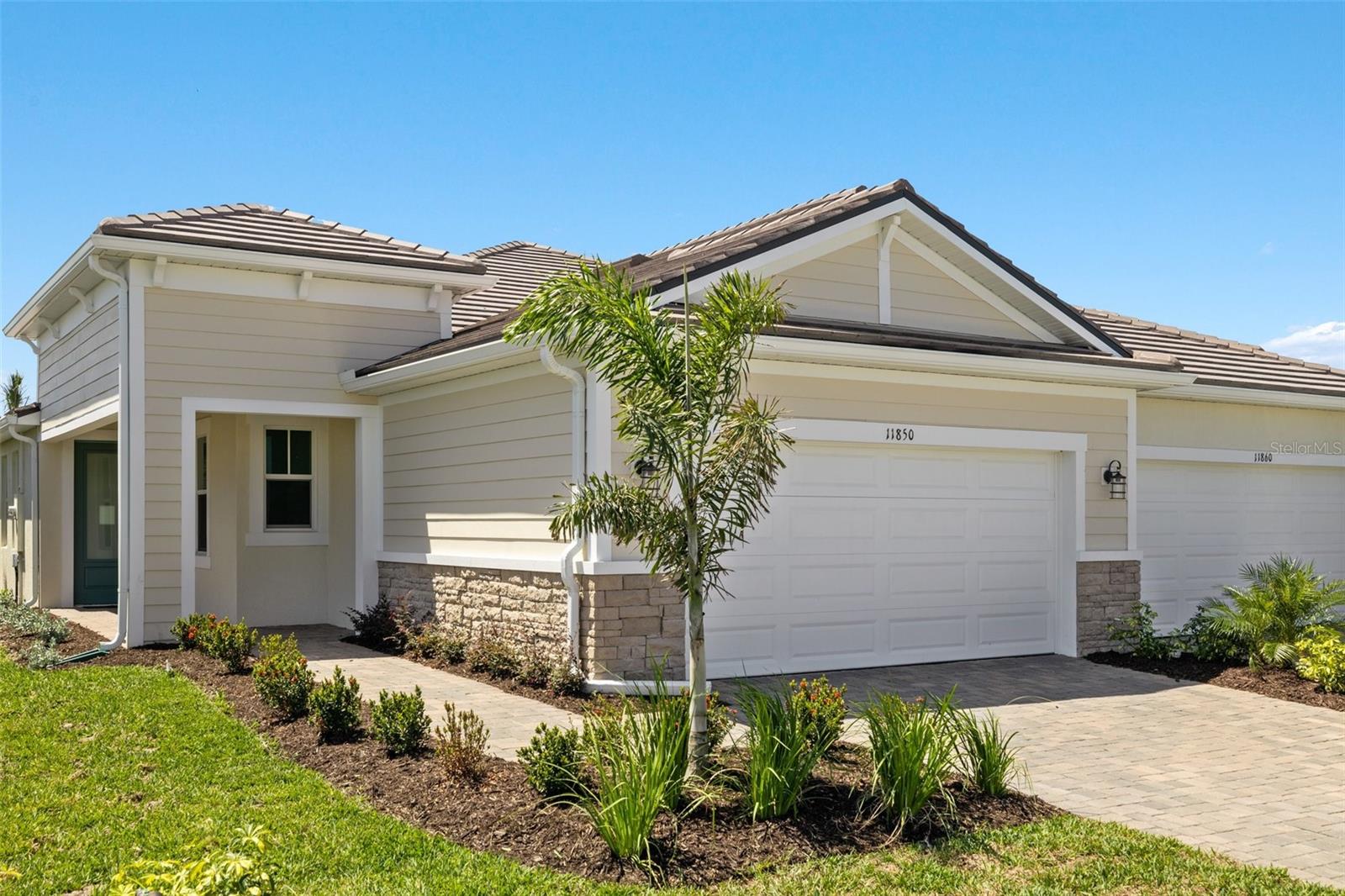 Under Construction. Welcome home to this elegant Champagne villa with the Coastal elevation, located in Brightmore at Wellen Park, a vibrant 55+ community offering exceptional amenities and a low-maintenance lifestyle! This beautiful home spans 1,754 square feet and features 2 bedrooms, 2 bathrooms, a study, and a 2-car garage. Relax and enjoy tranquil lake views from your spacious screened lanai, thoughtfully designed with pavers and ample space for outdoor living. The open-concept layout creates a seamless flow of natural light, offering the perfect setting for both entertaining and daily living. The chef-inspired kitchen boasts Whirlpool stainless steel appliances, upgraded Carrara Breve countertops, a large island painted in “Linen,” and stylish herringbone-patterned tile backsplash. The owner’s suite is a luxurious retreat with a spa-like bath featuring a dual sink raised vanity, a frameless glass shower, and raised-height cabinetry for extra storage. Additional highlights include wood-look tile flooring, 8-foot interior doors, and a high window in the great room, adding a touch of architectural charm. Modern convenience meets innovative technology with a smart home package that includes an Ecobee Smart Thermostat (Amazon Alexa compatible), a video doorbell with app, video recording, and 2-way communication, and the ClareOne Touchscreen Panel for seamless home control. As part of the Brightmore lifestyle, residents will enjoy a one-of-a-kind amenity center set to open in 2025, offering social spaces, fitness facilities, and more, designed to enrich your daily life. Photos, renderings and plans are for illustrative purposes only and should never be relied upon and may vary from the actual home. Pricing, dimensions and features can change at any time without notice or obligation. The photos are from a furnished model home and not the home offered for sale.