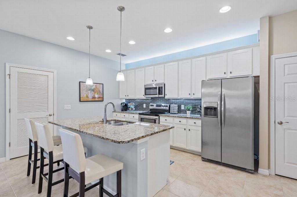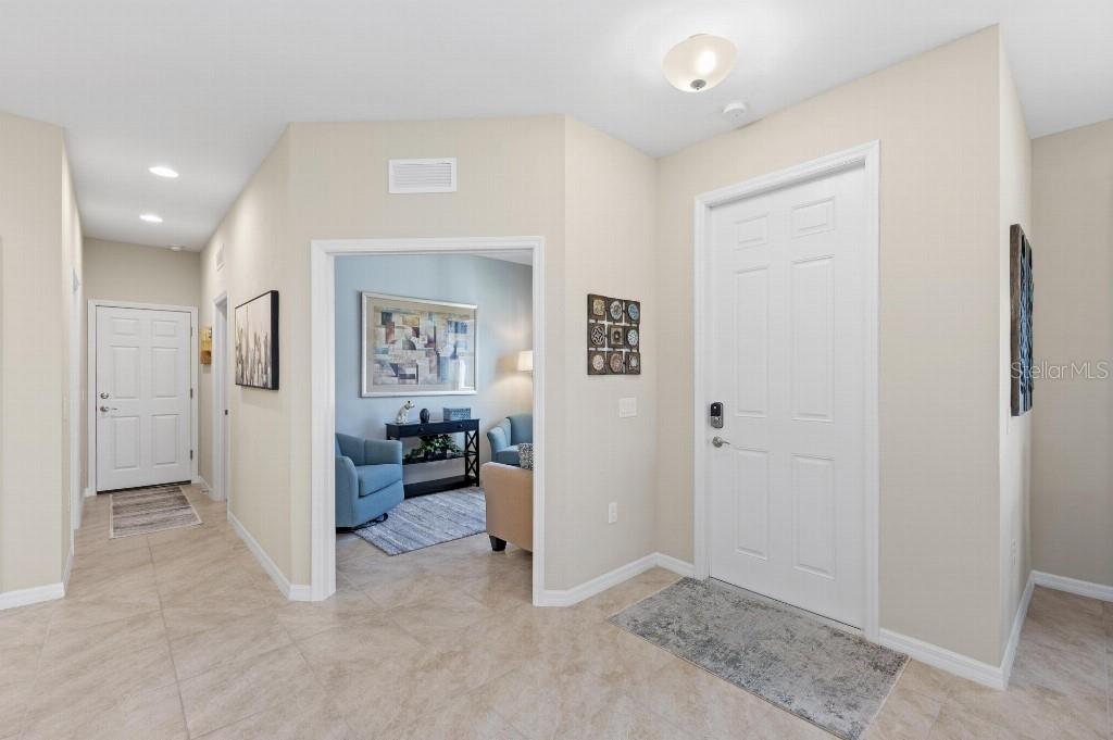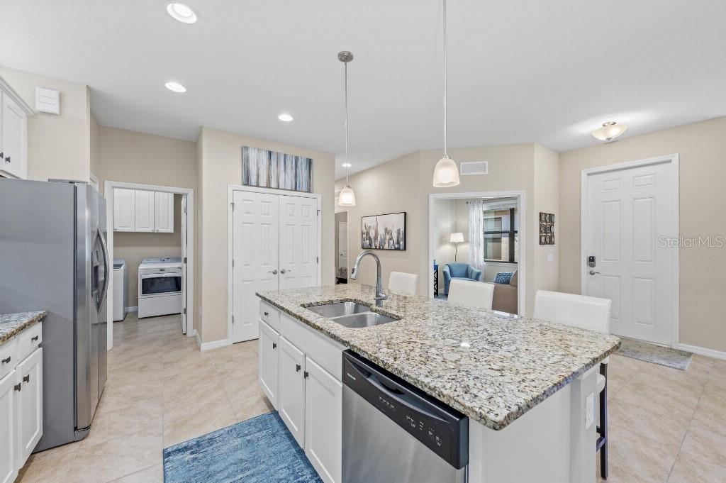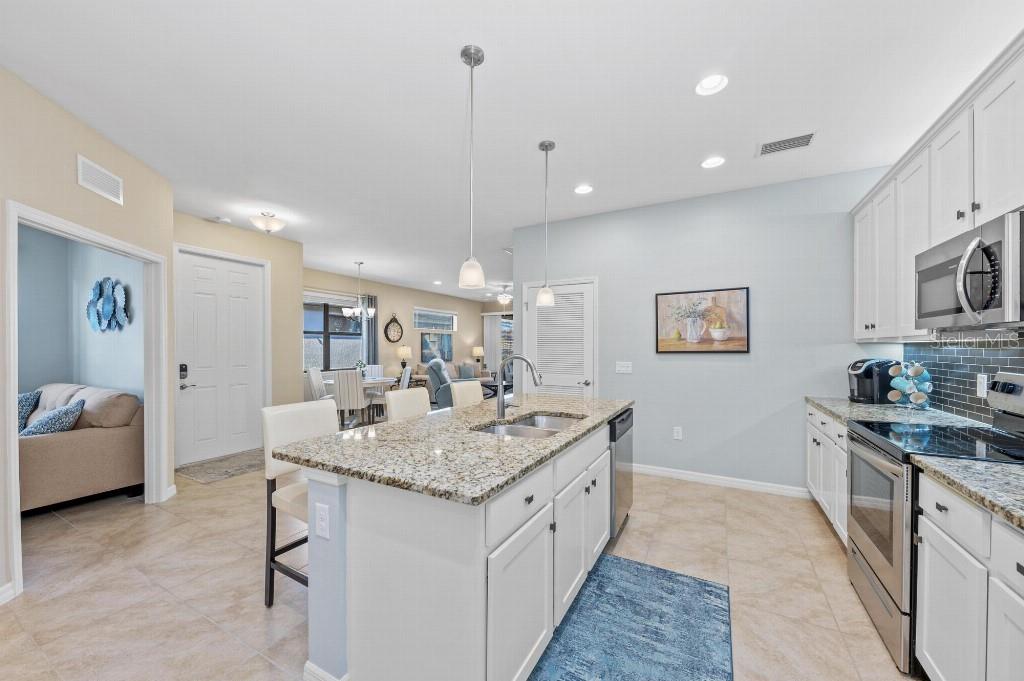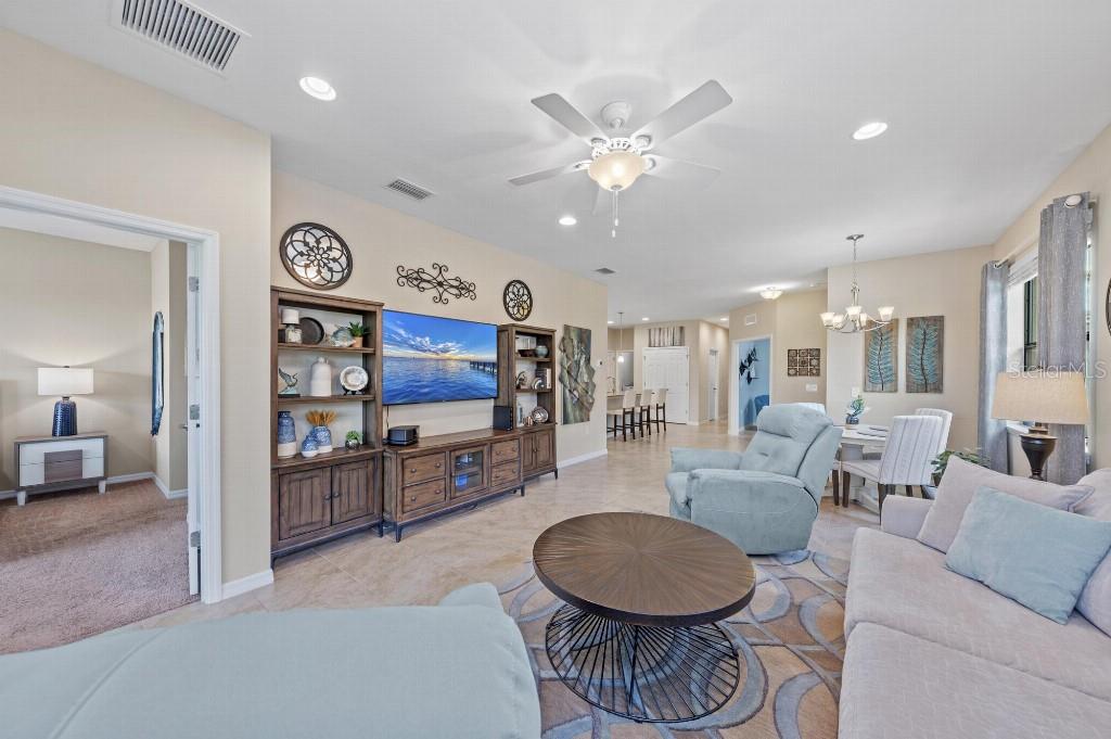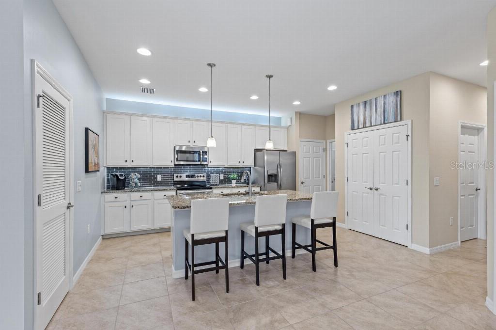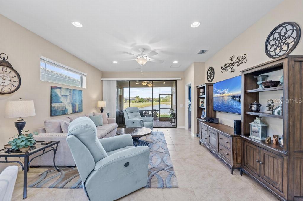This fully furnished, maintenance free, 2-bedroom, 2-bathroom plus den villa home is nestled in the heart of the lovely community of The Preserve at West Villages… just minutes from the new Wellen Park’s downtown amenities. Seller will contribute up to $8,000 toward buyer’s closing costs. The thoughtfully designed and tastefully decorated, open-concept home with split bedroom floor plan features 9-foot ceilings and sliding glass doors leading to a relaxing lanai overlooking a beautiful lake with a stunning fountain and plenty of natural light. The kitchen features stainless steel appliances, ample all wood, white cabinets, a ceramic tile backsplash, over/under counter LED lighting, granite countertops, a large pantry, a storage closet, and a counter height island perfect for cooking and entertaining. The primary bedroom suite has a serene lake view, 2-walk-in closets, ensuite bath with dual sink vanity, oversized glass enclosed shower, linen closet, and a private water closet. The secondary bedroom has a walk-in closet and is located directly across from the second full-size tub/shower bathroom allowing the utmost in privacy for your out-of-town guests. The versatile den/study can be used as a home office, media room, or as an additional room for guests. The inside laundry room with upper white wood cabinets and storage closet is located off the kitchen. This home has amazing storage with an abundance of cabinets, closets, and a 2-car garage. The Preserve Community features a clubhouse, heated pool, pickleball courts, bocce ball courts, and fitness center to enjoy Florida style living at its best. All just two blocks away! Location, location, location… Ride your bike or drive your golf cart to the local Publix grocery store, boutique shops, restaurants, 80-acre lake for fishing, kayaking, walking, and biking, and enjoy free concerts, a farmer’s market, and special seasonal events. The Cool Today Ball Park, the Atlanta Braves Spring Training Facility, is just over 2-miles away which hosts baseball games and many other events during the year. A new Costco store is 1- mile away. Coming soon… Sarasota Memorial Hospital and the new Venice High School. Do not miss a chance to view this move-in ready, turn-key, maintenance free villa home with its low HOA, convenient location, pleasant surroundings, and spacious floor plan designed for enjoying all the best that Florida’s resort-style living has to give!