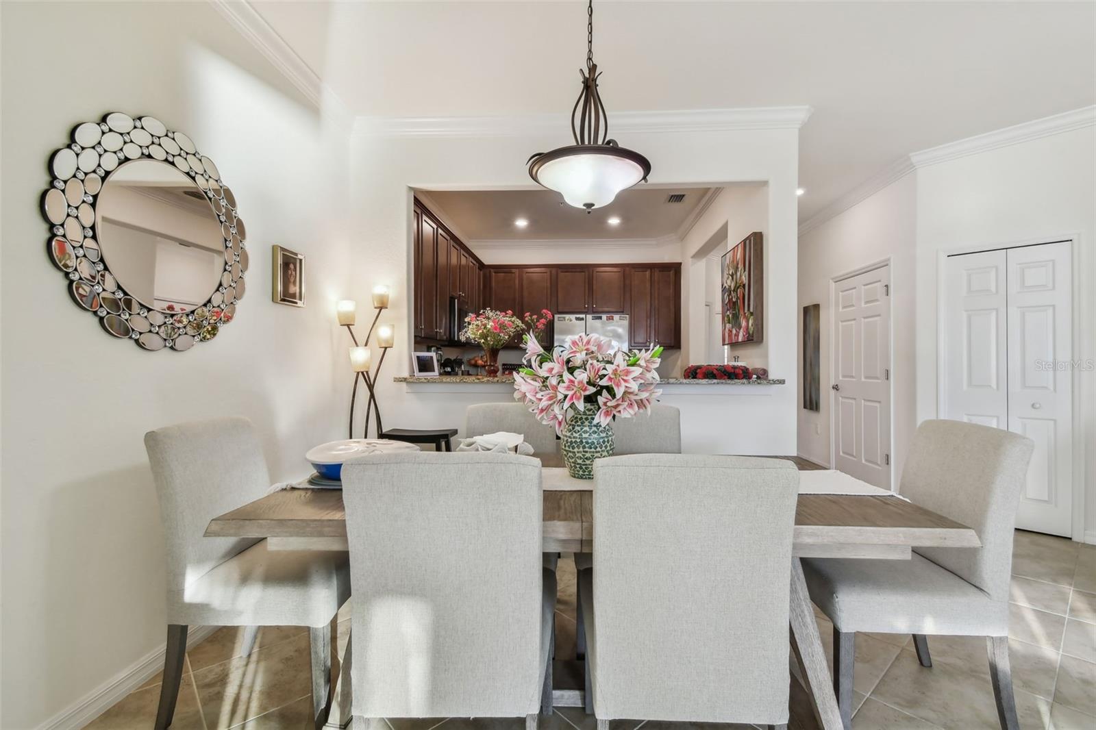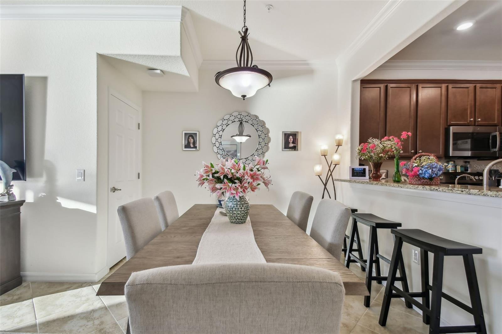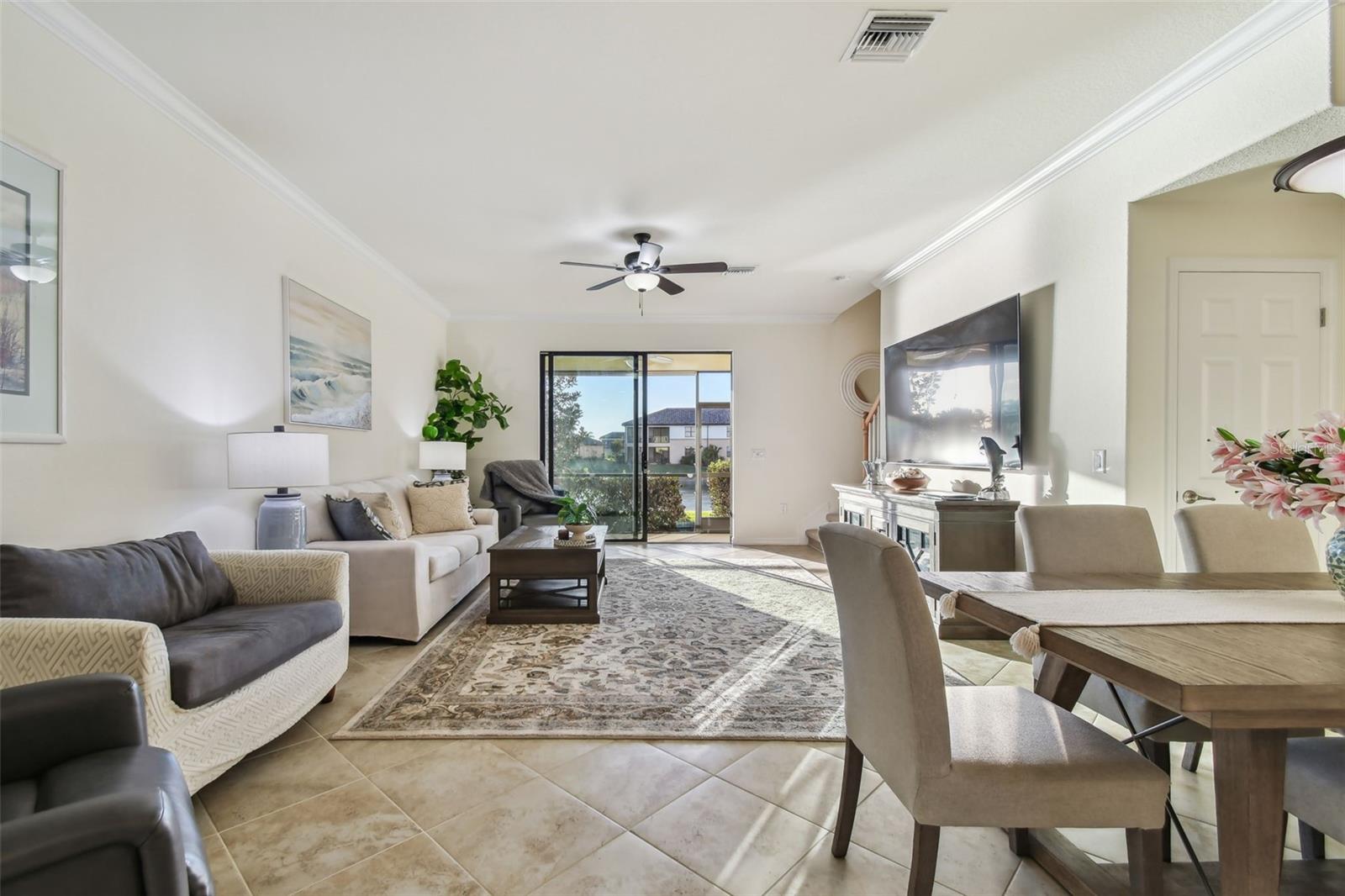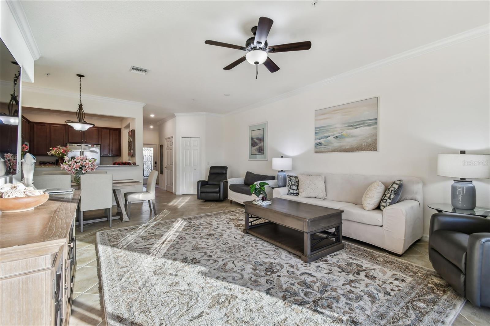 Fully furnished and turnkey, this beautifully maintained home in the Tuscan-inspired, amenity-rich gated community of Gran Paradiso is ready for you to move in! Featuring 3 spacious bedrooms, 2.5 baths, and a one-car garage, this home has everything you need. Enter through a gorgeous leaded glass door into a welcoming foyer with a handy hall closet. The kitchen is perfect for entertaining or everyday life, boasting granite countertops, stainless steel appliances, a breakfast bar, and a huge pantry. Porcelain tile runs diagonally across the first floor, paired with elegant crown molding for a sophisticated touch. There’s also an oversized storage closet under the stairs. Step onto the lanai and enjoy peaceful water views, extra storage, and roll-down sunshades. Upstairs, the primary suite offers water views, a bonus space, dual walk-in closets, and a luxurious ensuite with dual sinks and a walk-in shower. Two additional bedrooms are generously sized and share a full bath, while the second-floor laundry and extra storage closet add convenience. Located in Wellen Park’s West Village District, this home is minutes from beaches, downtown Venice, the Braves’ Spring Training Stadium, and countless local hotspots. Gran Paradiso’s 5-star amenities include a resort-style pool, hot tub, clubhouse, fitness center, tennis courts, saunas, and more—all included in the HOA fee, along with ground maintenance and basic cable. Plus, it’s golf cart-friendly! Start living your Florida dream today!