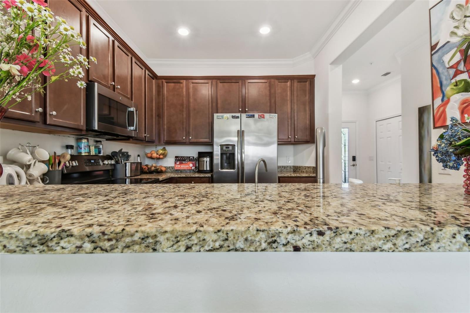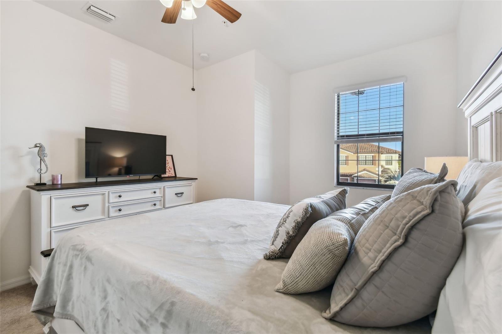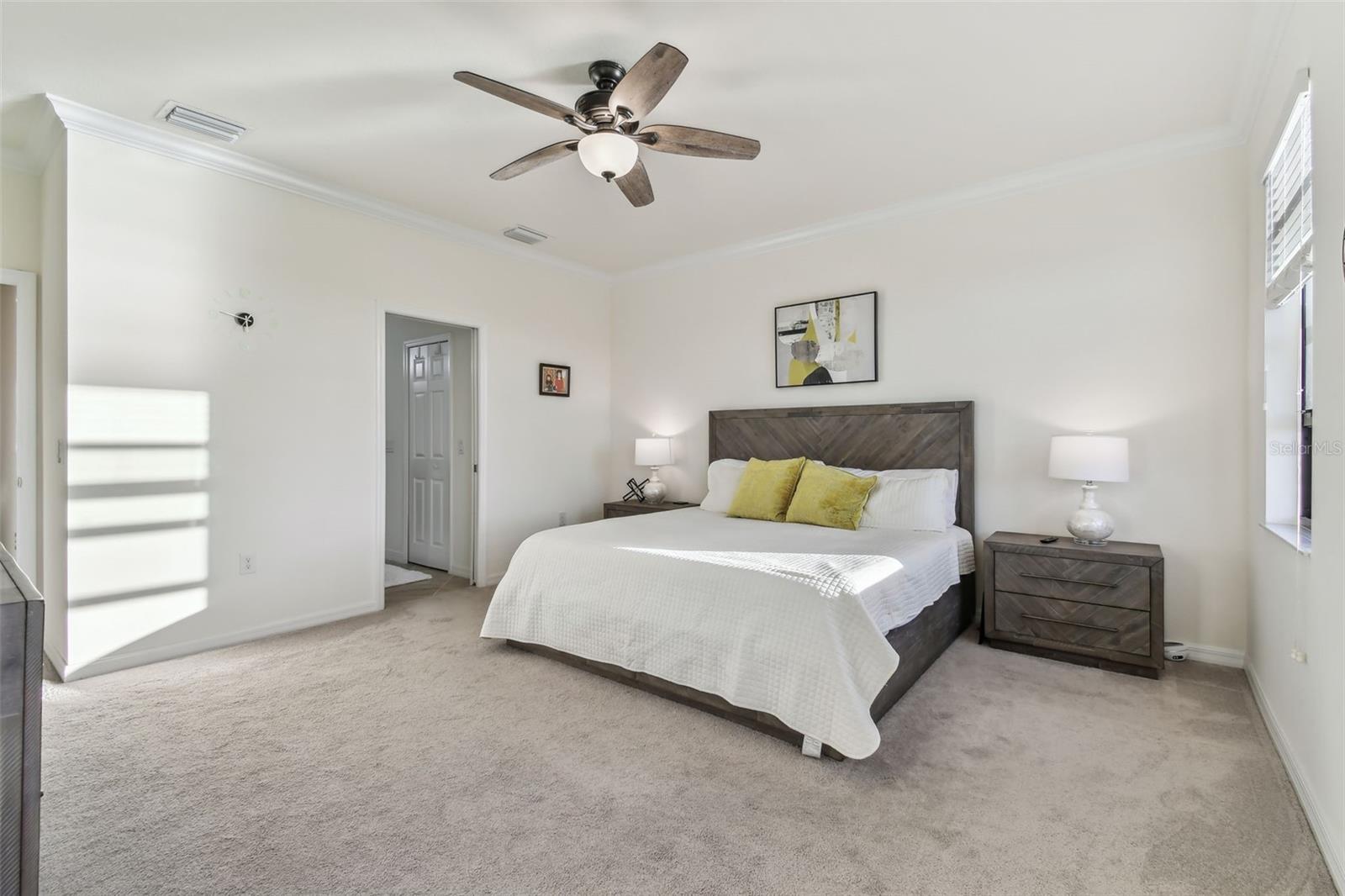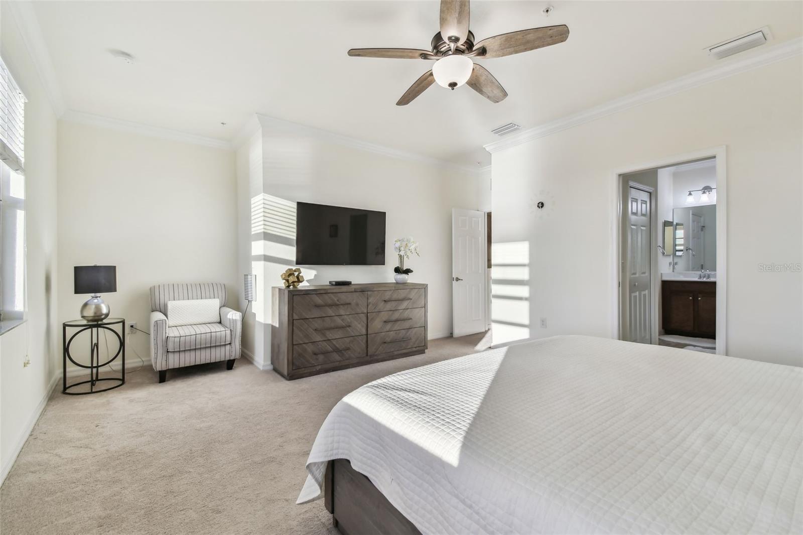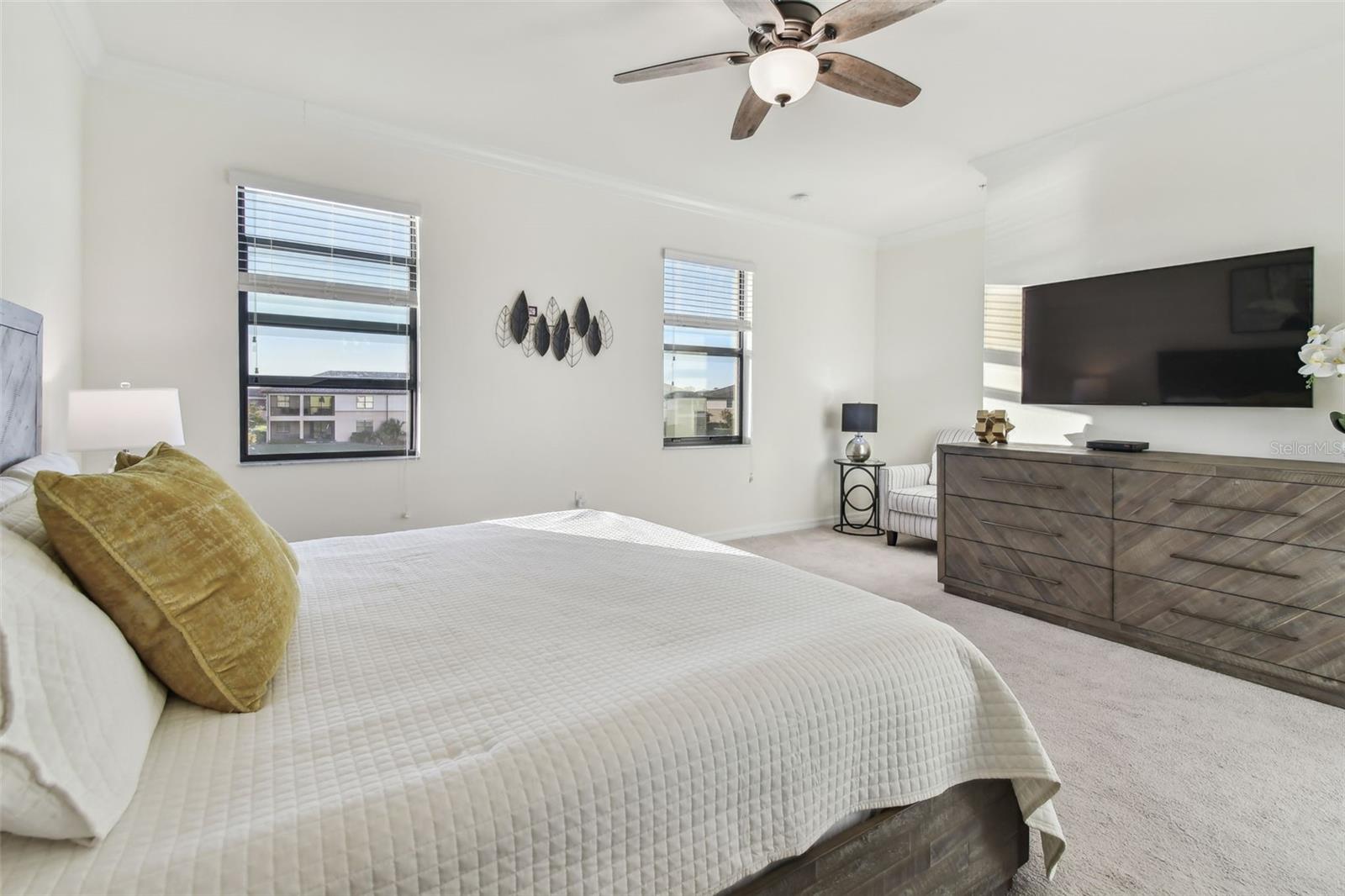 Fully furnished and turnkey, this beautifully maintained home in the Tuscan-inspired, amenity-rich gated community of Gran Paradiso is ready for you to move in! Featuring 3 spacious bedrooms, 2.5 baths, and a one-car garage, this home has everything you need. Enter through a gorgeous leaded glass door into a welcoming foyer with a handy hall closet. The kitchen is perfect for entertaining or everyday life, boasting granite countertops, stainless steel appliances, a breakfast bar, and a huge pantry. Porcelain tile runs diagonally across the first floor, paired with elegant crown molding for a sophisticated touch. There’s also an oversized storage closet under the stairs. Step onto the lanai and enjoy peaceful water views, extra storage, and roll-down sunshades. Upstairs, the primary suite offers water views, a bonus space, dual walk-in closets, and a luxurious ensuite with dual sinks and a walk-in shower. Two additional bedrooms are generously sized and share a full bath, while the second-floor laundry and extra storage closet add convenience. Located in Wellen Park’s West Village District, this home is minutes from beaches, downtown Venice, the Braves’ Spring Training Stadium, and countless local hotspots. Gran Paradiso’s 5-star amenities include a resort-style pool, hot tub, clubhouse, fitness center, tennis courts, saunas, and more—all included in the HOA fee, along with ground maintenance and basic cable. Plus, it’s golf cart-friendly! Start living your Florida dream today!
