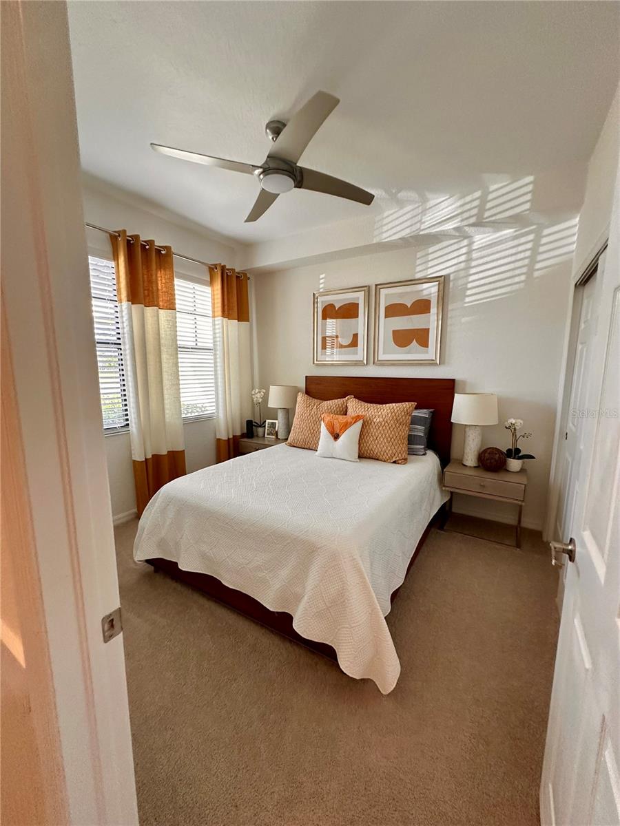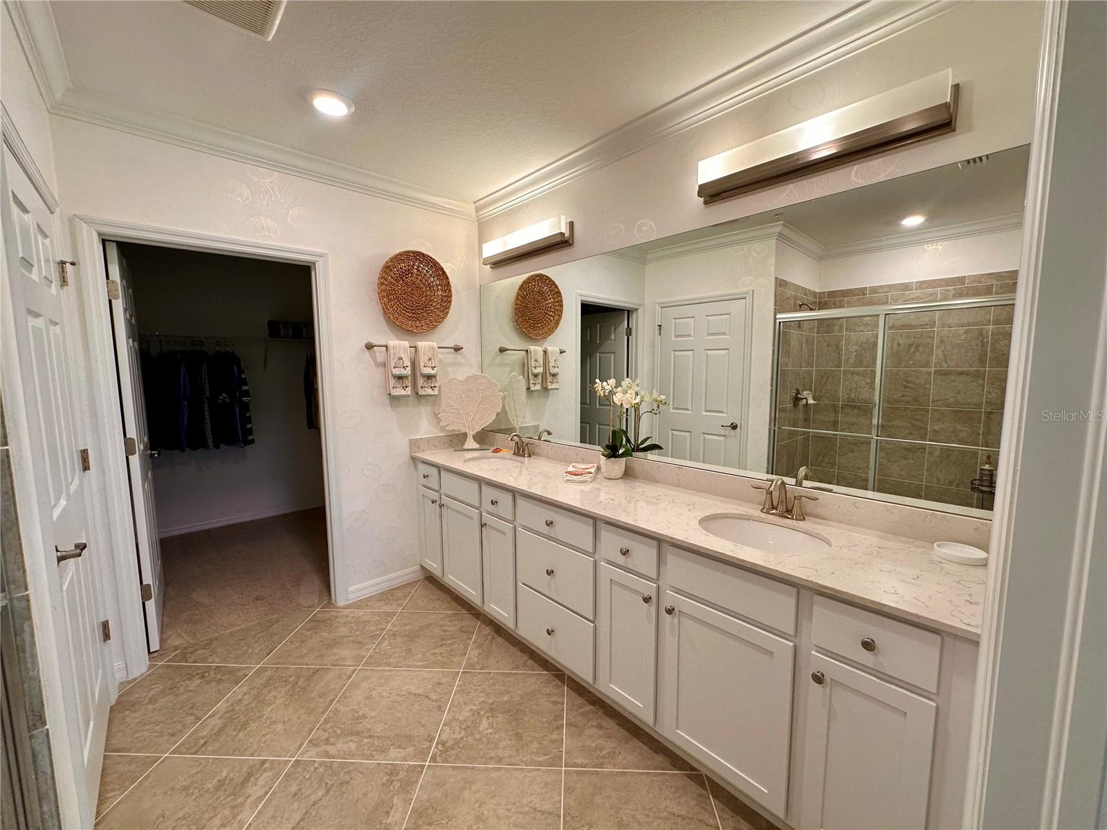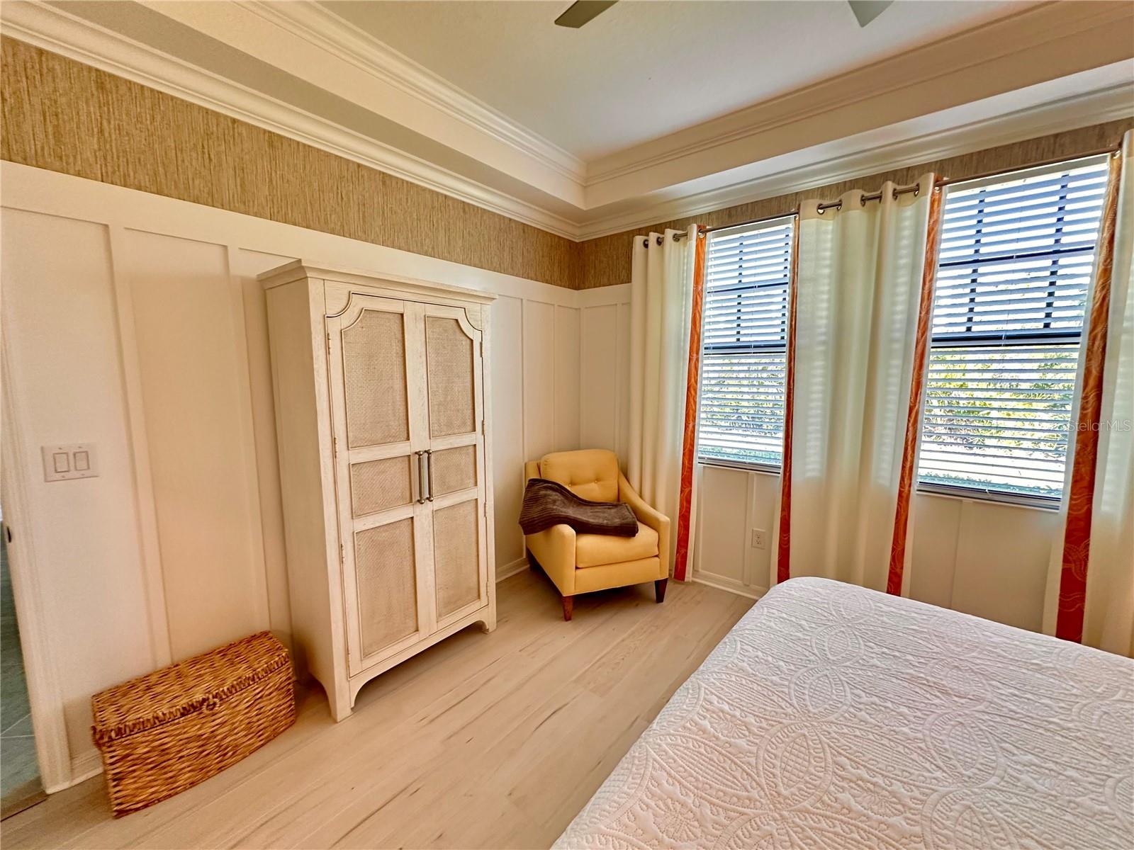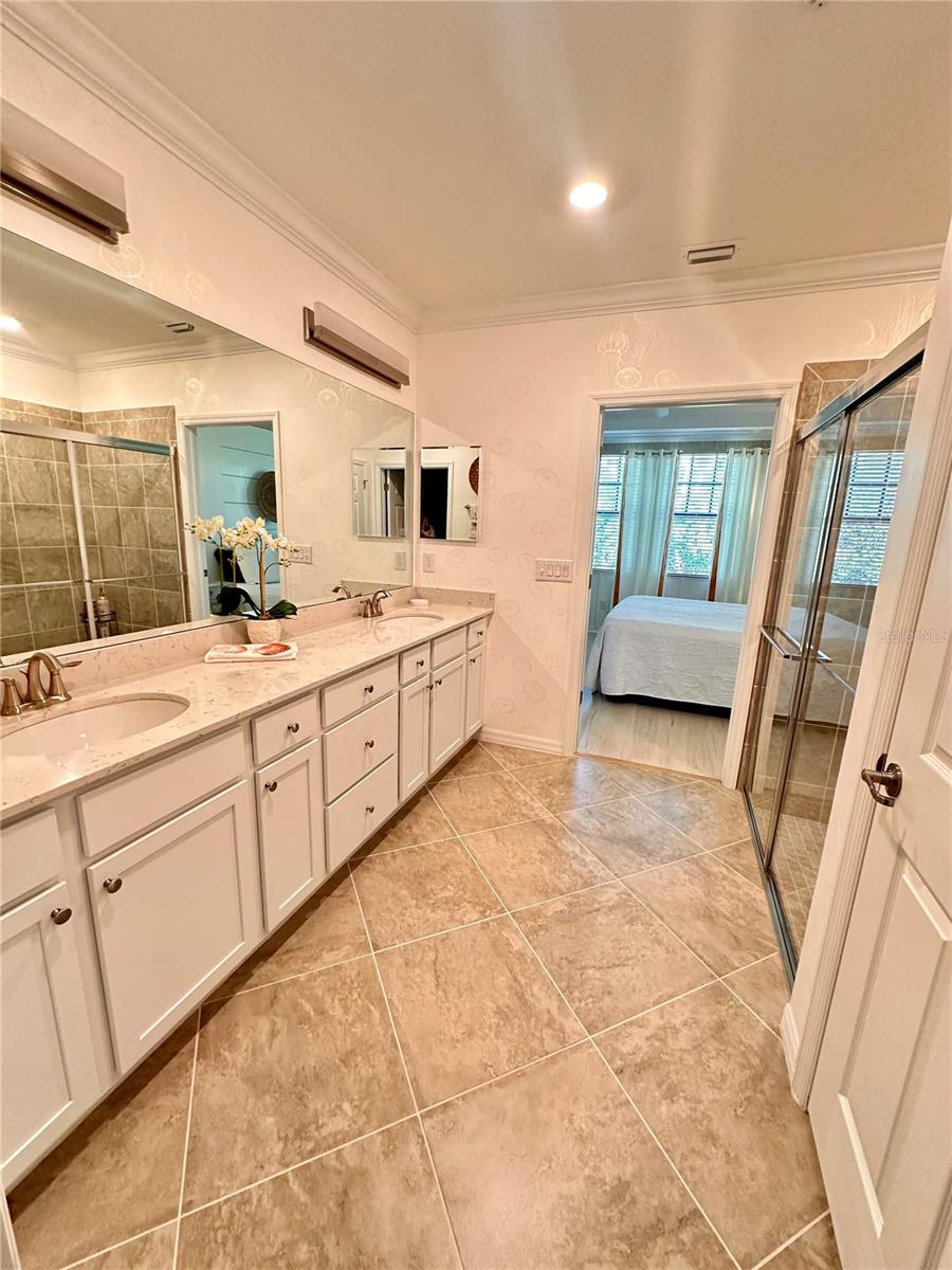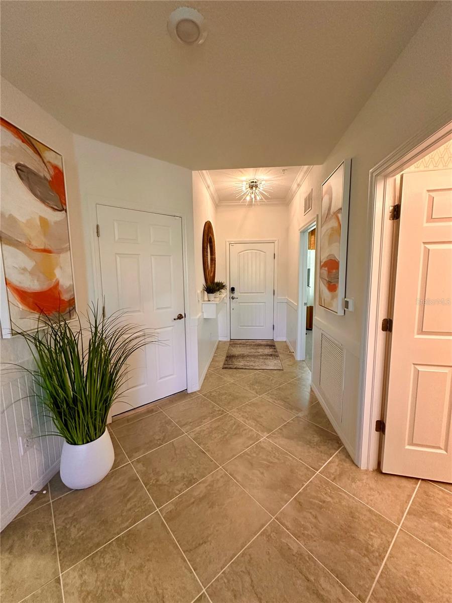 Fully furnished, this stunning condo has been beautifully decorated and remodeled with meticulous attention to detail. Discover resort-style living in this exquisitely designed home located in the prestigious Sarasota National community, in non-flood zone. This condominium offers a thoughtfully designed split floor plan featuring 2 bedrooms, 2 baths, and an expansive open-concept living space perfect for both relaxing and entertaining. The chef-inspired kitchen serves as the centerpiece of the home, complete with an oversized island with counter-height seating, stainless steel appliances, quartz countertops, elegant pendant lighting, and shaker-style cabinets. Brushed nickel hardware and decorative accents add a modern yet timeless touch. The adjacent living and dining areas feature custom trim and designer lighting, exuding a sense of sophistication. Triple sliding glass doors open to the lanai, revealing serene views of the lush preserve. The primary suite is a luxurious retreat with a spa-like ensuite bathroom featuring dual sinks, a separate water closet, and a spacious walk-in closet. Additional highlights include an oversized laundry room, a one-car garage, and impact-resistant windows and doors, ensuring peace of mind. This condo is loaded with designer upgrades, including diagonal tile flooring, crown molding, tray ceilings, decorative wainscoting, wallpaper accents, and custom lighting—all creating an ambiance of refined luxury. Located in Sarasota National, an amenity-rich community, residents enjoy access to a main clubhouse with a full-service dining room, a bar and lounge, a library, and a coffee room. Fitness enthusiasts will appreciate the state-of-the-art gym, spa treatment rooms, group fitness spaces, and locker rooms. The resort-style pool features lap lanes, a spa, beach entry, and a poolside tiki bar. Additional amenities include tennis courts, bocce, pickleball, an event lawn, expansive patios, and a dedicated dog park. The HOA fee covers water, sewer, basic cable, pest control, exterior maintenance, irrigation, and access to the world-class amenities. This prime location is just moments from Wellen Park Town Center, offering unique shops, fine dining, a Farmer’s Market, live entertainment and more. It’s also close to historic Downtown Venice and the pristine Gulf Coast beaches.