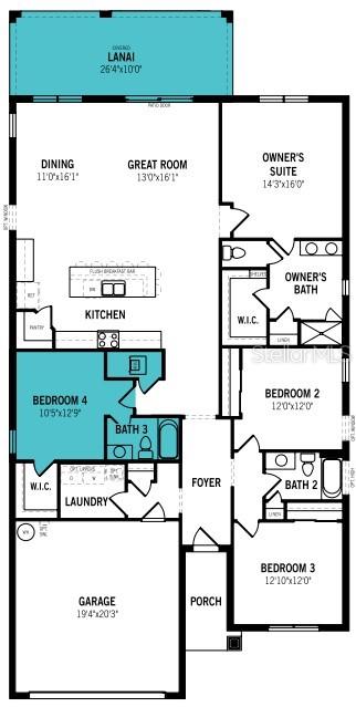 Under Construction. Abundant natural light and inspiring, modern style are evident throughout the 2,209 sq. ft. Gateway floorplan. With 4 bedrooms, 3 baths and a 2-car garage, this home makes good use of every ounce of square footage. The 3 secondary bedrooms and 2 full bath are located in the front of the home, just off the foyer and entry hall for privacy. The owner's suite is placed in the rear of the home, with its own en suite featuring a dual sink raised vanity, glass enclosed shower and walk-in closed with a space for linens. The remainder of the layout is devoted to impressive, open-concept living. The oversized kitchen boast 2 walls of 42" upper shaker style cabinets painted Lined and topped with quartz countertops in New Carrara Marmi, a lightly marbled style and gray hued brickset tile backsplash to tie it all together. The strategically placed island with a breakfast bar has the capacity to seat 7. The plan boast views of the dining and great room from the kitchen. Views of the conservation are available to all three areas through the oversized 12' sliders on the back of the great room. These make it easy to extend the living space onto the elongated lanai, giving plenty of room for a dining and seating area. Entertaining guests — as well as routine everyday living — is a pleasure in this home. Pricing, dimensions and features can change at any time without notice or obligation. Photos, renderings and plans are for illustrative purposes only, and should never be relied upon and may vary from the actual home.