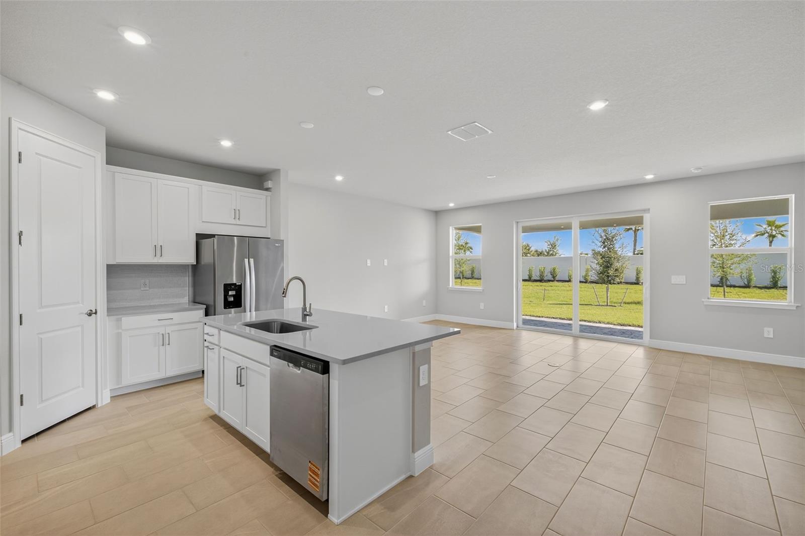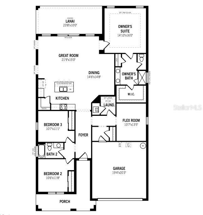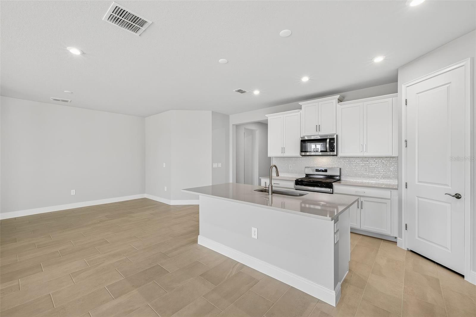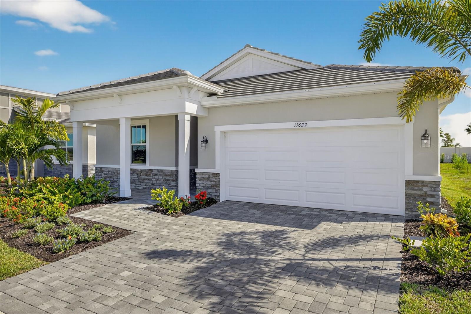 Welcome to the Glades, a stunning home located in the sought-after gated community of Sunstone Lakeside at Wellen Park in Venice, FL. This exceptional property offers 2,005 square feet of elegant living space, featuring 3 bedrooms, 2 bathrooms, a flex space, and a 2-car garage. The Coastal exterior offers a variety of exterior finishes such as cement board siding, banded windows and stone accents. As you step inside, you'll immediately notice the open and inviting floor plan, enhanced by the gray hued oversized 12x24 tile that flows through the main living areas and the versatile flex space. The kitchen is a chef's dream, showcasing 42" upper cabinets, shaker style painted Linen and exquisite quartz countertops in contrasting Soapstone, providing both functionality and style. The backsplash is a slightly iridescent linear tile that adds a modern twist and really creates a designer look to the area. There is a corner pantry that also provides more storage space. The island offers a place for a quick bite or a great place to house serving trays and will seat 3. It overlooks the dining and great room, providing maximum use of space. The spacious master suite offers a peaceful retreat with a well-appointed en-suite bathroom, complete with a dual sink raised vanity, glass enclosed shower plus a linen and walk-in closet. The additional bedrooms are thoughtfully designed to provide comfort and privacy for family members or guests. They are located just off the foyer, across from the flex room. This area is extra space to use for basically anything you need, from home office to workout area. Outdoor living is equally impressive, with a large covered lanai perfect for entertaining or simply enjoying the serene surroundings. Lakeside Sunstone at Wellen Park is a beautiful community that combines the charm of suburban living with convenient access to parks, shopping, and dining. With its central location in Venice, you can walk, bike or take a golf cart to Downtown Wellen, CoolToday Park and a shopping center with groceries, restaurants and more. Community will have its own amenities plus the use of the amenities at the sister property of Sunstone at Wellen Park. Pricing, dimensions and features can change at any time without notice or obligation. Photos, renderings and plans are for illustrative purposes only, and should never be relied upon and may vary from the actual home.