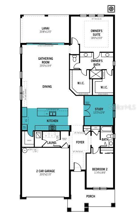 Under Construction. The Dayspring, a 1-story, single-family home, offers 2,296 square feet of thoughtfully designed living space with many useful design features. The impressive kitchen flows seamlessly flows to the bright and open dining area and Great Room. The spacious kitchen boasts an oversized center island with breakfast bar, two walls of light shaker style cabinets and a walk-in pantry. It demands attention with its marble inspired durable quartz countertops and designer tile backsplash. Upgraded appliances including a gas range cooktop with vent hood, wall oven/microwave and French door refrigerator. The relaxing owner’s suite has three windows that flank the back wall for an impressive amount of natural light and an oasis-inspired owner’s bath with 2 walk-in closets with an abundant mount of hanging racks, a large walk-in shower, and two separate raised vanities. The 2nd bedroom and bath are situated towards the front of the home for privacy. There is a study located just off the kitchen to offers more living space to suit whatever your lifestyle calls for. The exterior covered lanai is accessible from the great room through the oversized glass slider that expands the full width of the back wall. It invites outdoor living and is perfect for entertaining or everyday enjoyment. The front porch provides a place for rocking chairs or a sitting area to converse with others strolling down the sidewalk. Community will also have use of Sunstone amenities as well, as it's sister property. Pricing, dimensions and features can change at any time without notice or obligation. Photos, renderings and plans are for illustrative purposes only and should never be relied upon and may vary from the actual home.