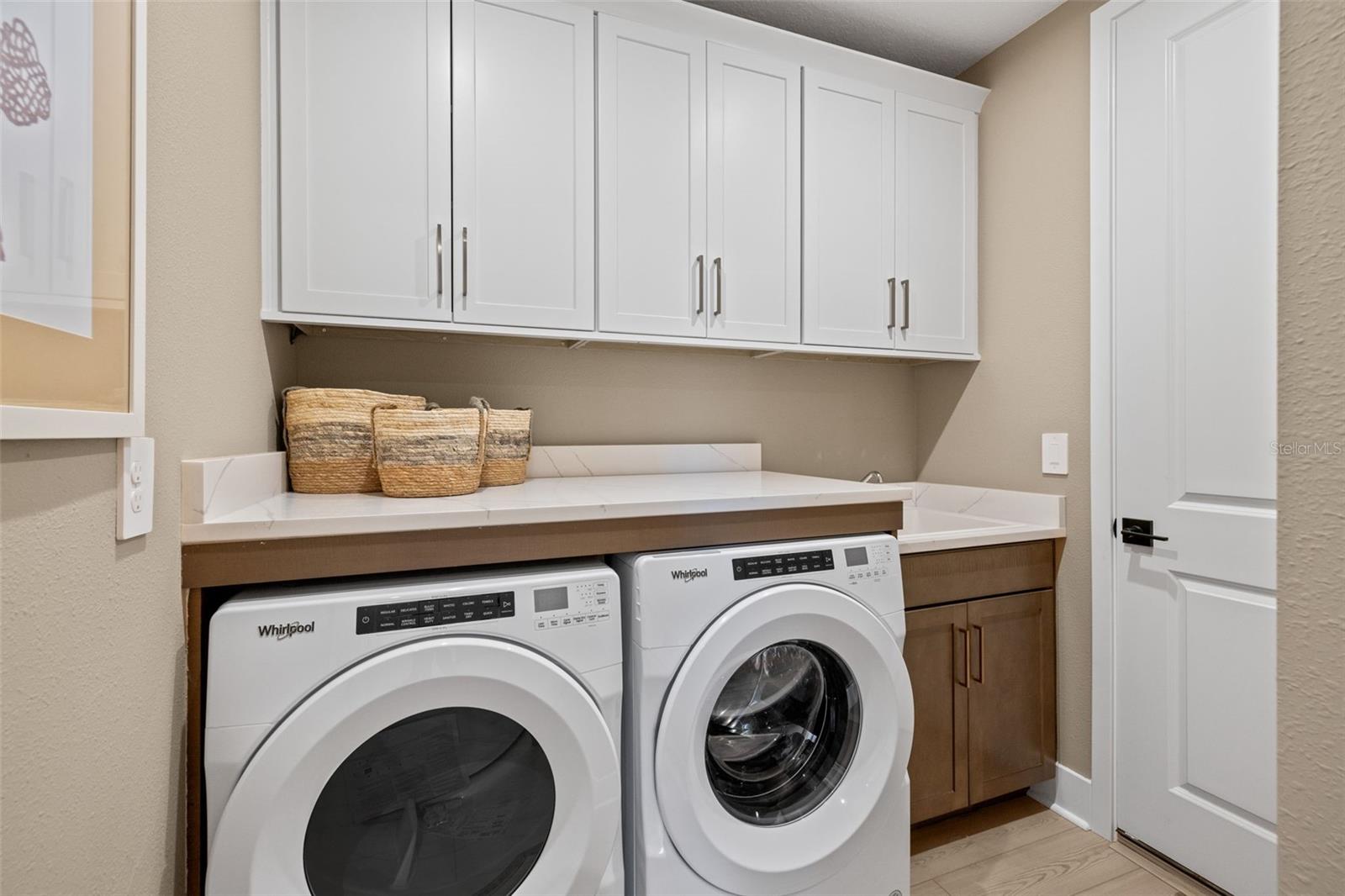Under Construction. The water view Acacia is a luxurious 1,904 sq. ft. coach home designed for comfort and elegance. This first-floor residence features a coastal-inspired exterior and impact-resistant windows, ensuring both style and security. Inside, the open-concept floor plan seamlessly connects the great room, dining area, and executive kitchen, which boasts a cooktop, wall oven, and soft-close cabinetry. With a modern take on shaker style, the 42’ upper cabinets in a PureStyle White and contrasting Sandstone quartz countertops adorn the walls and island. Satin nickel hardware ties in with the appliances and the eye-catching linear tile backsplash makes this kitchen the true centerpiece of the home. The expansive lanai, accessible through two triple-slider glass doors, offers a seamless indoor-outdoor experience with a screened enclosure for year-round enjoyment. The pond view makes the enjoyment even better. The oversized owner's suite is a private retreat, featuring an enormous walk-in closet and a spa-like en suite with a bathroom-length dual sink raised vanity, a glass-enclosed shower with a bench seat, and premium finishes. Two secondary bedrooms at the front of the home provide privacy for guests, with an adjacent full bath featuring a zero-entry shower. A strategically placed powder room and a spacious two-car garage complete this stunning home. Home also features luxury vinyl plank flooring throughout the main living areas, a smart home package including a ClareOne touchscreen pad for home control, Alexa enabled thermostat, voice activated doorbell and more. Photos, renderings and plans are for illustrative purposes only and should never be relied upon and may vary from the actual home. Pricing, dimensions and features can change at any time without notice or obligation. The photos are from a furnished model home and not the home offered for sale.