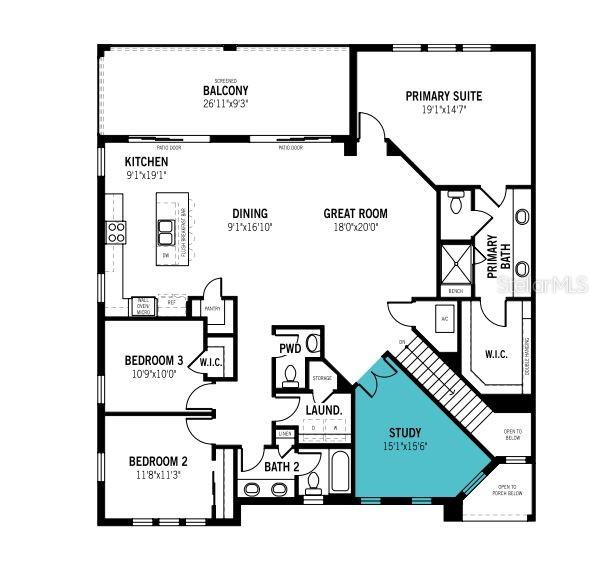 Under Construction. Presenting the Evergreen, a top floor luxury residence with water view, offering an elegant and spacious living environment. With 3 bedrooms, 2 baths, a powder room and a versatile study, this 2,316 square foot residence features an open concept floor plan that flows effortlessly between the executive kitchen, dining, and great room. The kitchen dazzles with two walls of custom cabinetry in a modern style shaker design and an oversized breakfast bar on the island. Bright white cabinets with natural stone inspired quartz countertops in Carrara Breve really brings this kitchen alive. Add stainless steel appliances including Energy Star refrigerator and dishwasher, satin nickel hardware and the timeless herringbone laid subway tile backsplash, and you have a chef’s dream. The dining and great room extend directly from the kitchen, allowing the stacking sliding glass doors to provide seamless access to an extensive screened balcony and stunning views of the water. The number of windows and slides in these rooms provide an amazing amount of natural lighting. The extensive owner’s suite is a private retreat complete with an en suite bathroom encompassing a dual sink raised vanity spanning the length of the room, a glass enclosed shower with bench seat, and a generous walk-in closet. It provides enough space for a king-size bed, 2 nightstands, dresser and other furniture. Two secondary bedrooms, positioned on the front corner, share a full bath with dual sinks and a tub/shower combo. The strategically placed powder room is easily accessible for the main living area and helps keep the full baths private. Oversized tile flooring in soft gray covers all the main living areas and study. A 2-car garage completes this exquisite home. This smart home offers Alexa enabled thermostat, ClareOne touchpad smart home control, electric smart lock with dead bolt, voice enabled video doorbell and more. Pricing, dimensions and features can change at any time without notice or obligation. Photos, renderings and plans are for illustrative purposes only and should never be relied upon and may vary from the actual home. Photos are from the model home.