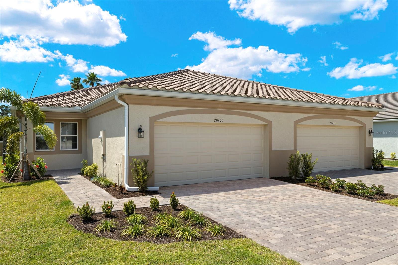 READY TO MOVE IN NOW! The stunning Largo paired villa is waiting for you to move in and enjoy the beautiful Florida weather today. Featuring a charming Spanish elevation, this home is perfect for both seasonal and year-round living. Offering 1,431 sq. ft. of stylish, open living space, this villa includes 2 bedrooms, 2 bathrooms, a 2-car garage, a laundry room, a study, and a covered lanai—ideal for relaxation and entertaining. The heart of this home is the bright and open kitchen, which boasts a large center island that comfortably seats 3, as well as gorgeous Carrara Breve quartz countertops, stainless steel appliances, and a spacious pantry. The kitchen flows seamlessly into the dining area, which comfortably seats 6 or more. The open living and dining space overlooks the private lanai and backyard, providing a peaceful retreat for both relaxing and entertaining. The generous owner's suite features a large walk-in closet and a private en-suite bath with dual sinks, a raised vanity, and a separate water closet. The secondary bedroom and bathroom are located at the front of the home, offering privacy for guests. The front study provides additional space, perfect for a home office or leisure area. This villa also comes equipped with a Smart Home package, including a Wi-Fi-capable garage door opener, an Ecobee Smart Thermostat, electronic smart lock, and more. Located in a vibrant, resort-style community with a full suite of amenities—pickleball, tennis, a pool, clubhouse, and a full-time activities director—this home is ready for you to enjoy the lifestyle you've been looking for. The Renaissance community is low maintenance, with the HOA covering lawn and yard maintenance, clubhouse upkeep, and lifestyle coordination. Plus, it’s just a short 20-minute ride to beautiful beaches, a quick drive to the Atlanta Braves Spring Training stadium, and a short bike ride to the new Downtown Wellen Park, featuring shops, restaurants, and grocery stores. Don’t miss the chance to own one of the last paired villas in Renaissance. Act now before this opportunity is gone—this community will be closing out soon! Photos, renderings and plans are for illustrative purposes only and should never be relied upon and may vary from the actual home. Pricing, dimensions and features can change at any time without notice or obligation. The photos are from a furnished model home and not the home offered for sale.