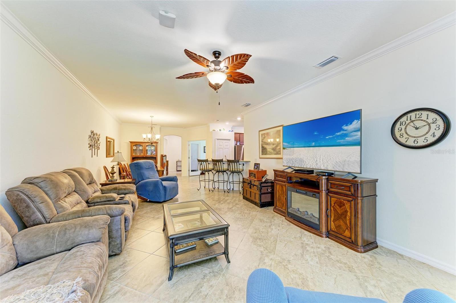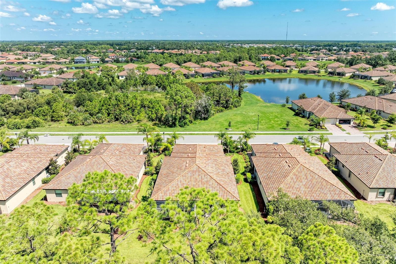 Discover luxury living located within the prestigious Gran Paradiso community of Wellen Park with breathtaking LAKE view from YOUR front yard and private PRESERVE view from YOUR backyard! This meticulously maintained 2-bedroom, 2-bath home plus a versatile den, 2 car garage and almost 2200sf under roof offers both comfort and sophistication. Step inside to find an open-concept split bedroom layout adorned with crown molding, tall ceilings , upgraded luxury vinyl flooring in all bedrooms including den, no carpet, and upgraded lighting fixtures. The gourmet kitchen features granite countertops, stainless steel appliances with brand new refrigerator, spacious pantry and a spacious tiled breakfast bar, perfect for entertaining. Retreat to the expansive master suite, complete with his-and-hers closets, dual sinks, a walk-in shower, and a separate soaking tub—your private spa-like escape. Outside, a tranquil screened lanai invites you to unwind and soak up the Florida sunshine with preserve for extra privacy and screened in front porch with the beautiful lake view to enjoy!The home also provides hurricane resistant shutters, Brand New 2024 Water heater, rain gutters, and a laundry room off the 2 car garage with Washed and Dryer Included providing functionality and peace of mind. Even Golf Cart included as a gift for you to enjoy your florida lifestyle! Enjoy your Resort Lifestyle at Gran Paradiso! Gran Paradiso is a guarded and gated, master-planned community offering world-class resort-style amenities: Grand Clubhouse – A luxurious 20,000 sq. ft. clubhouse with a state-of-the-art fitness center, sauna, steam room, and activity rooms. Expansive Resort Pool & Spa – Take a refreshing dip in the zero-entry heated pool and spa, surrounded by lush landscaping. Tennis & Pickleball Courts – Stay active with lighted courts for year-round play.Walking & Biking Trails – Enjoy miles of scenic paths winding through nature preserves and picturesque lakes. Social Calendar – A vibrant community offering yoga, card games, group outings, and seasonal events. Low-Maintenance Living – HOA fees include cable, all lawn care including mowing, pruning, mulching, weeding, exterior maintenance including paint every 7 years as well as roof replacement, and more! With Wellen Park’s charming shops, restaurants, and entertainment just minutes away, this home is a rare find in one of the most sought-after communities in Southwest Florida. And three Beautiful Beaches within 8 miles radius! Call to schedule your private tour today and enjoy your Florida Living at its best!