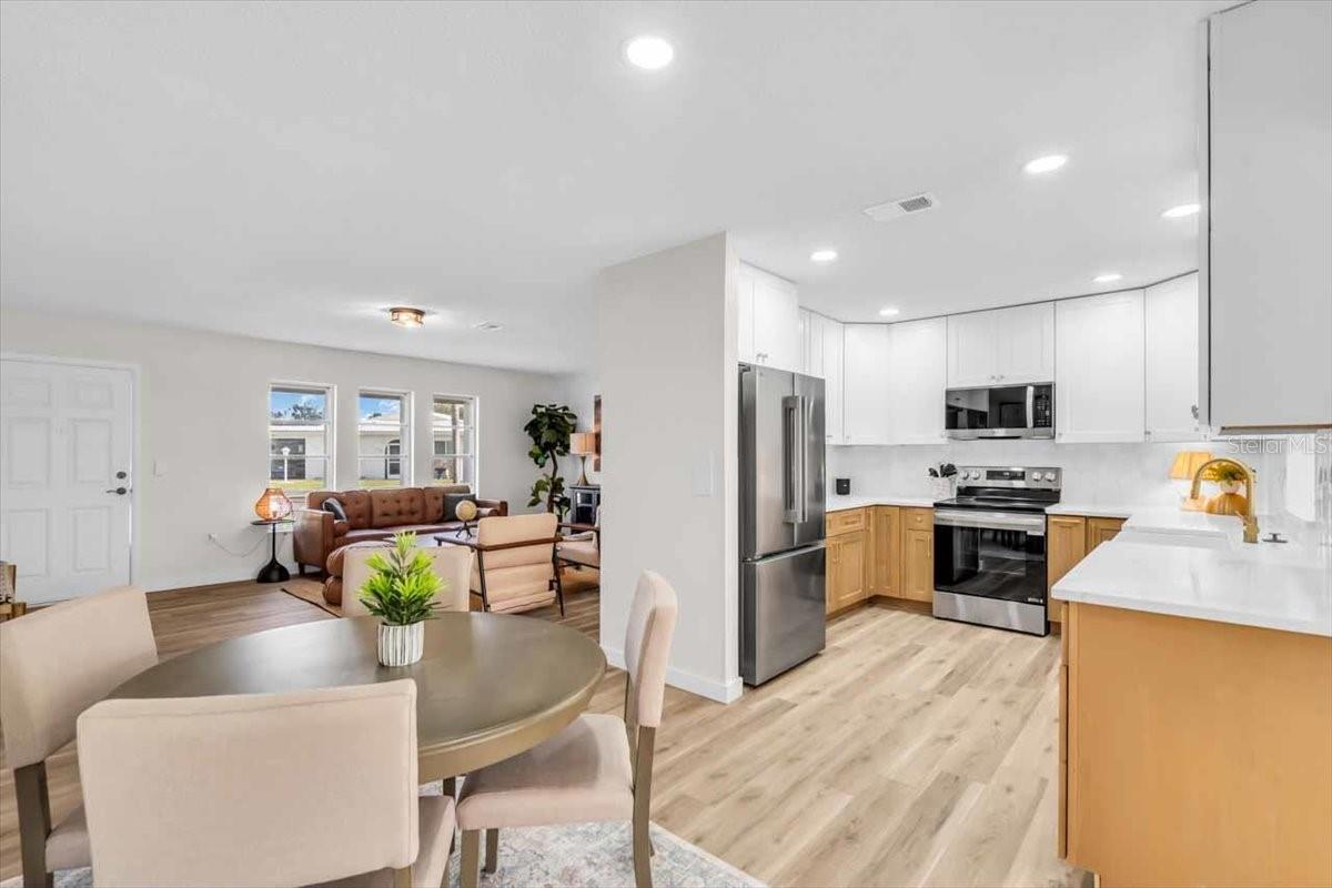 Welcome to Circle Woods, where Florida’s easiest lifestyle meets true peace of mind. This fully renovated, detached villa lives like a private single-family home with no shared walls, delivering the quiet comfort and independence seasonal residents love. Thoughtfully redesigned from top to bottom, this residence is the definition of move-in-ready, complete with major upgrades that make ownership effortless, including a new roof less than one year old, a newer HVAC system, and updated plumbing for confidence while you’re away. Inside, you’ll immediately feel the bright, coastal-inspired freshness of a light-filled split floor plan accented by luxury vinyl plank flooring throughout. The heart of the home is a beautifully reimagined kitchen featuring rich wood cabinetry, Quartz countertops, and stainless steel appliances, perfect for everything from morning coffee to entertaining visiting family and friends. Two fully updated bathrooms add a polished, elevated feel, while interior laundry provides everyday convenience rarely found at this price point. Your favorite space may be the sun-drenched Florida room, a serene retreat designed for relaxed mornings and golden-hour evenings, with peaceful pond and fountain views that bring the outdoors in and make every day feel like a vacation. Circle Woods is beloved for its welcoming, social atmosphere and resort-style amenities, offering two pools, a clubhouse, fitness center, spa/sauna, and even a library. The community’s full activity calendar makes it easy to stay active and connected, with favorites like yoga, water aerobics, pickleball, shuffleboard, and lively live-music pub nights that capture the true spirit of Florida living. Located just minutes from Manasota Key and Venice beaches, plus downtown Venice, dining, and shopping, this home is perfectly positioned for the Florida lifestyle: close to everything, yet wonderfully peaceful. Offered turnkey furnished (optional), this is a rare opportunity to secure a beautifully finished, low-maintenance Florida retreat where all the work has been done for you. Please note: Circle Woods requires a two-year ownership period before leasing is permitted.